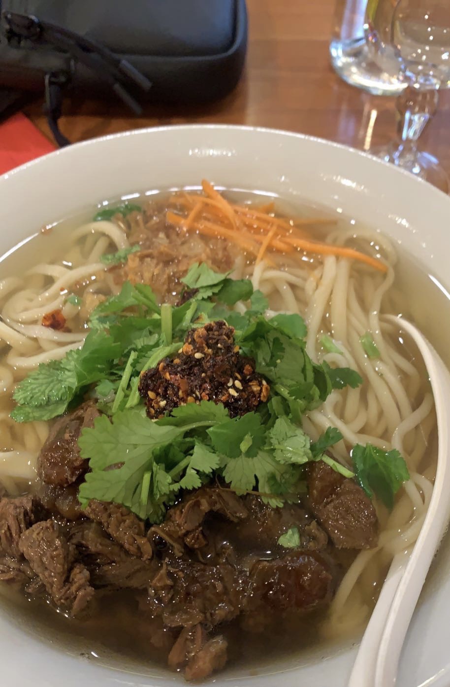Stylé la soupe de nouilles au bœuf pimenté, un vrai délice pour les papilles avec mes anciens colocs du bouillon. Nouilles faites maison je recommande 5 étoiles sur 5.