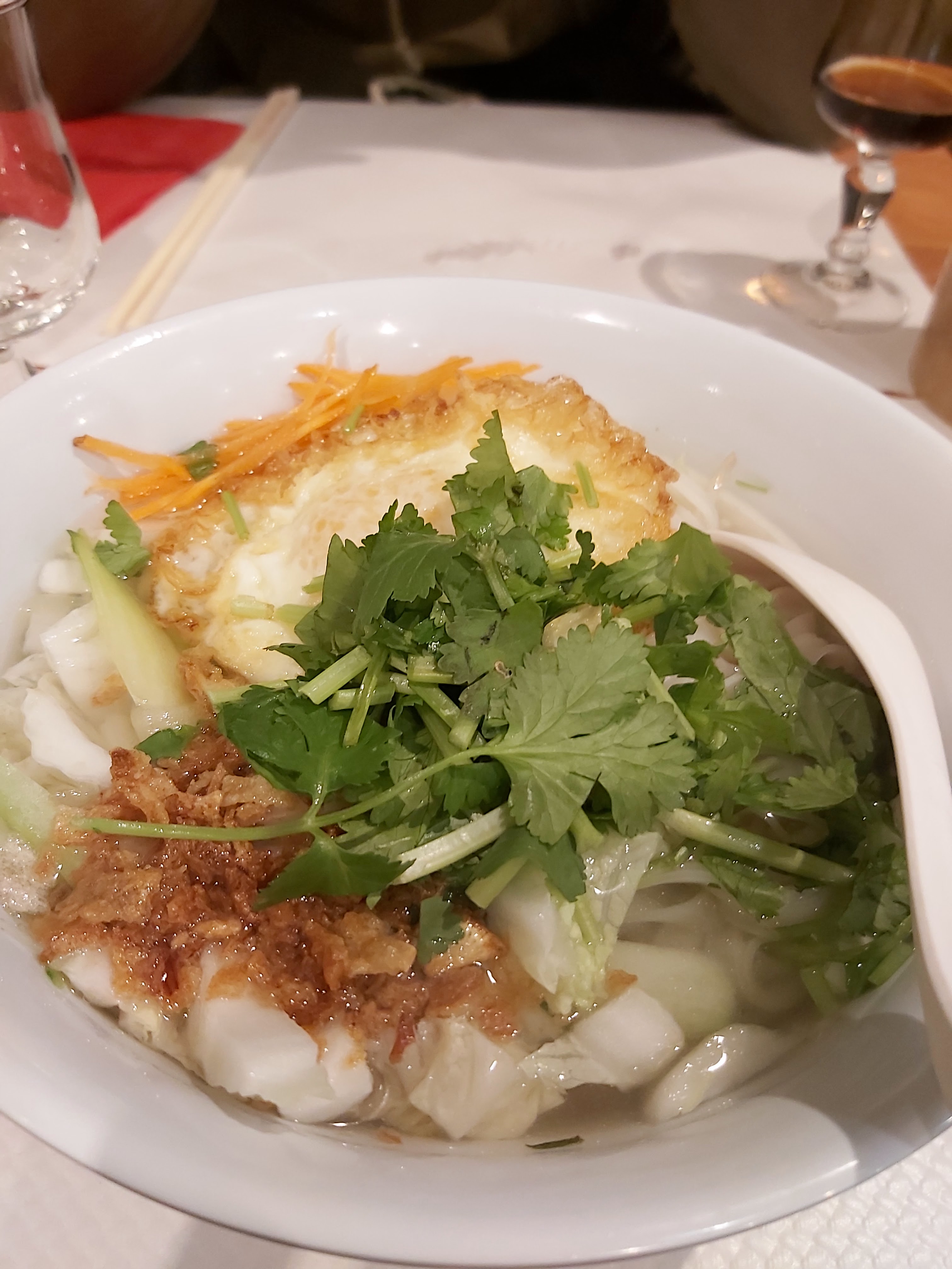Alors succulent.. Clairement le mari et sa femme extrêment agréable.. J ai pris soupe de nouille et rouleau de printemps.. La soupe je ne l ai pas finit ^^ très généreux et succulent j y retourne Dans la semaine c est le toooop