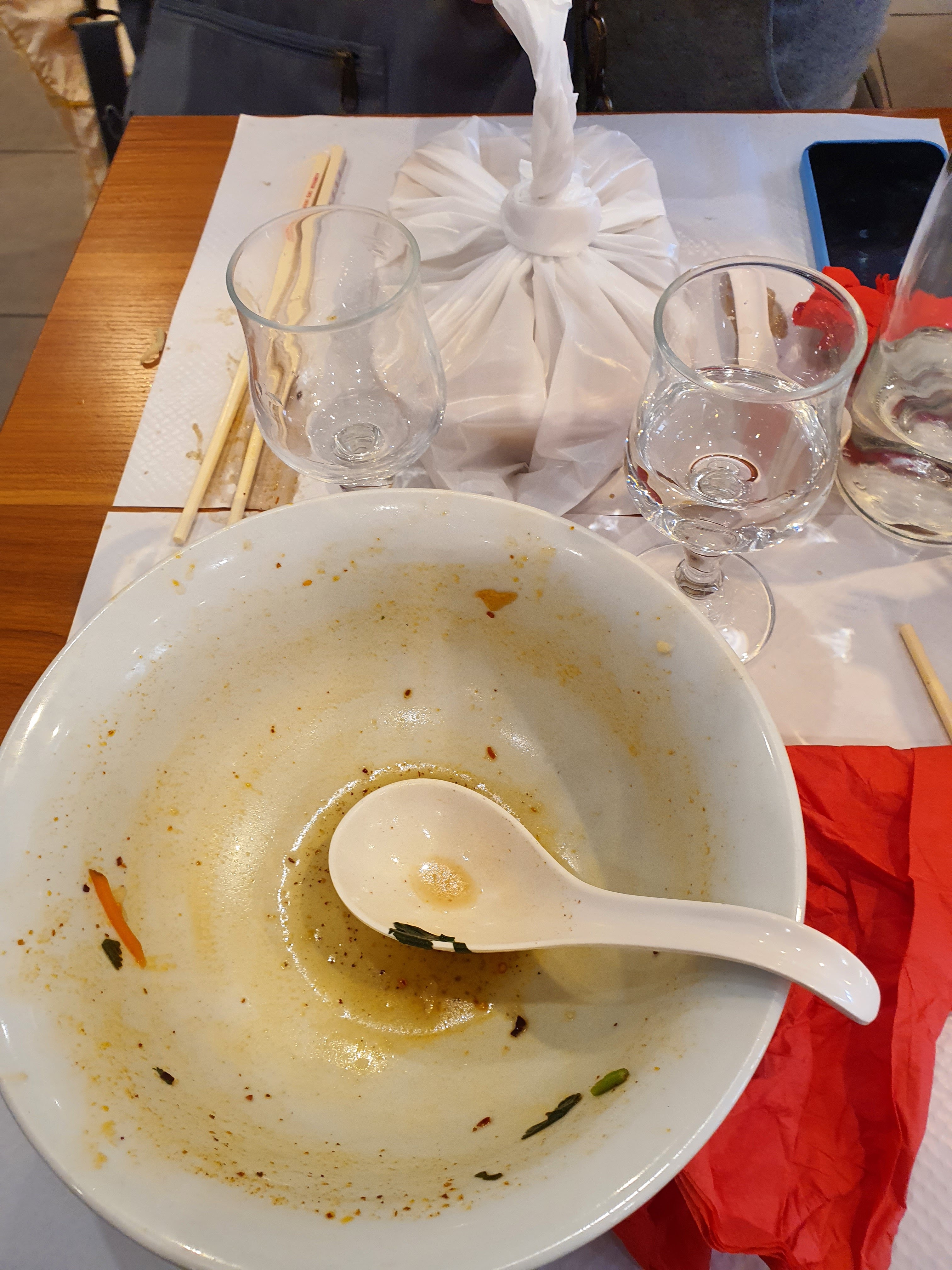 Nouilles faites maison, bouillon goûteux et pas gras. Hygiène impeccable
