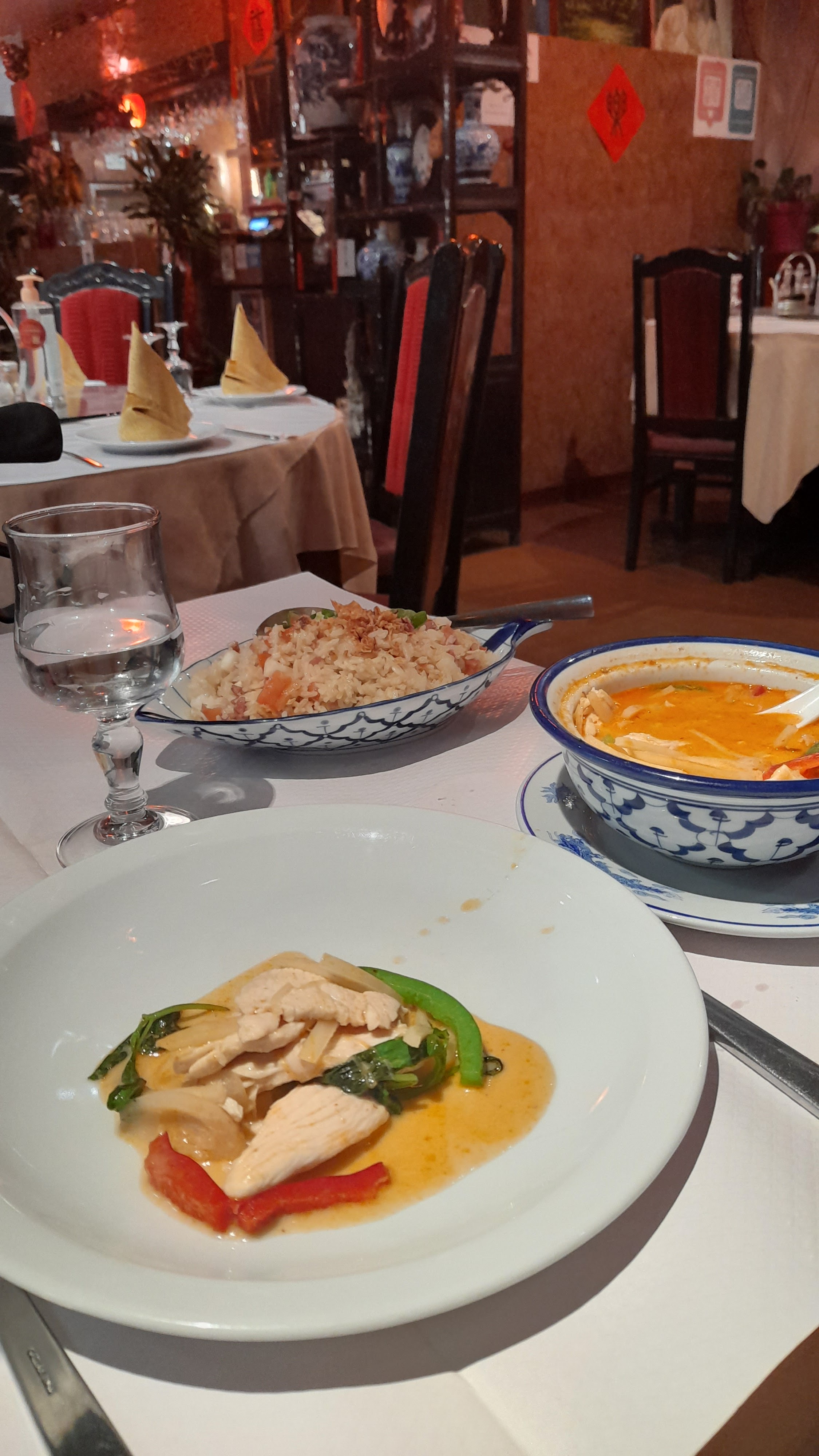 L'endroit est bien situé, facile d'accès, ce fut ma cantine pendant 20 ans. Le restaurant propose deux belles salles (il y en avait une à l'étage en plus mais je ne sais pas si c'est toujours d'actualité), on peut aussi bien avoir un petit coin tranquille pour amoureux qu'une grande table en famille. Avec les anciens propriétaires tout était parfait, là ça a un peu baissé, mais c'est quand même un endroit très agréable et la cuisine est bonne si on fait attention au choix des plats. Il faut compter 20 à 30 euros par personne. Les plus : Facile à trouver, belles salles, déco typique, personnel accueillant et poli, plats bien présentés, carte riche en plats Thaïlandais. L'agneau au gingembre ciboulette à la plancha est un délice et un régal pour les yeux. Les moins : Plats plus ou moins bien réalisés, le menu de base n'est pas cher mais pas extraordinaire, et il vaut mieux éviter les plats à touristes trop simples et chers (6 euros la portion de nems), le niveau d'alcool des cocktails a bien diminué c'est plus un jus de fruit à ce niveau.