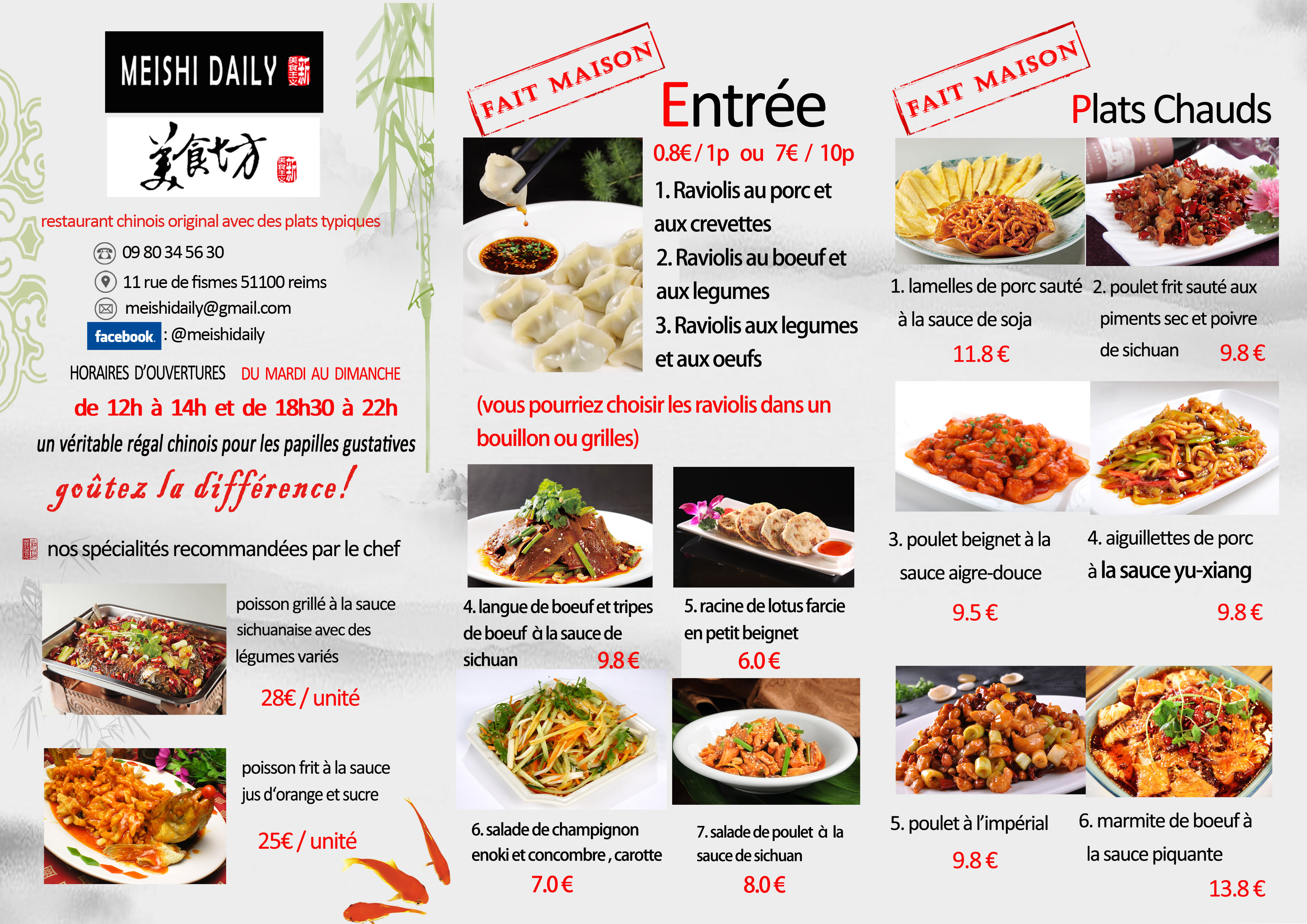 Depuis que je suis revenue de mon expatriation en Chine, impossible de retrouver le goût chinois dans les soit-disant restaurants asiatiques qu'on trouve à Reims. Et enfin, au Meishi Daily, je retrouve une cuisiine chinoise authentique, fine, raffinée et qui ne sent pas le glutamate et autres saloperies des buffets chinois. Merci pour ce repas délicieux.