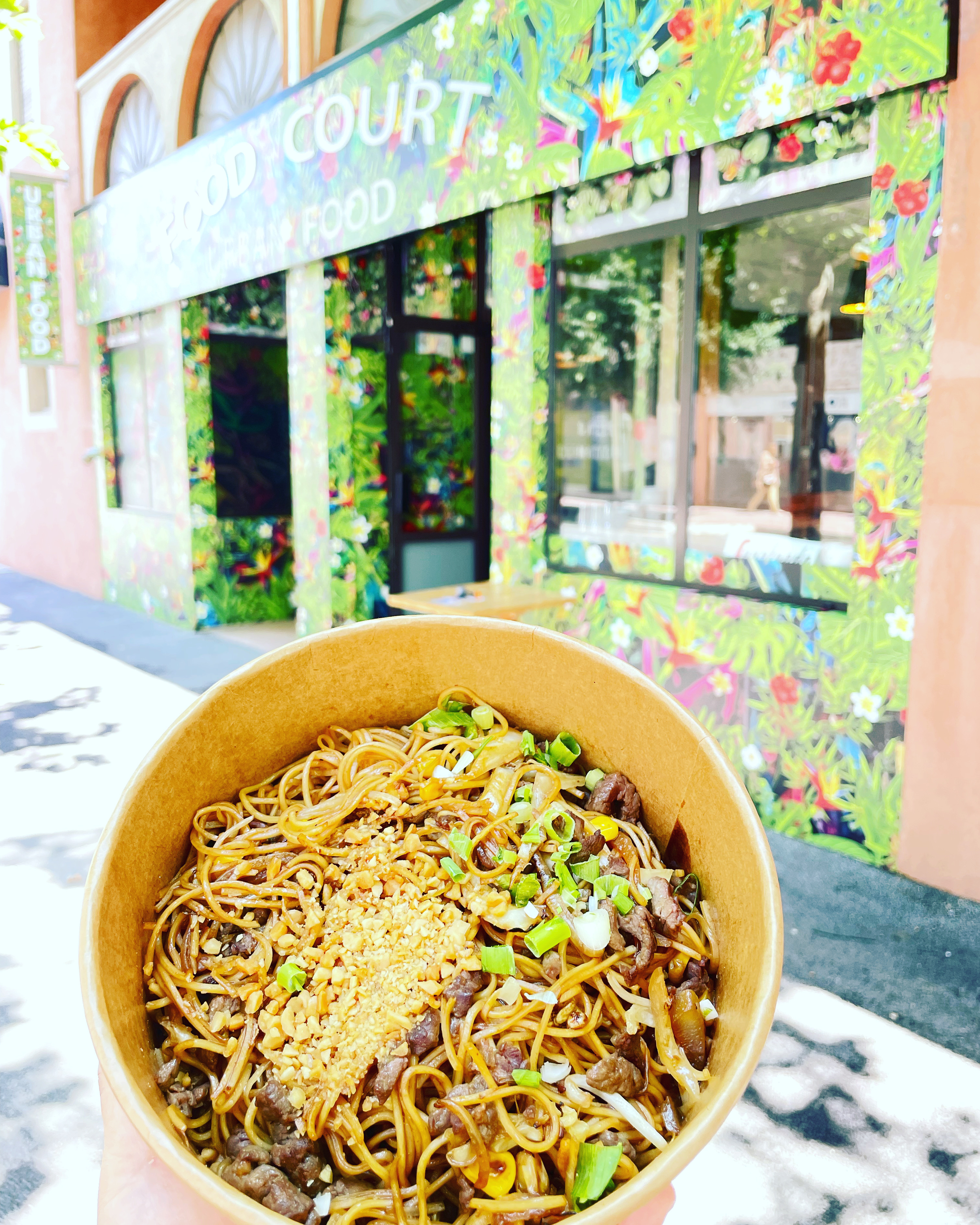 D’abord ce n’est pas un restaurant ; mais une vitrine cuisine où vous précommandez vos plats sur une borne et dès que le bip sonne vous allez chercher vos assiettes. Cette cuisine chinoise est conjointe avec d’autres espaces qui cuisinent sur le même principe. Les tables sont communes.