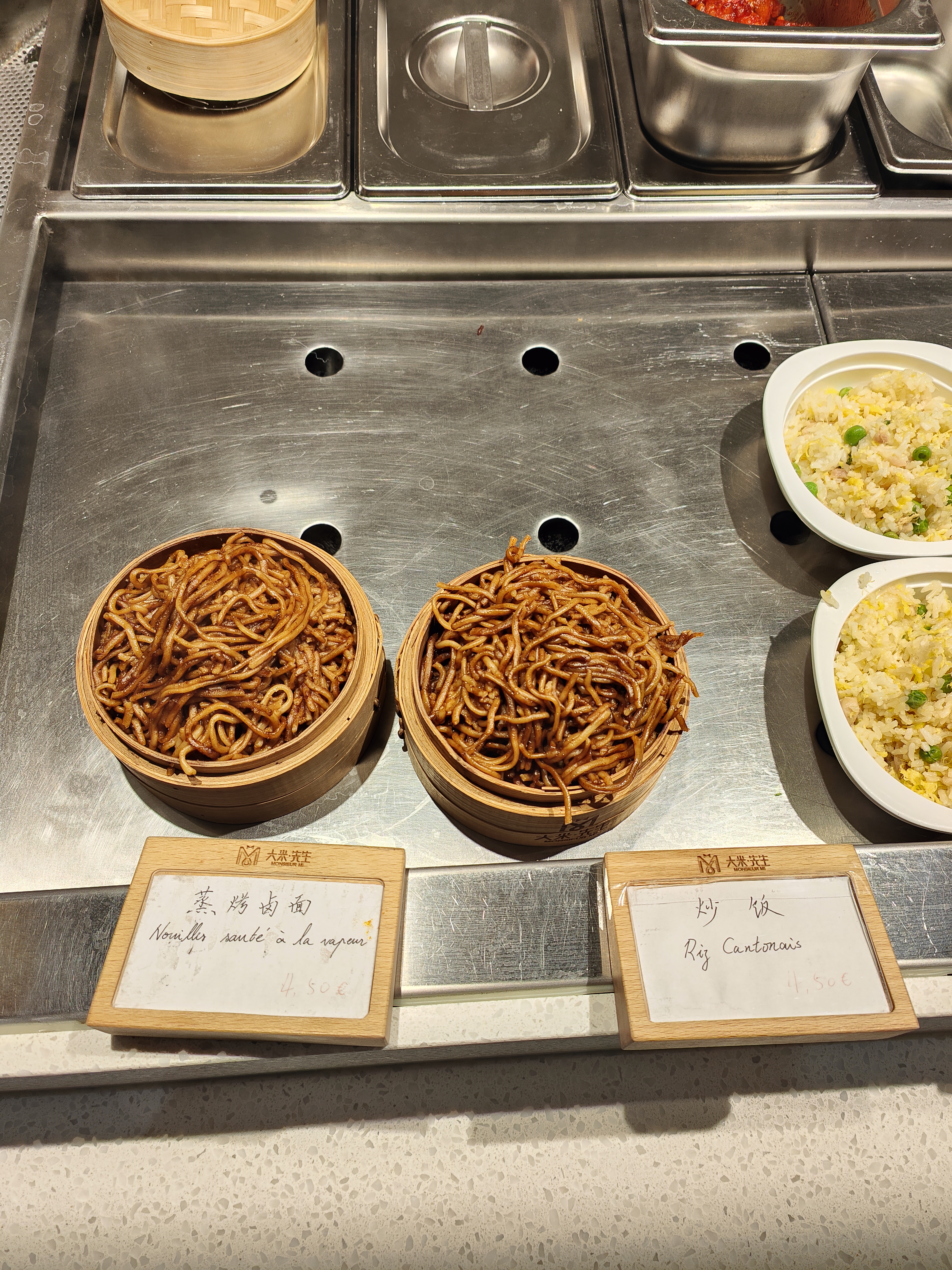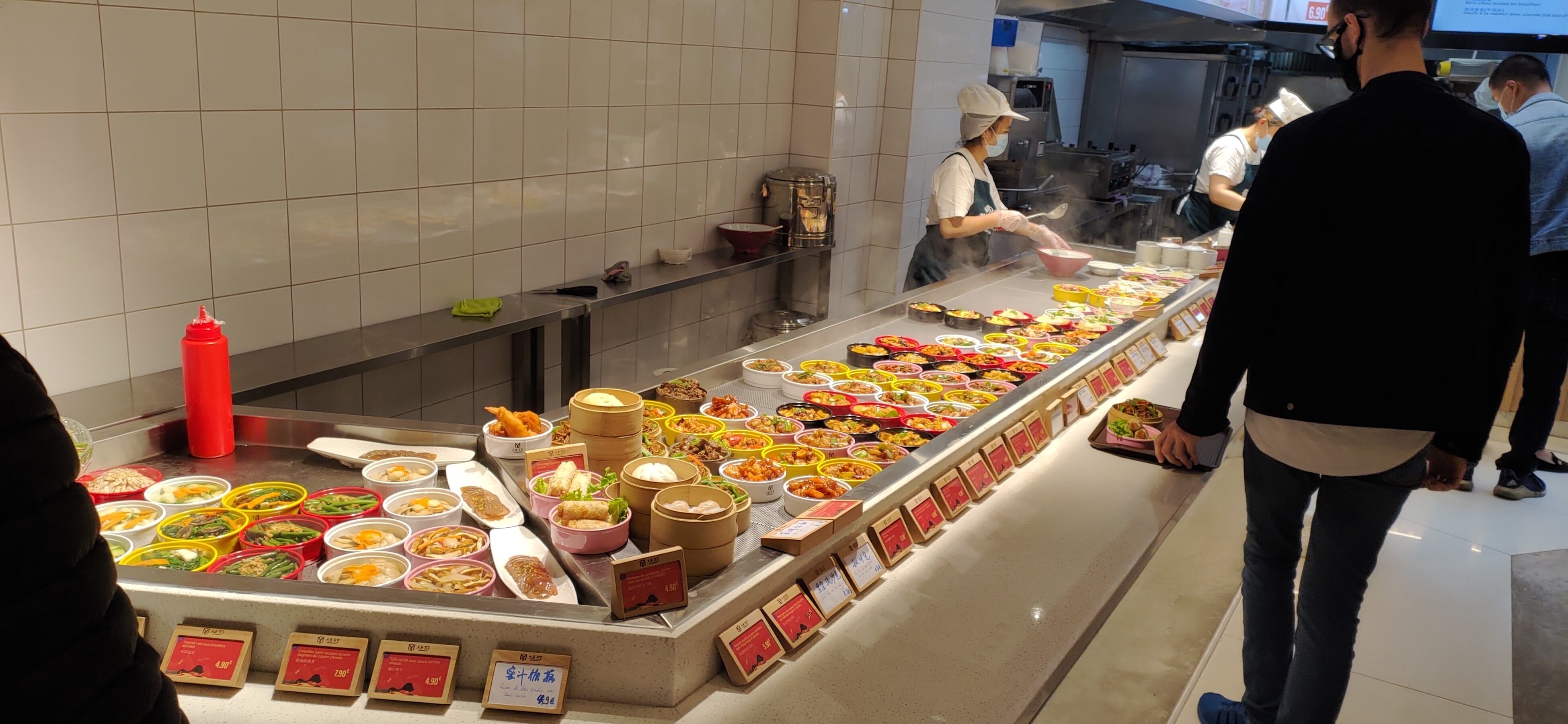 Self chinois. Système malin, car chaque plat n'est pas très cher, mais les prix ne sont pas indiqués pour tous les plats, et cela revient vite cher. Pas mal de choix, mais concernant la qualité, c'est moyen, niveau traiteur chinois de quartier.