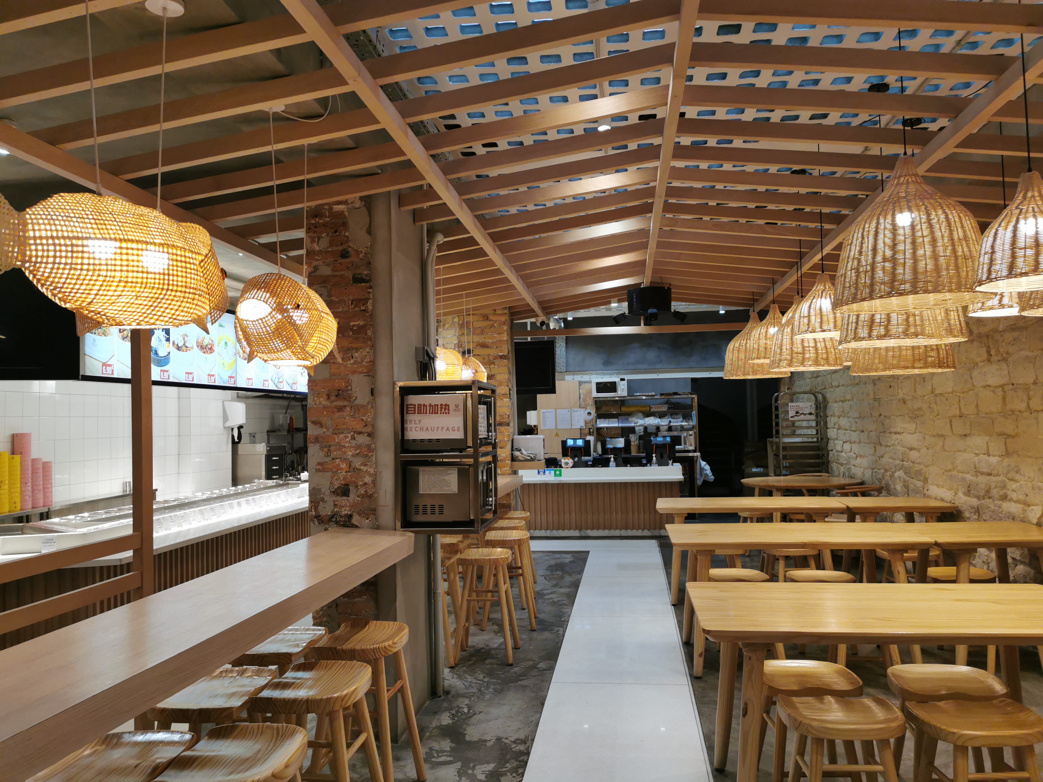 Façon cafétéria (ou style ikea), on peut commander à la carte ou en menu pour un bon prix. A également une barre boba à l’avant. Personnel très sympathique !