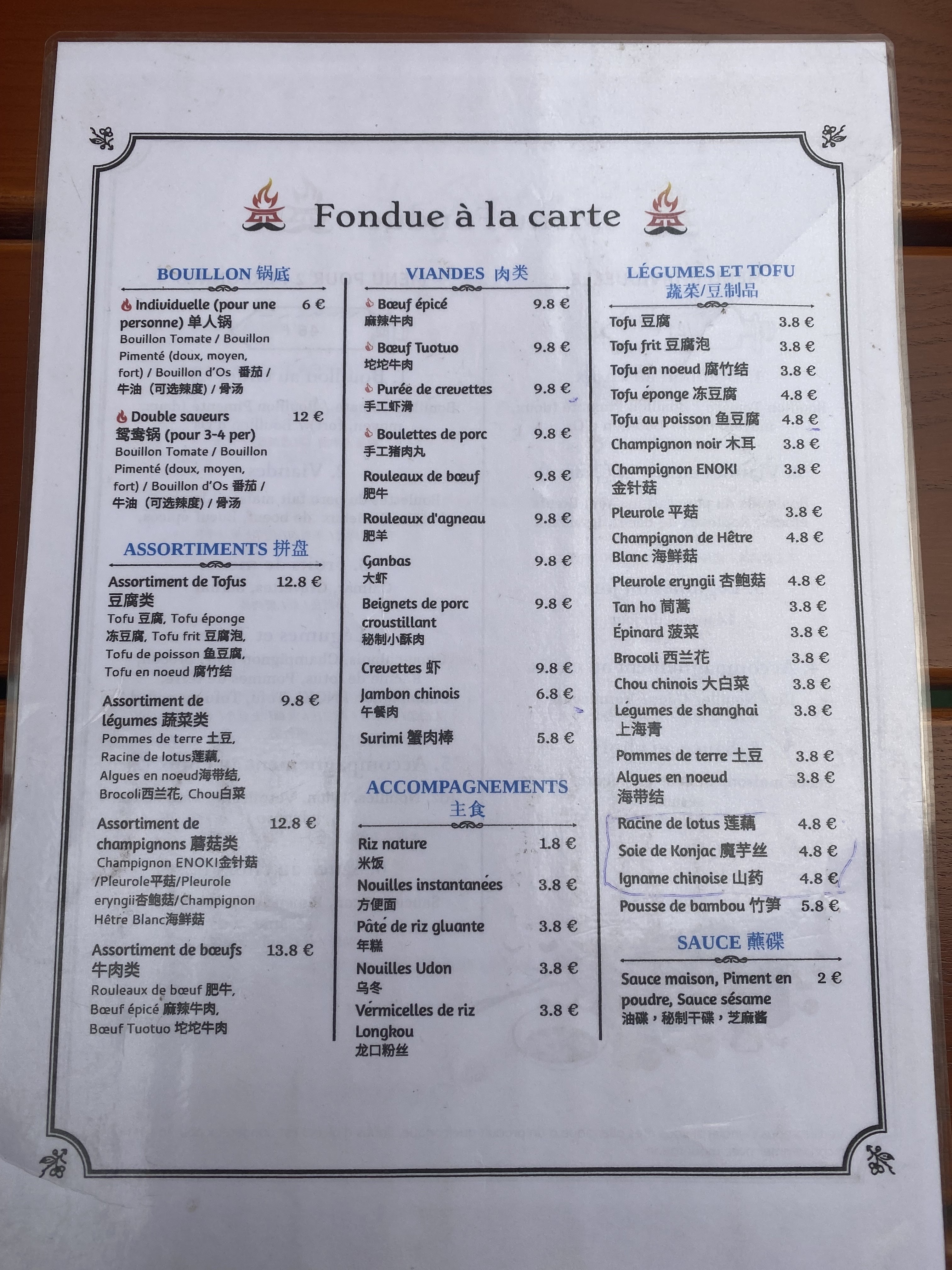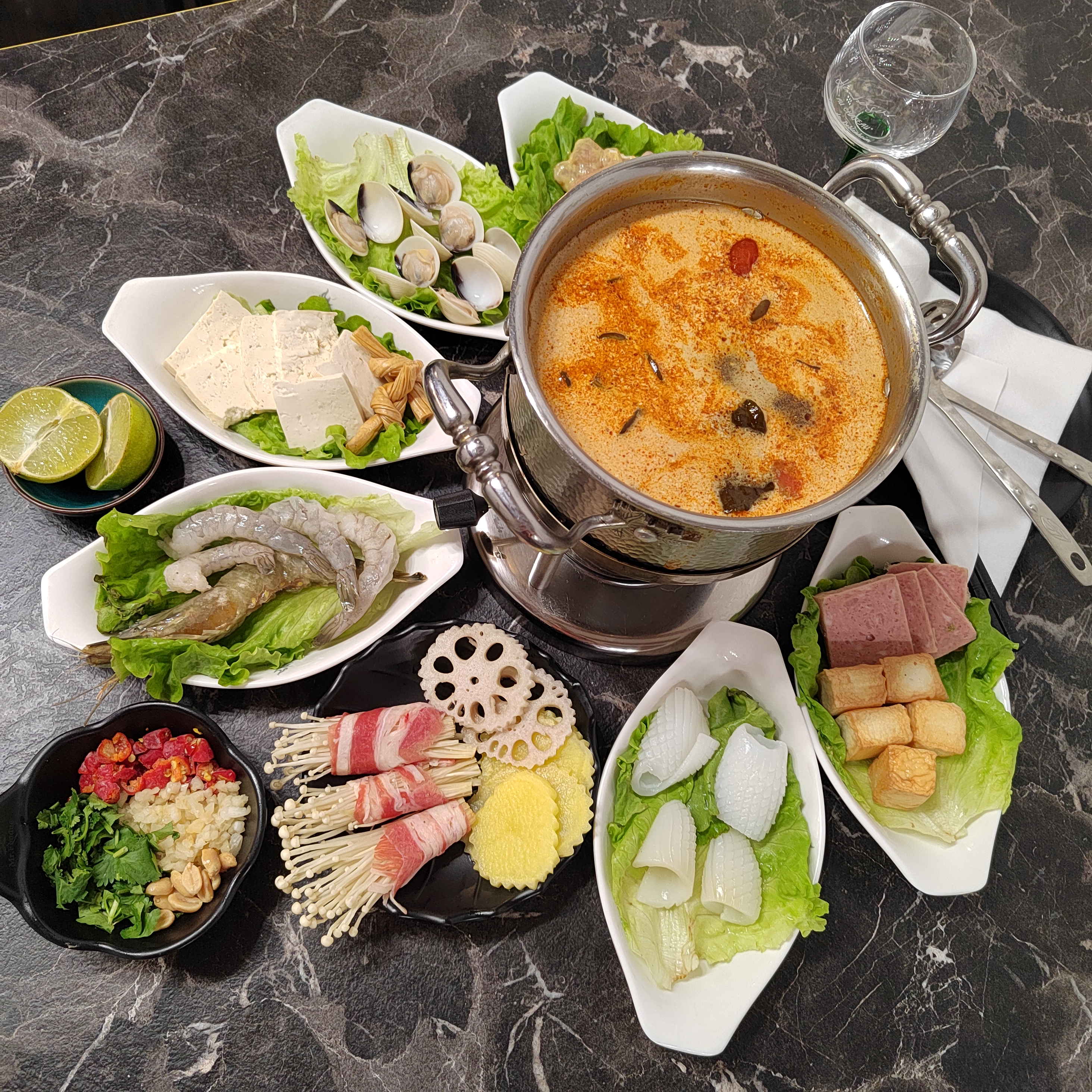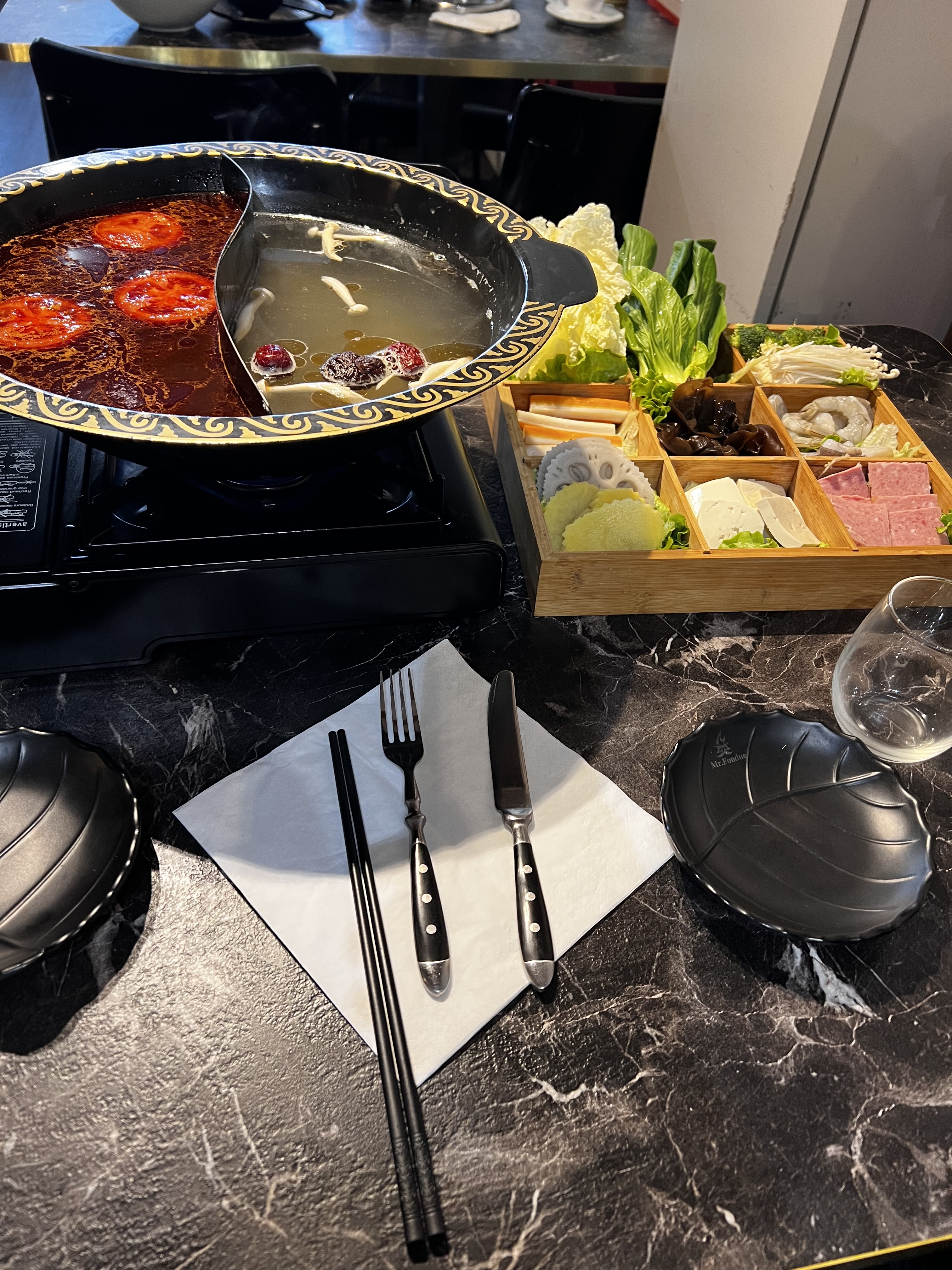 Première fois que je mange une fondue chinoise et j’ai adorée 😍 Beaucoup de choix pour accompagner le bouillon , les légumes sont frais . Accueil et service impeccable , je vous recommande vivement cette expérience.