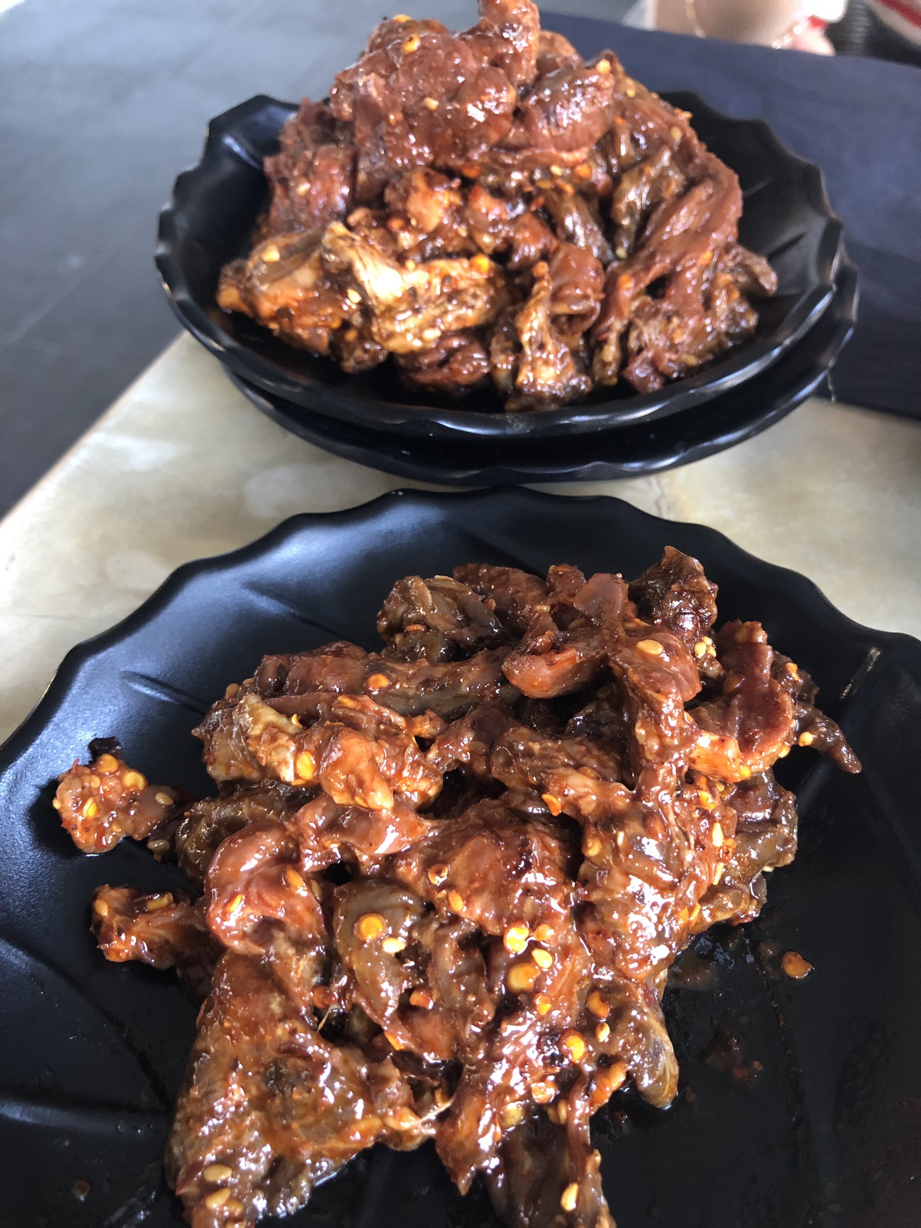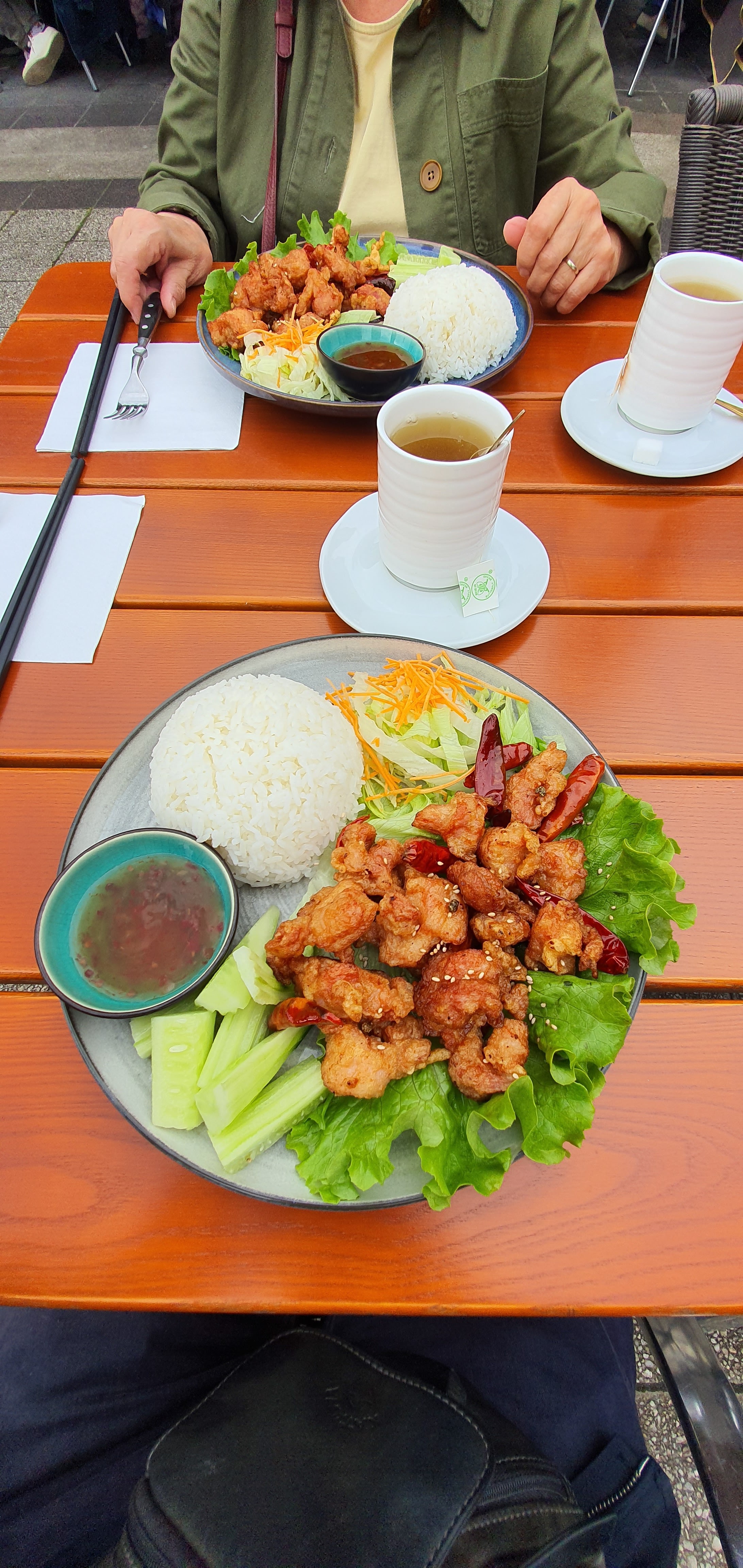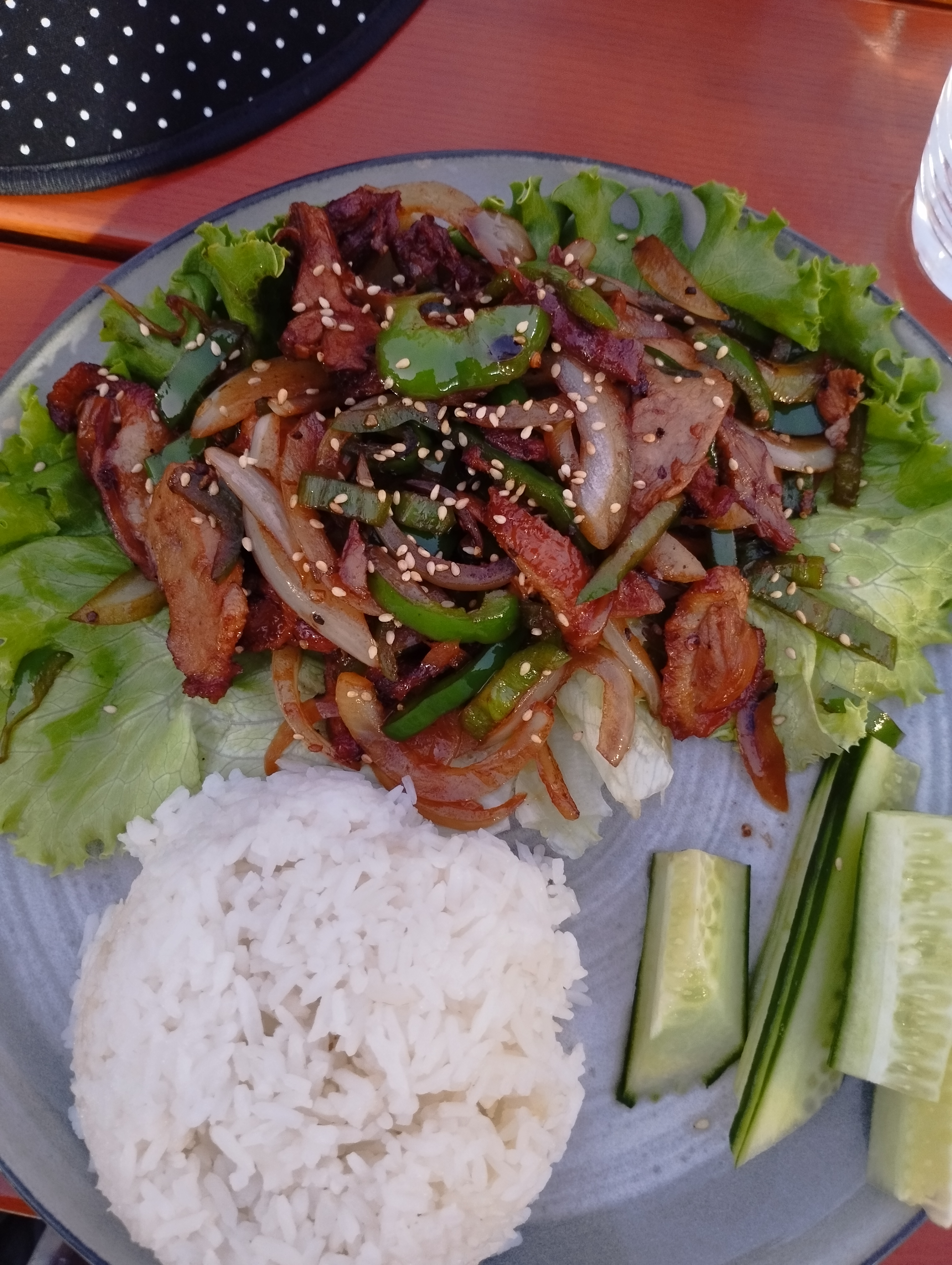 On a commandé le canard sauté avec riz. La viande était préparée avec sa peau, difficile à enlever la peau et très mauvais dans la bouche. La sauce était très bonne ! C'était vraiment piquante mais pas de sorte qu'on puisse pas finir. Les serveuses sympas,