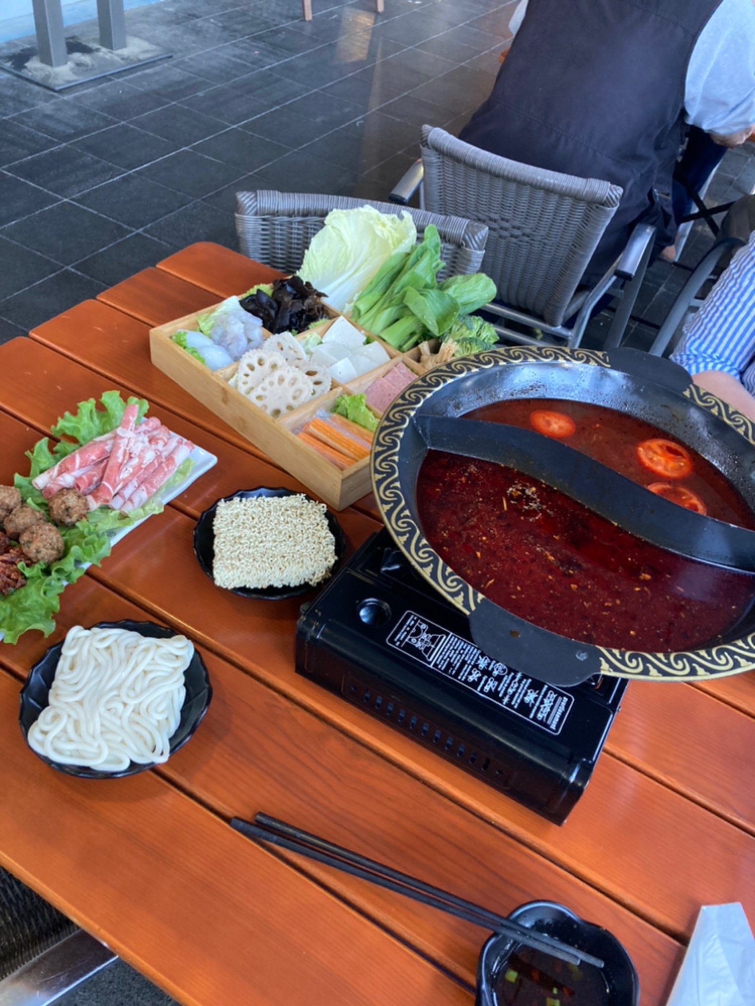 Resto sympa quand une envie de hotpot vous prend. Ils proposent même des hotpots individuels. Je suggérerai un coin sauce où on pourrait se servir librement avec sésame, ail, coriandre, vinaigre, sauce soja etc. (Comme on trouve dans les hotpots buffet généralement) Terrasse au calme.