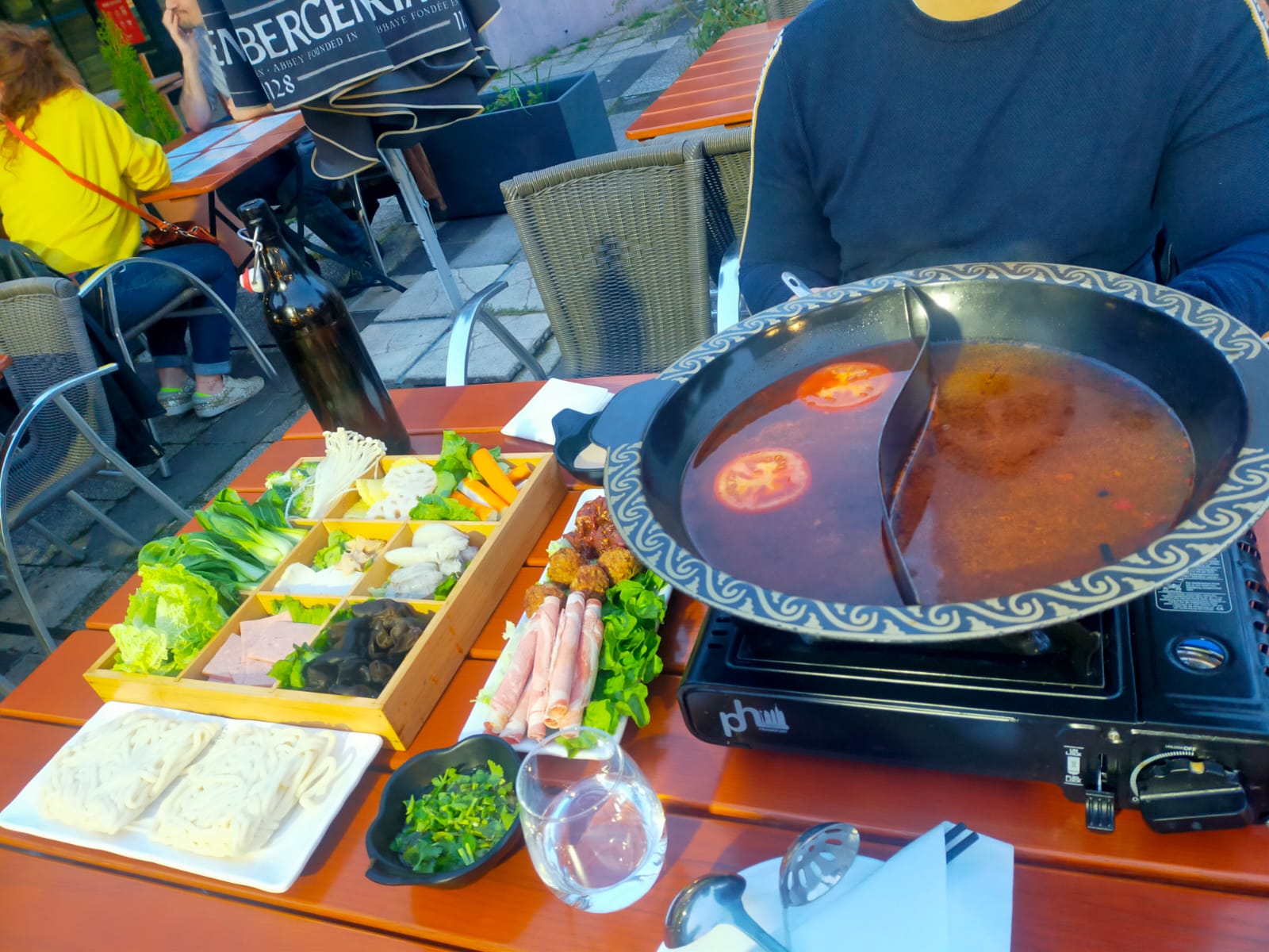 Délicieuse fondue chinoise traditionnelle sur une petite terrasse à l’intérieur du centre commercial d’Esplanade. Menu pour deux (46€) très copieux qui comprend viande, fruits de mer, légumes, nouilles, sauce maison etc. Rapport qualité quantité prix parfait ! Par ailleurs, la boisson à la prune est excellente et peu chère. Le personnel est très sympa et aux petits soins avec leurs clients. Je recommande vivement ! Nous reviendrons.