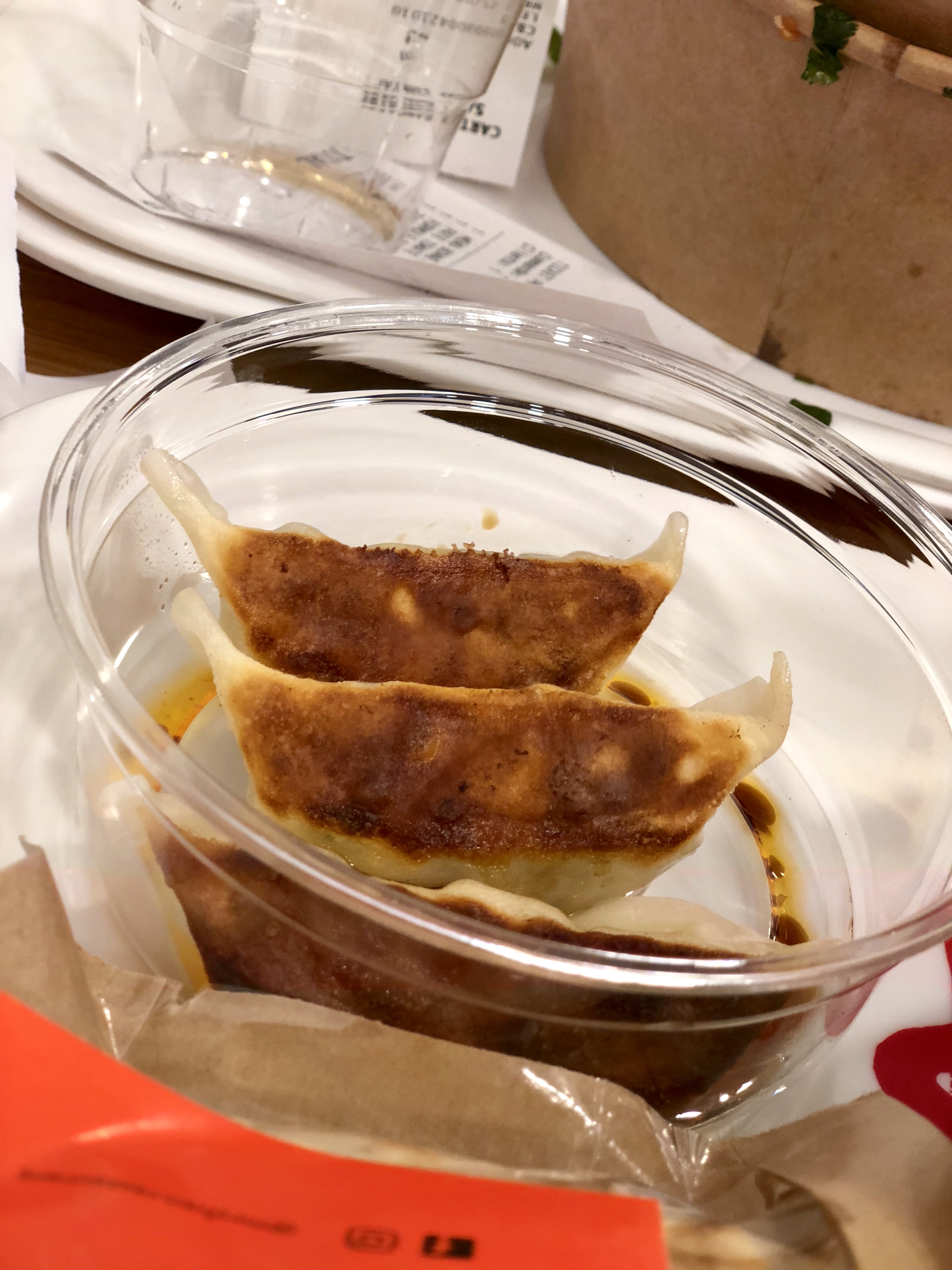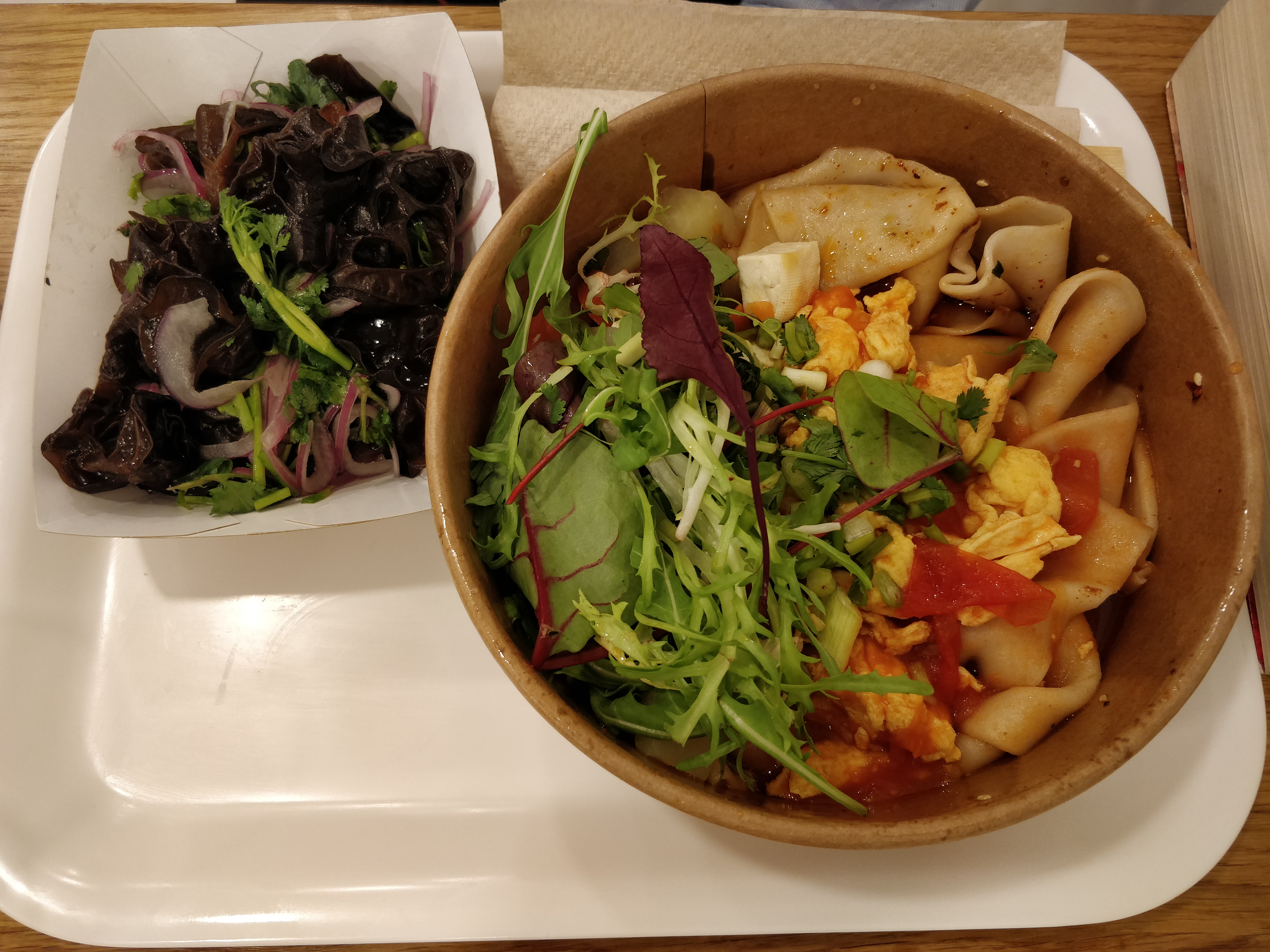 Commande à emporter. Franchement délicieux ! Les meilleurs raviolis que j’ai eu l’occasion de goûter. J’ai apprécié l’originalité des nouilles aux épinards, ils étaient délicieux (avec des œufs brouillés, tomate et choux chinois)