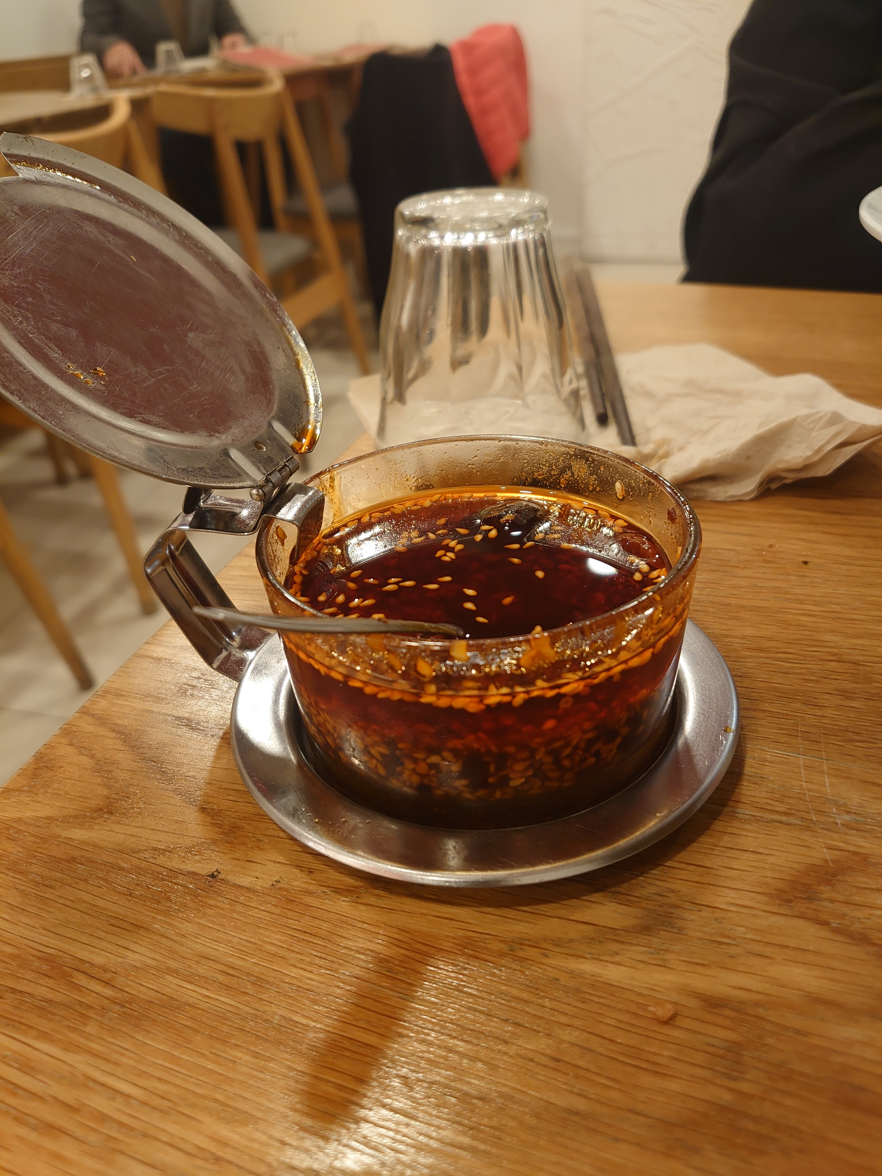 Nouilles maison super bonnes. Tout est de bonne qualité, et l'huile de piment maison est délicieuse. On peut en acheter en pot, tellement bien emballée qu'on dirait un bijou 😀