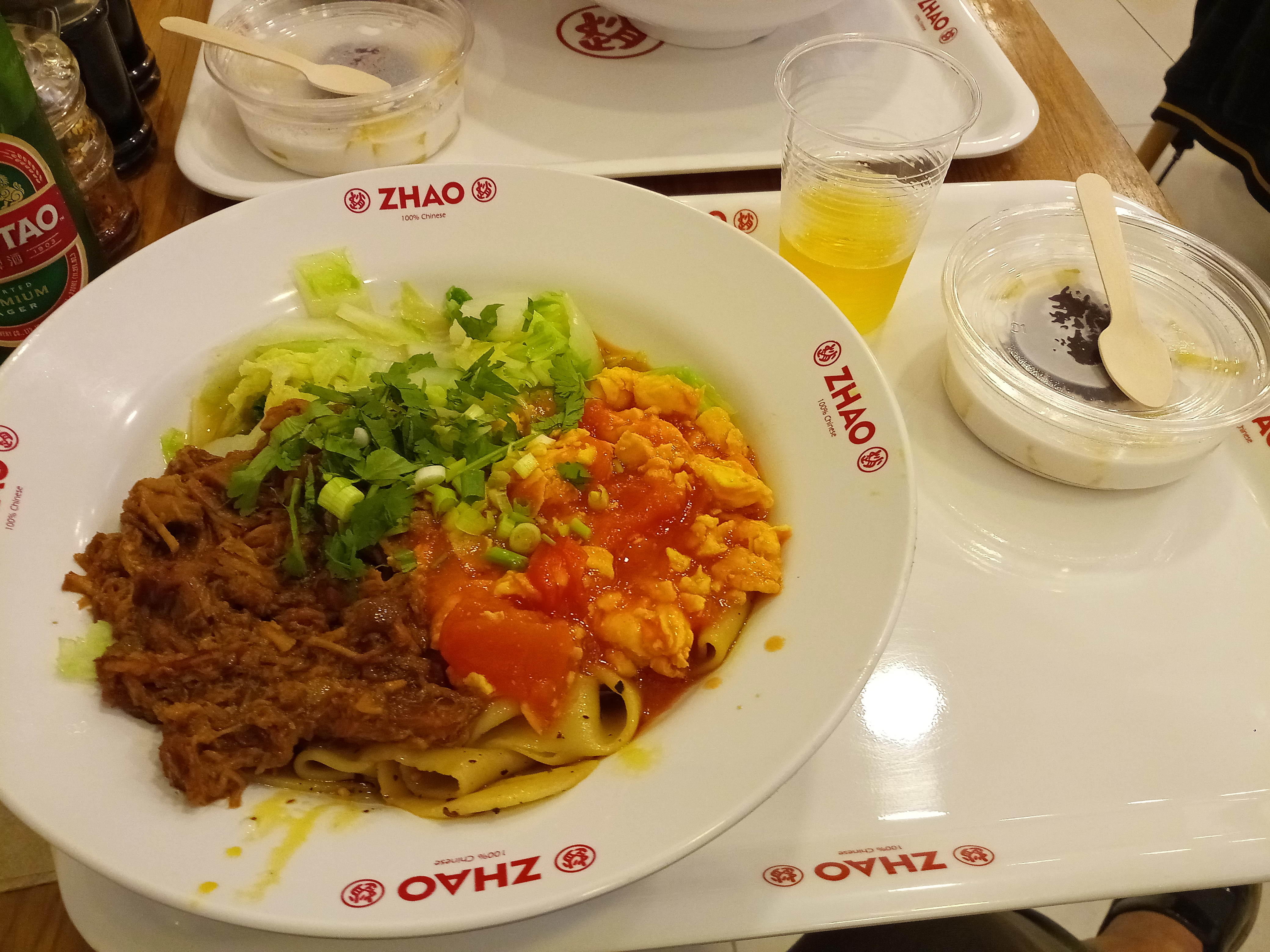 J'ai goûté les nouilles biang biang au bœuf et à la tomate : c'était excellent !!! La viande était tendre, la sauce et les nouilles étaient délicieuses... si je n'habitais pas à Marseille, je reviendrais chaque semaine chez Mr Zhao pour manger !!! C'était parfait. 😍