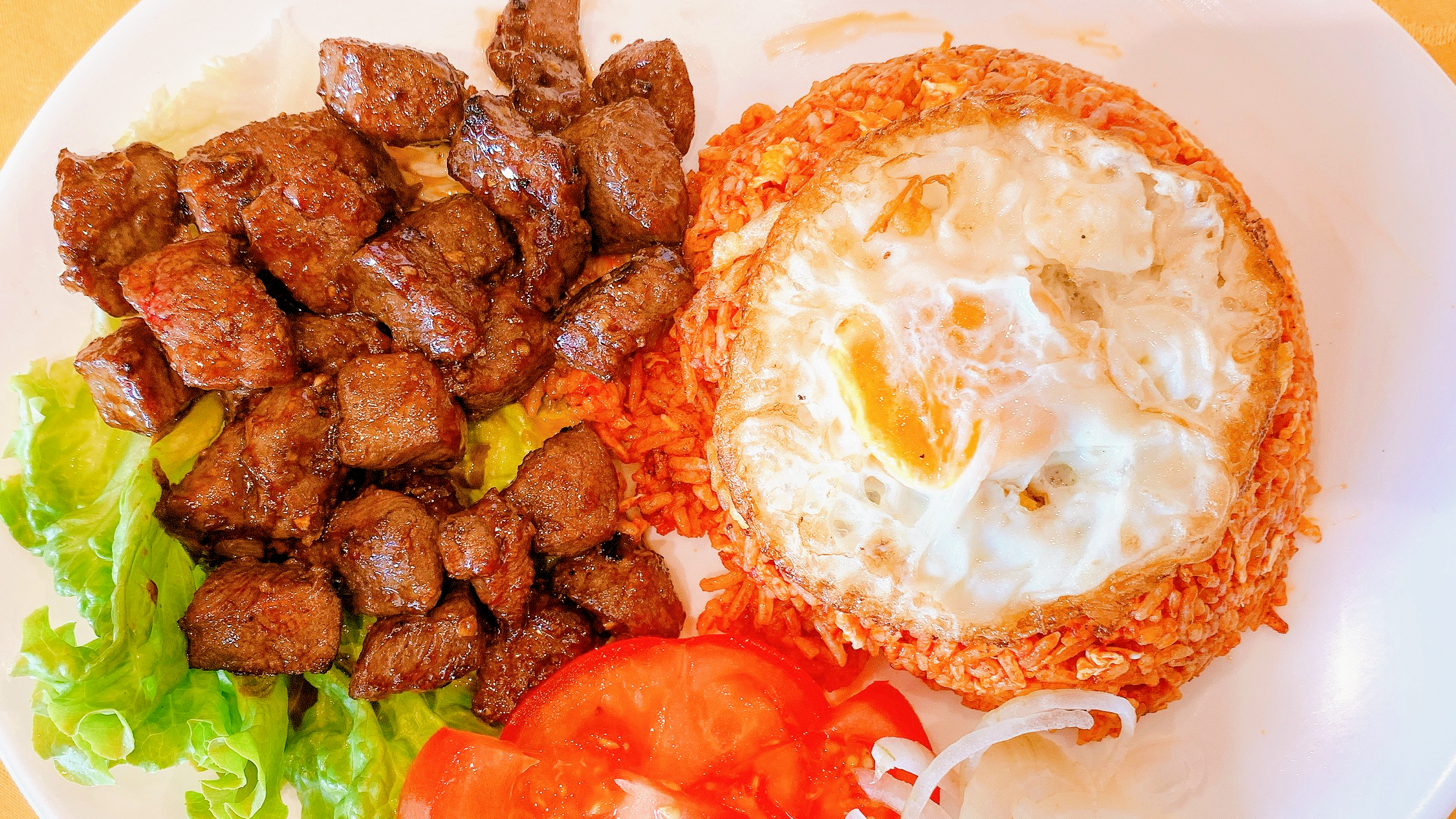 Waoooo!!! C'était tellement bon😋 Nous avons choisi un bœuf loc lac; Bœuf mariné sauté, servi avec du riz à la tomate et un œuf au plat. La viande était moelleuse, extrêmement tendre. Puis en dessert la découverte!! soupe de mangue, glace mangue, boules de riz gluant (D32 sur le menu) Je recommande pour les plats, Cependant ne vous attendez pas à un restaurant avec une décoration prononcée, celle-ci est inexistante mais je passe sur ce point tellement nous avons bien mangé . (Restaurant recommandé par un ami;))