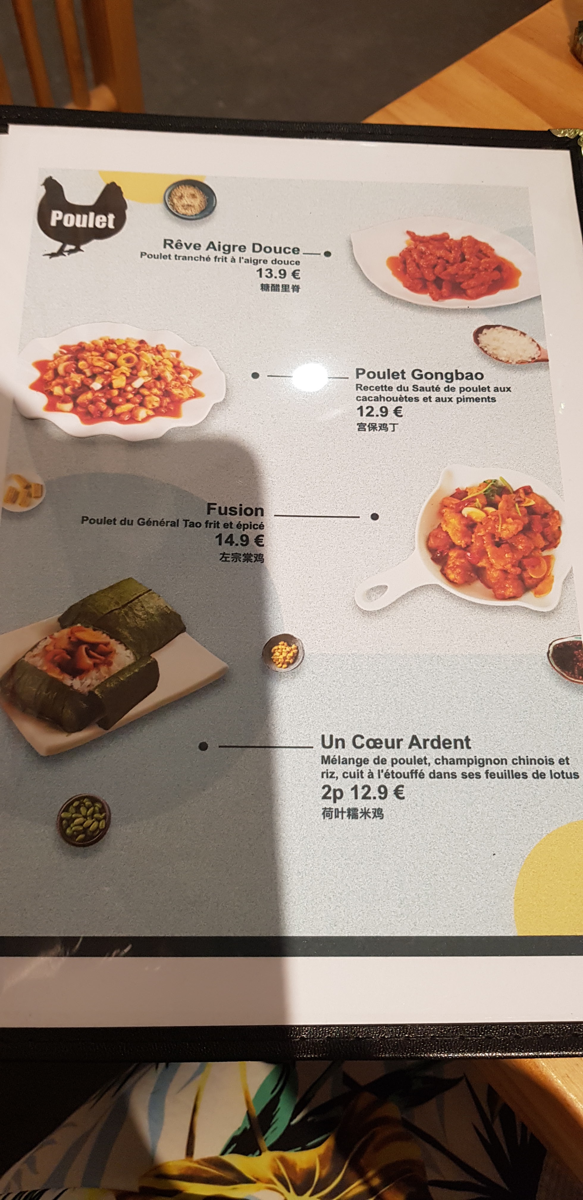 A vrai dire c est vraiment pas bon , avec des amis chinois(e)s on y est aller manger et au lieu de nous faire voyager on a pas décoller, ( avis de français et de chinois(e)s Ah aussi la patronne est pas poli et sa sent la personne fourbe comme dans les restos français dommage car le cadre est sympa ,heureusement d autres restaurant chinois se démarque !!!!!