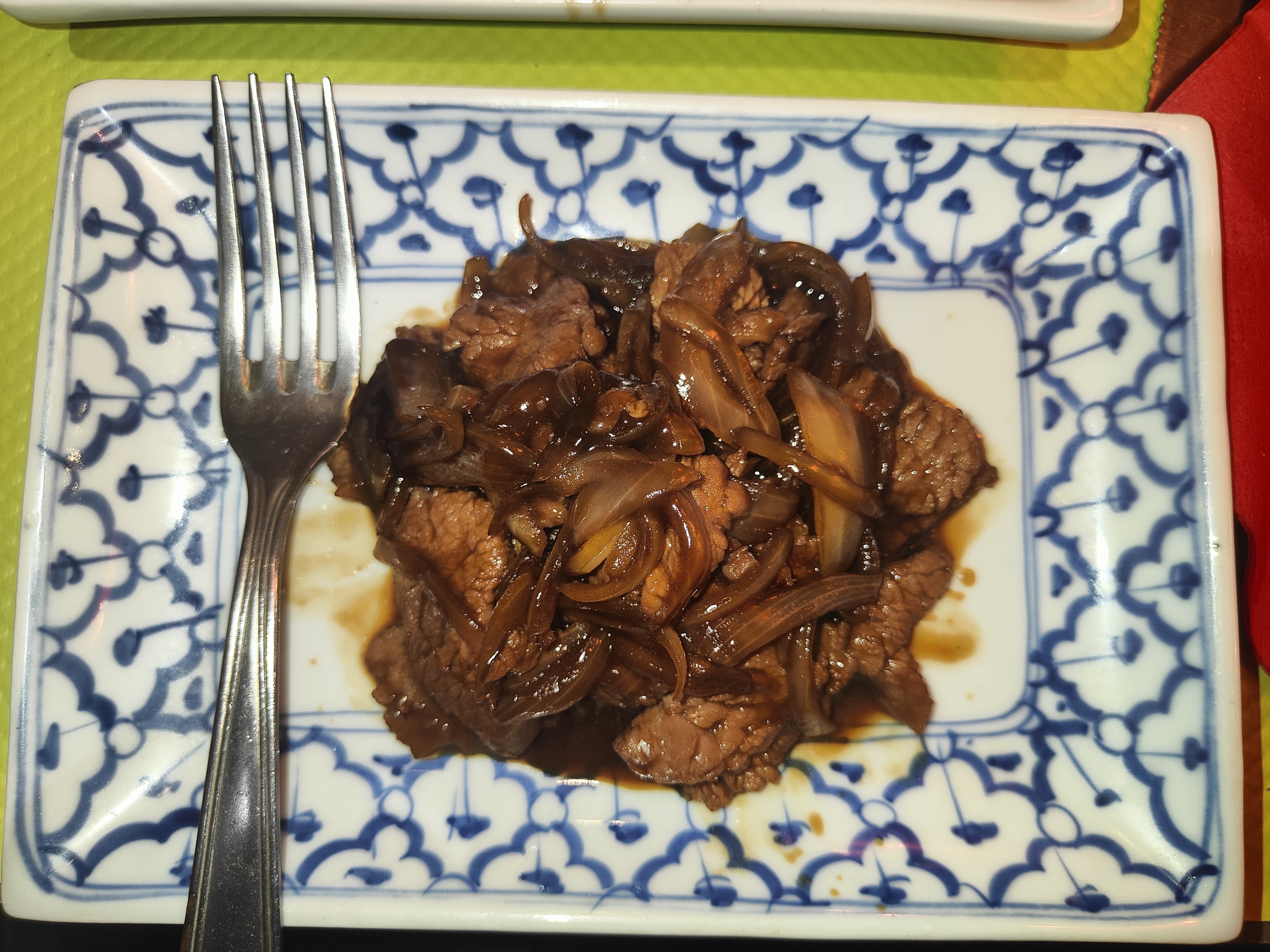 Goût moyen, en très très très petite quantité ... Venus avec de l'appétit, nous sommes restés sur notre faim, je m'explique : A chaque plat servi, on a entendu le ding du micro onde 😃 Nouilles crevettes et poulet, avec beurre et huile de soja + 2 crevettes et quelques grammes de poulet. Le boeuf aux oignons, j'ai placé ma fourchette pour vous donner l'idée de la taille de la portion. Les nems sont très très peu farcis. Je vous laisse mes photos pour juger de mes commentaires. Personnellement au vue du goût de vos plats et le rapport qualité prix, je préfère retourner manger dans un buffet ....