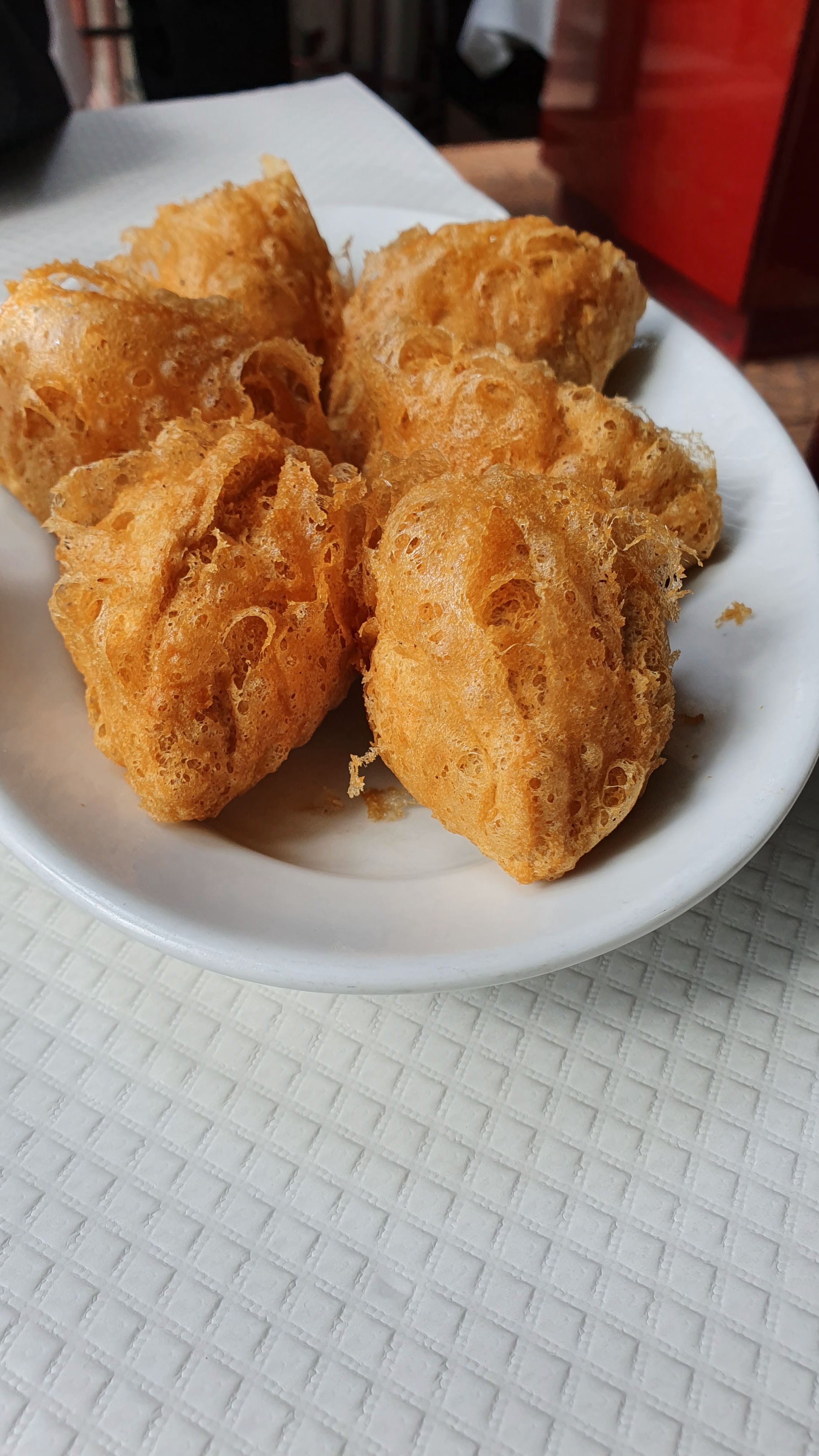 Cheung fun très épais avec très peu de crevettes. Les rouleaux de printemps avec 2 demi crevettes, bofbof bofbof. Les dimsuns sont surgelés. Les pattes de poulets sont mangeables, mais pas exceptionnels non plus. Très chers pour ce que c'est. 15 euros pour 4 crevettes cuites Total: 60 euros pour 4 personnes. Le truc bien : toilette large et propre.