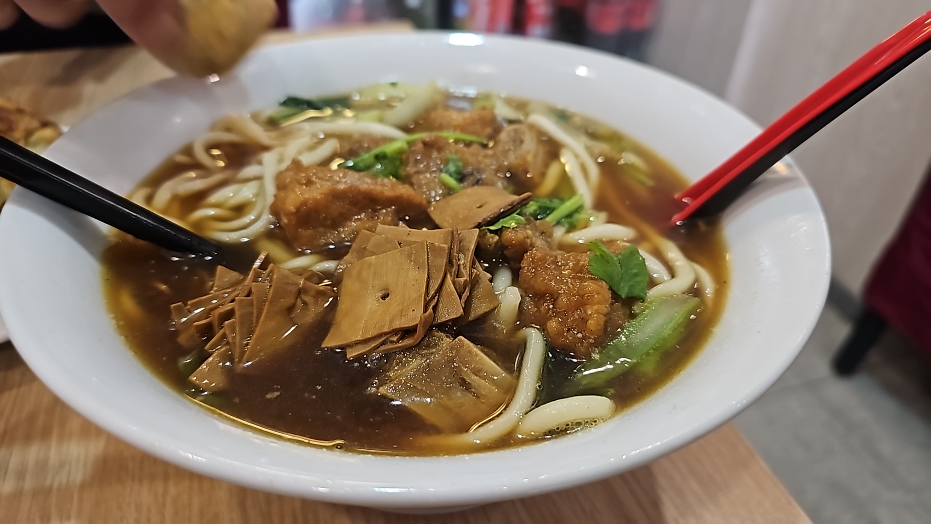 Bon marché et authentique, les nouilles de riz sont bonnes, et les petits pains avec des bâtonnets de pâte frits et du lait de soja sont très bons, fortement recommandés