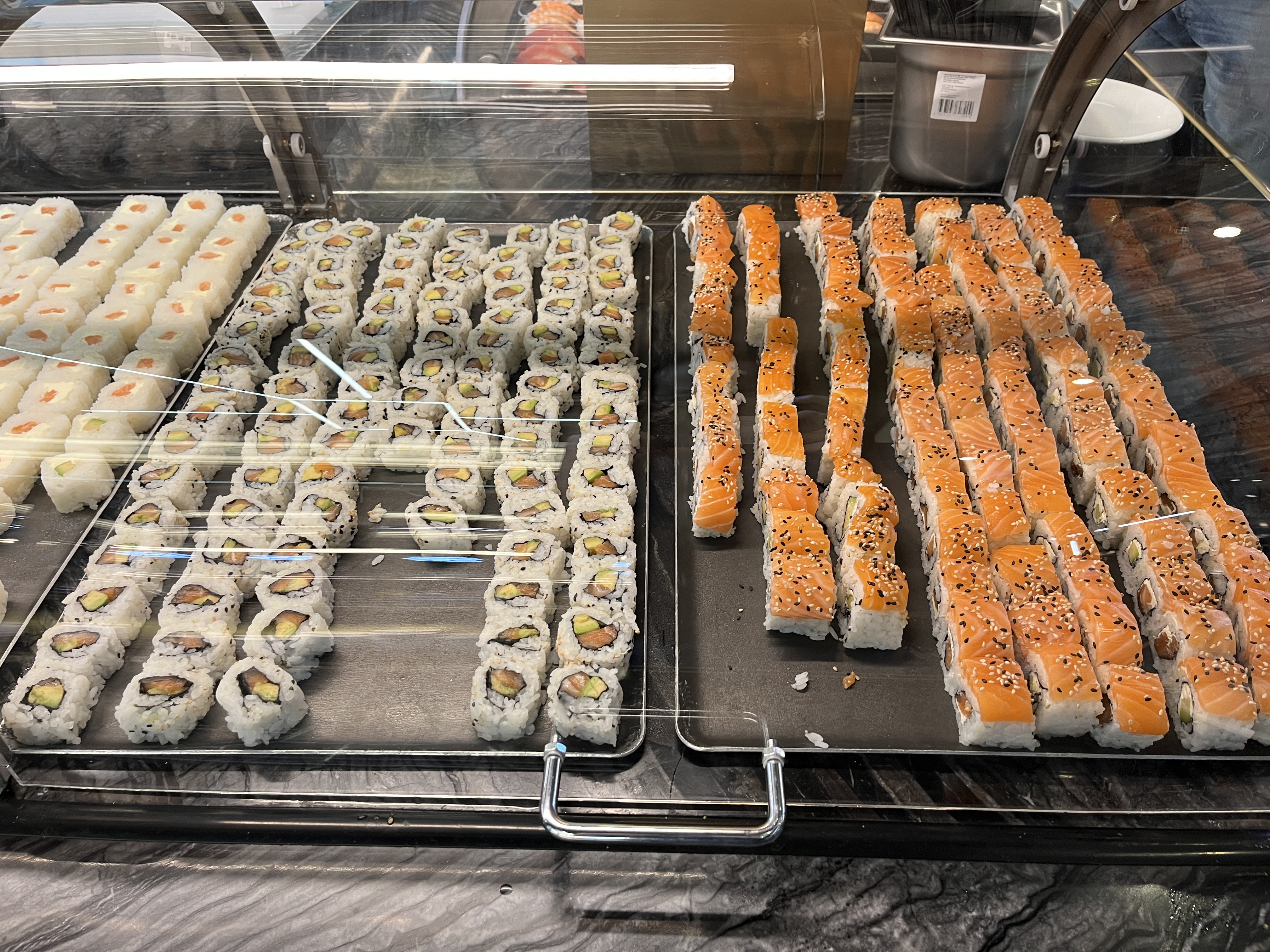 Enormément de choix de sushi, grands buffets variés, grand choix de fruits et desserts. Grandes surfaces bien emménagées.