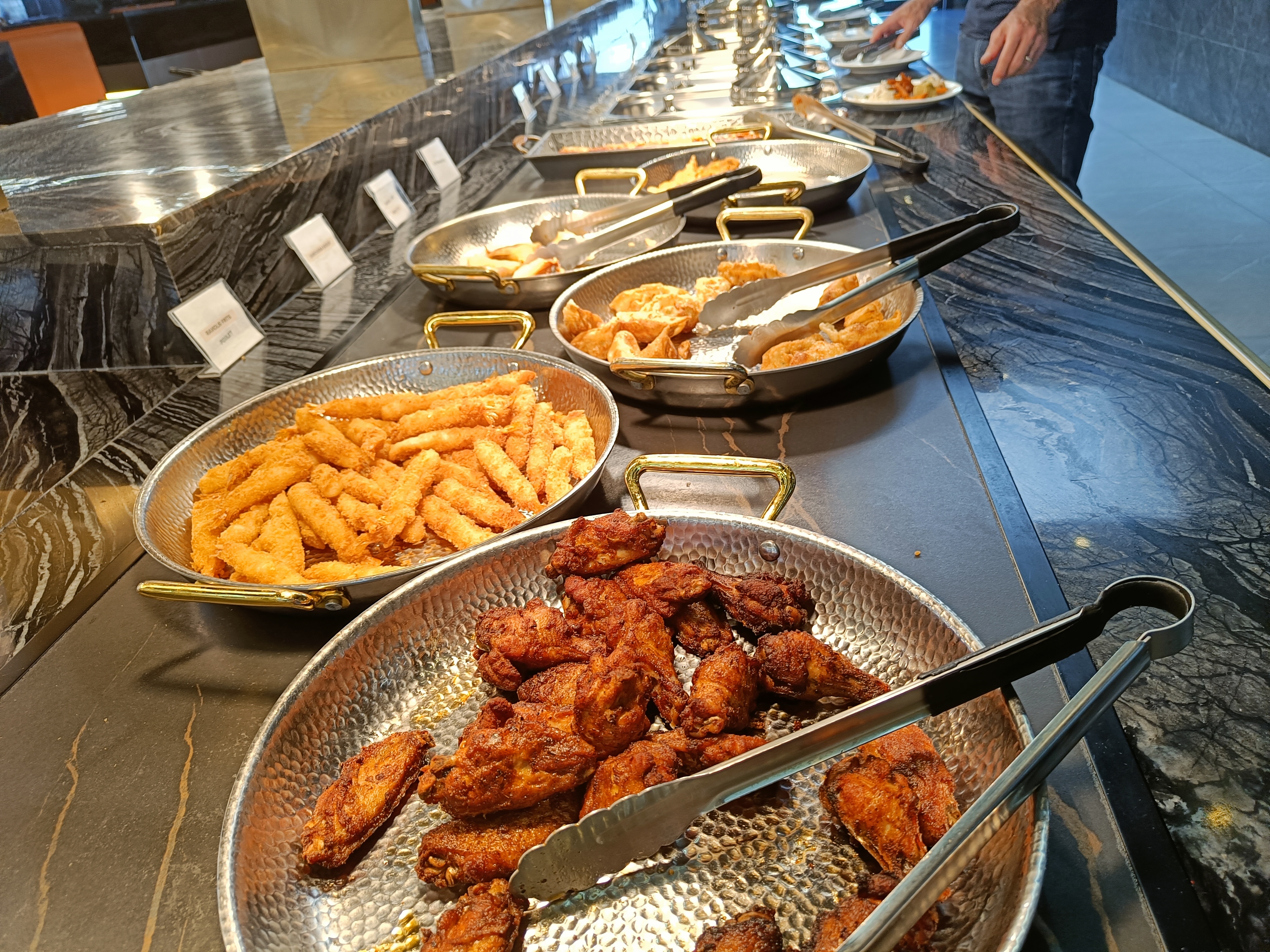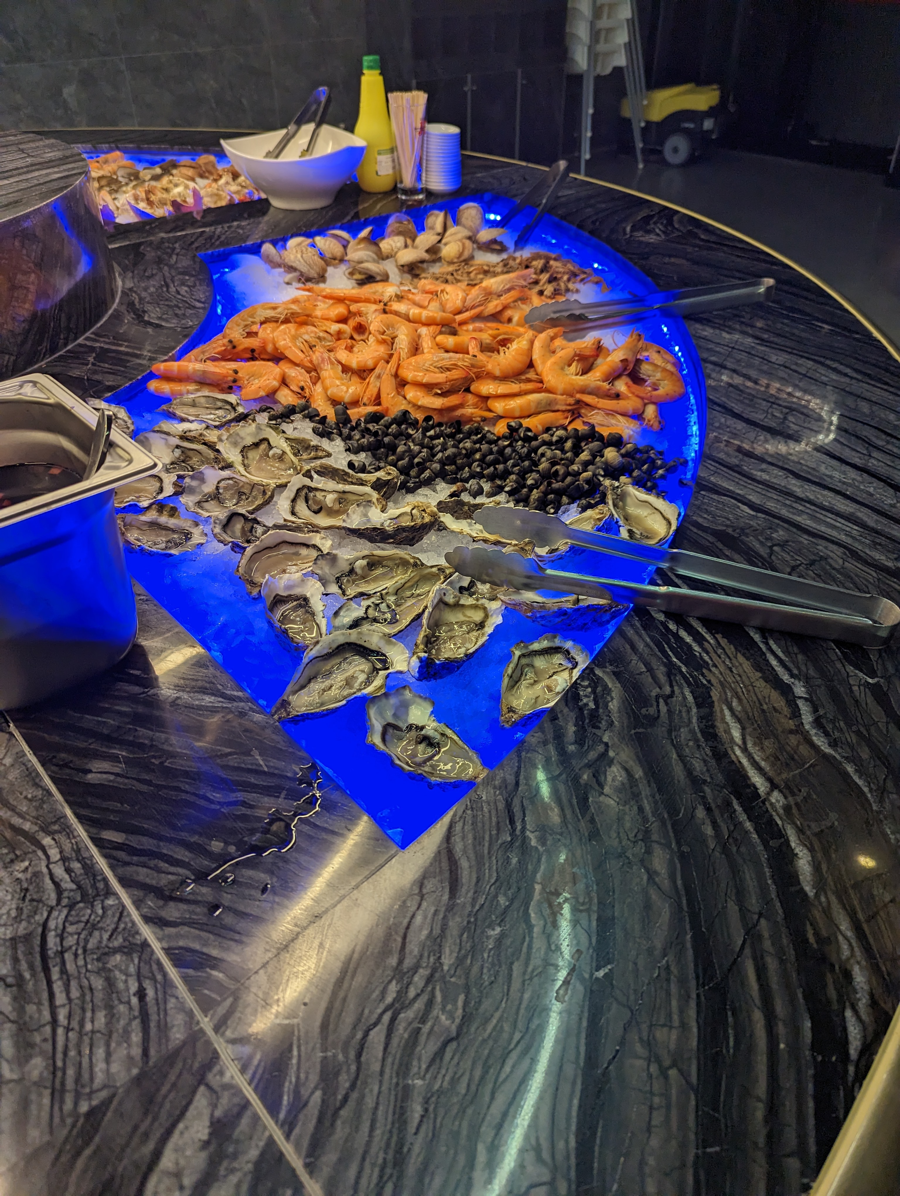 Repas froid à plusieurs reprises. Des mets réchauffer du midi (tellement sec) Riz sec Fruits de mer la fraîcheur reste à désirer. Par ex une crevette non recroquevillé n'est plus en état de fraîcheur. Quand vous venez manger avec votre enfant ils vous mettent bien vers les caisses pour controler votre consommation deplus sous la climatisation sans compter les courant d'air vu que la porte de sortie est prêt. Vous manger dans le froid gamin qui attrapé froid. Et concernant la fraîcheur des mets une bonne tourista pour moi !!!!!!! Plus jamais pour nous. A vous de tester, alors vous avez le choix oui en effet mais les stock sont mal gérées. Bon courage