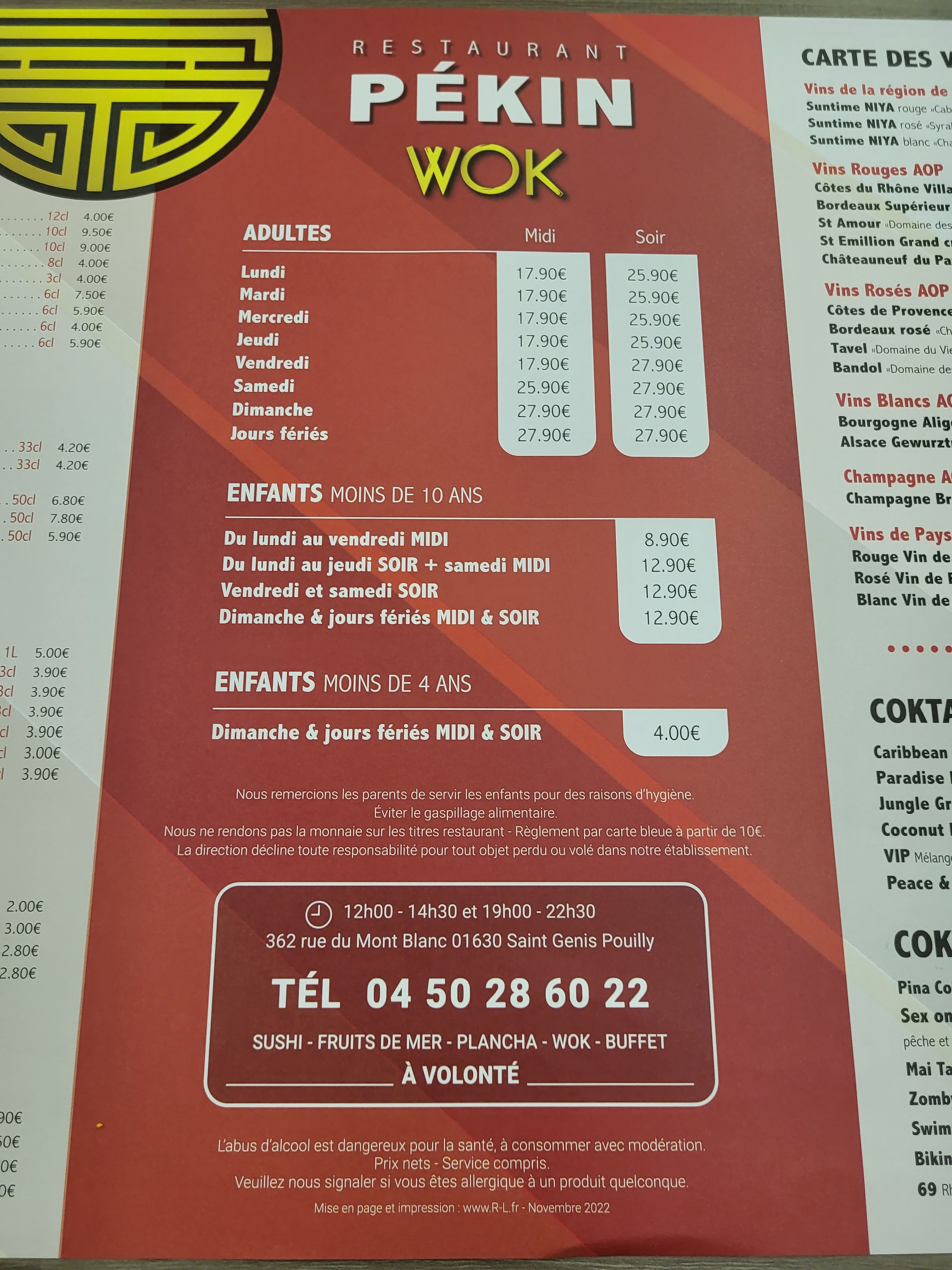 J'y suis allée un vendredi midi, nous avons très bien mangé, bcp de choix au niveau des plats Pour les sushi, maki ect la qualité n'est pas exceptionnel, et il y a moins de choix que dans d'autre restaurants asiatiques à volonté mais ce fut un très bon repas quand même.