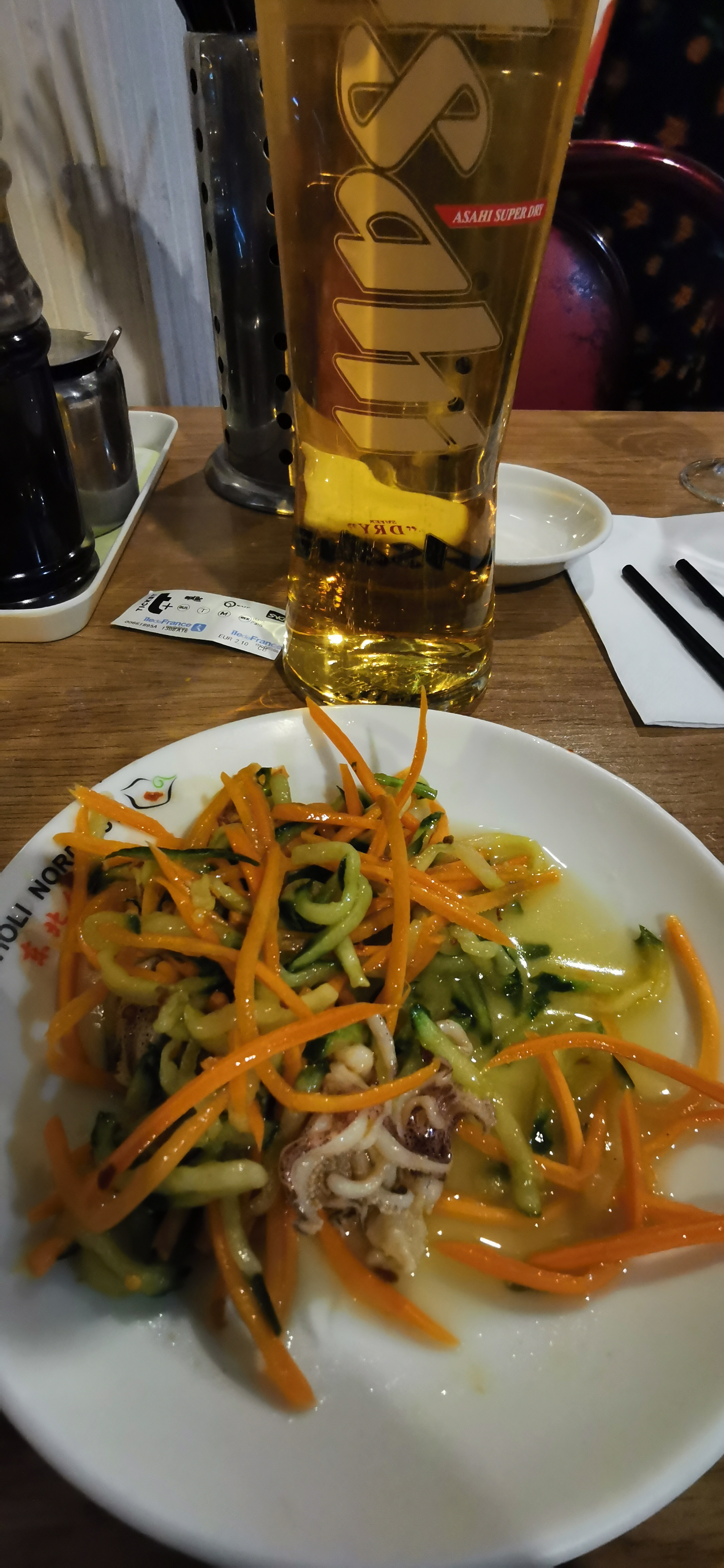 Les raviolis n'étaient pas terribles : la farce plutôt bonne mais la pâte gâchait l'ensemble. La salade d'algues était sympathique. Ça ne coûte vraiment pas cher et ça rassasie !