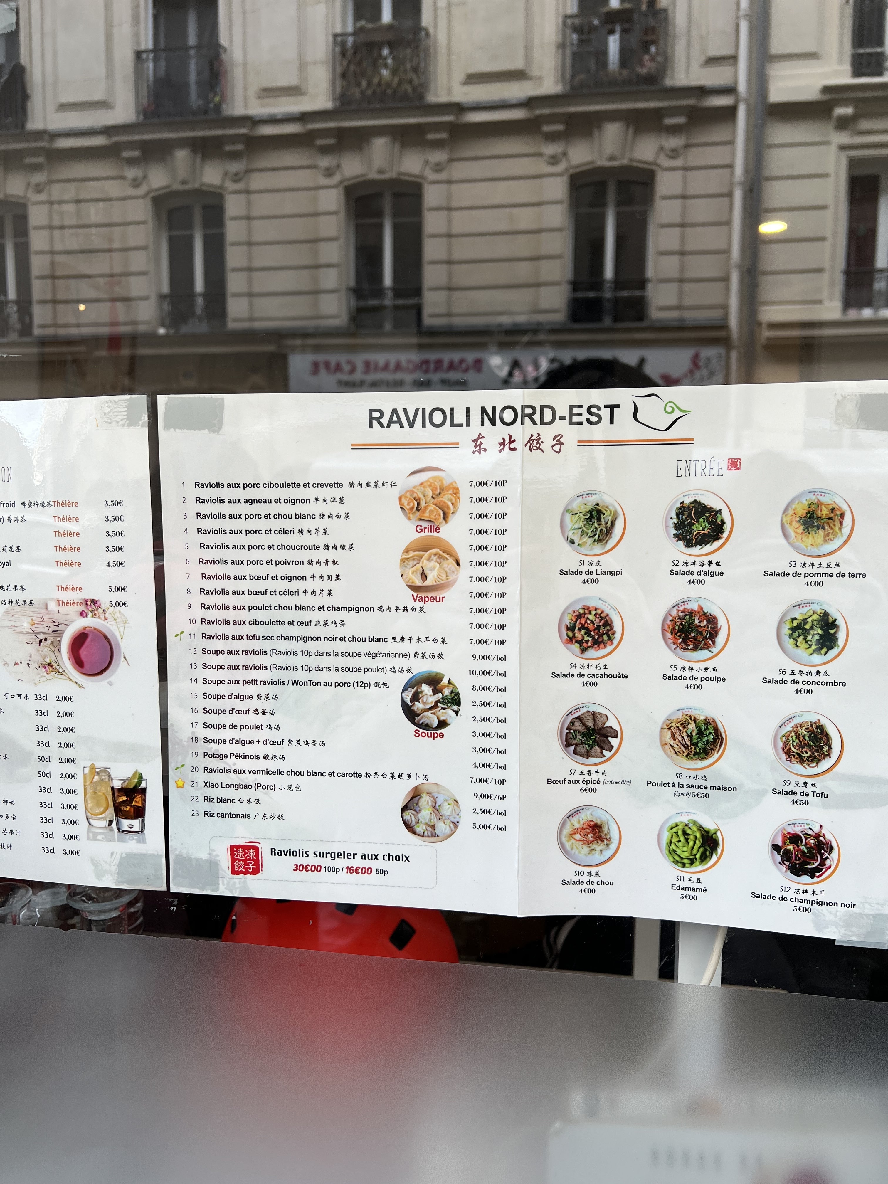 Mon avis ne sera certainement pas populaire mais je trouve que le Ravioli Nord Est est vraiment overrated 🤷. Je vis dans le quartier, j'ai eu l'occasion d'y aller plein de fois et c'est pas cher, certes, mais le goût des raviolis est vraiment pas meilleur qu'ailleurs selon moi, la pâte des raviolis est épaisse, en plus il faut attendre souvent longtemps à emporter. Et aussi je trouve que les goûts se différencient peu les uns des autres (sauf agneau ou végétarien). Bref, je fais pas partie du fan club !