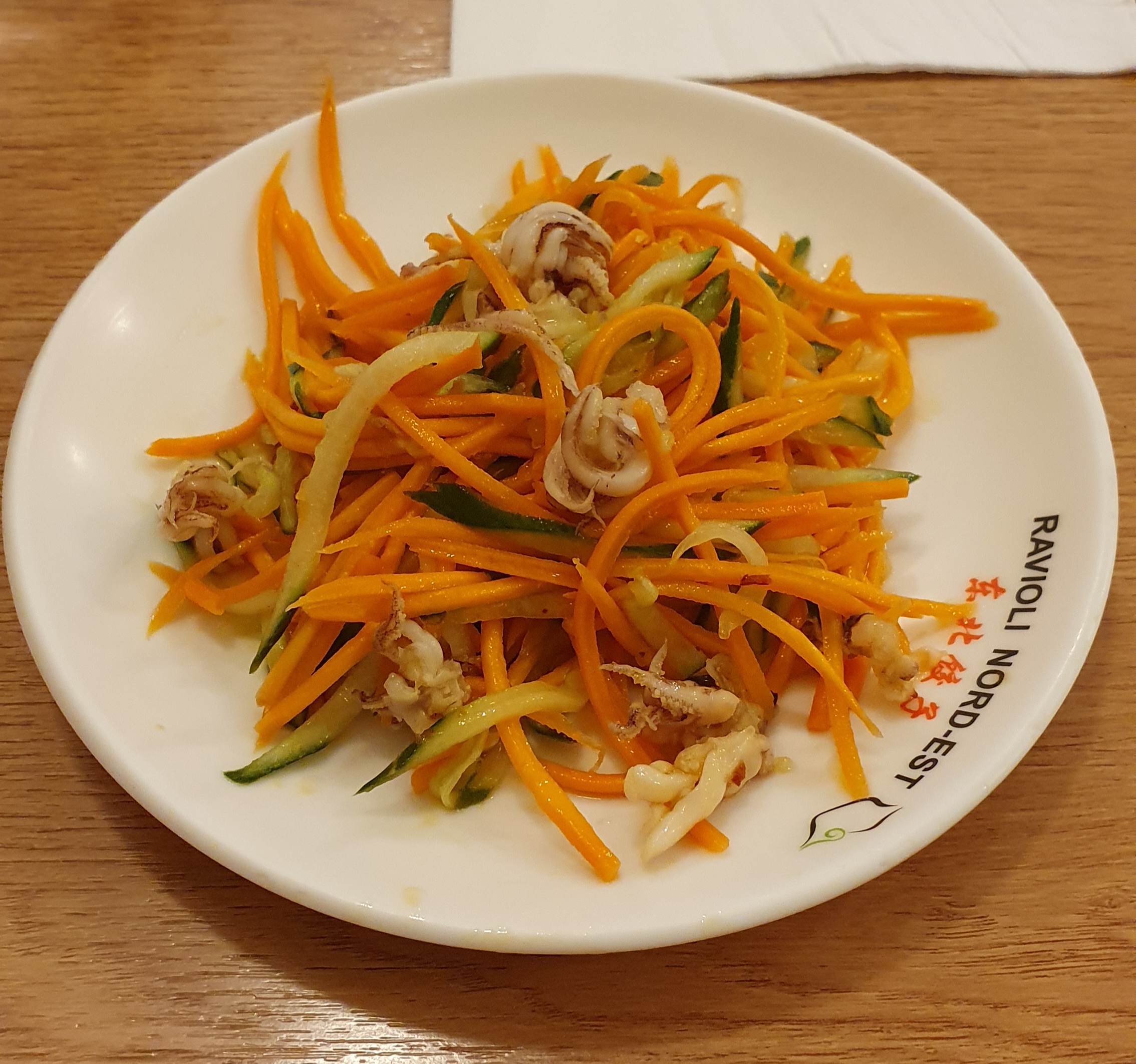 J'avais envie de Xiaolongbao depuis assez de temps, j'ai été servie :) Attention a la sauce piquante qui est très piquante pour un palais français. Le menu midi à 10€ ne les comprend pas mais vous pouvez commander 10 raviolis + salade pour 10€, très bon rapport qualité/quantité/prix. La salade de poulpe est aussi légèrement épicée
