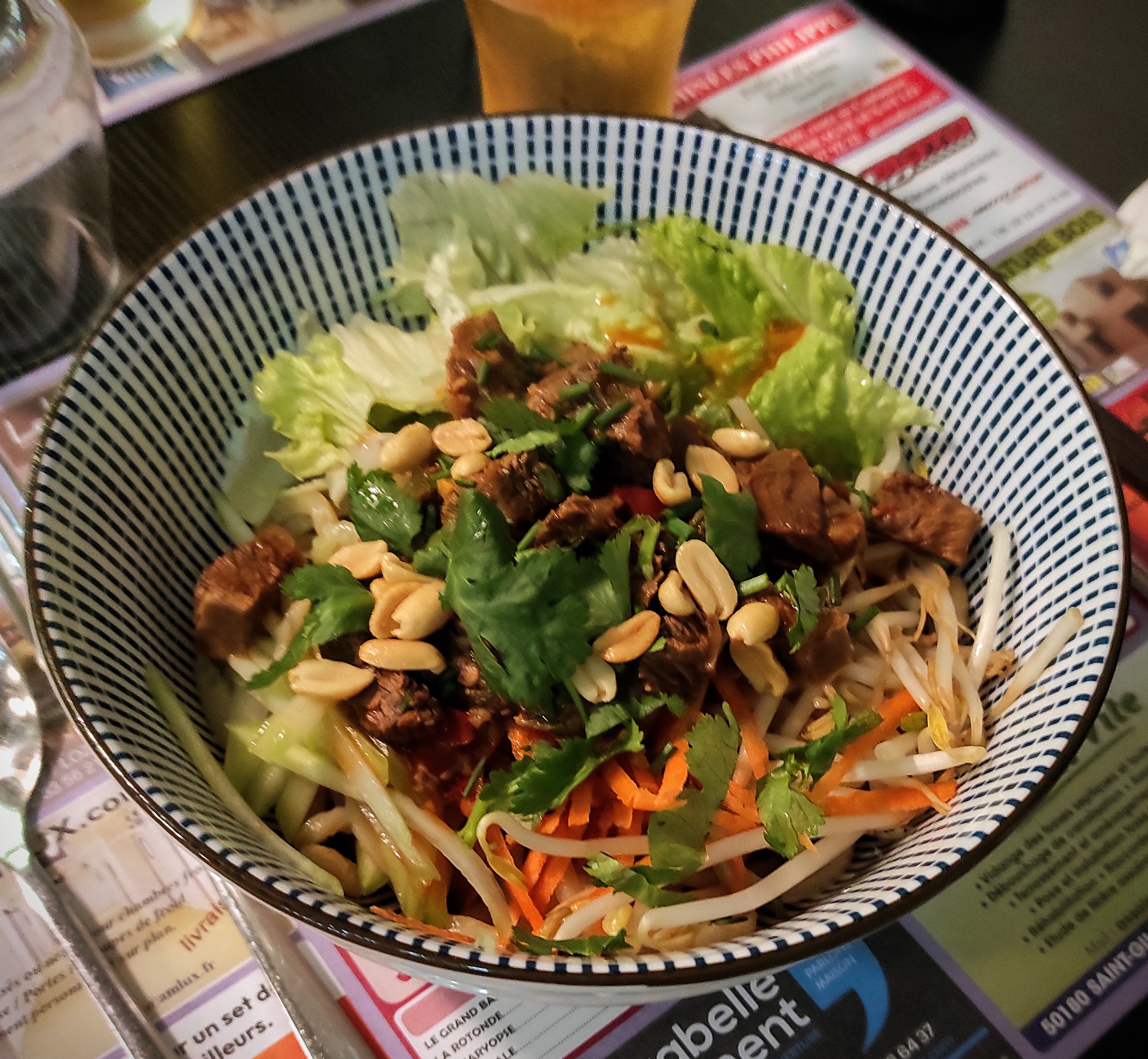 Accueil sympathique par la responsable de cet établissement familial, qui est au piano également. Elle nous a bien expliqué certaines de ses spécialités, et recommandé son en-cas du jour, des petites brioches chinoises, que nous avons partagé en entrée avec les raviolis et les nems. Le Pho au boeuf était un plat principal très copieux, qui a été apprécié. Mon bœuf piquant m'a bien convenu. Il faudra retourner tester d'autres spécialités. Compter 30 € avec une bière et un dessert et café par personne.