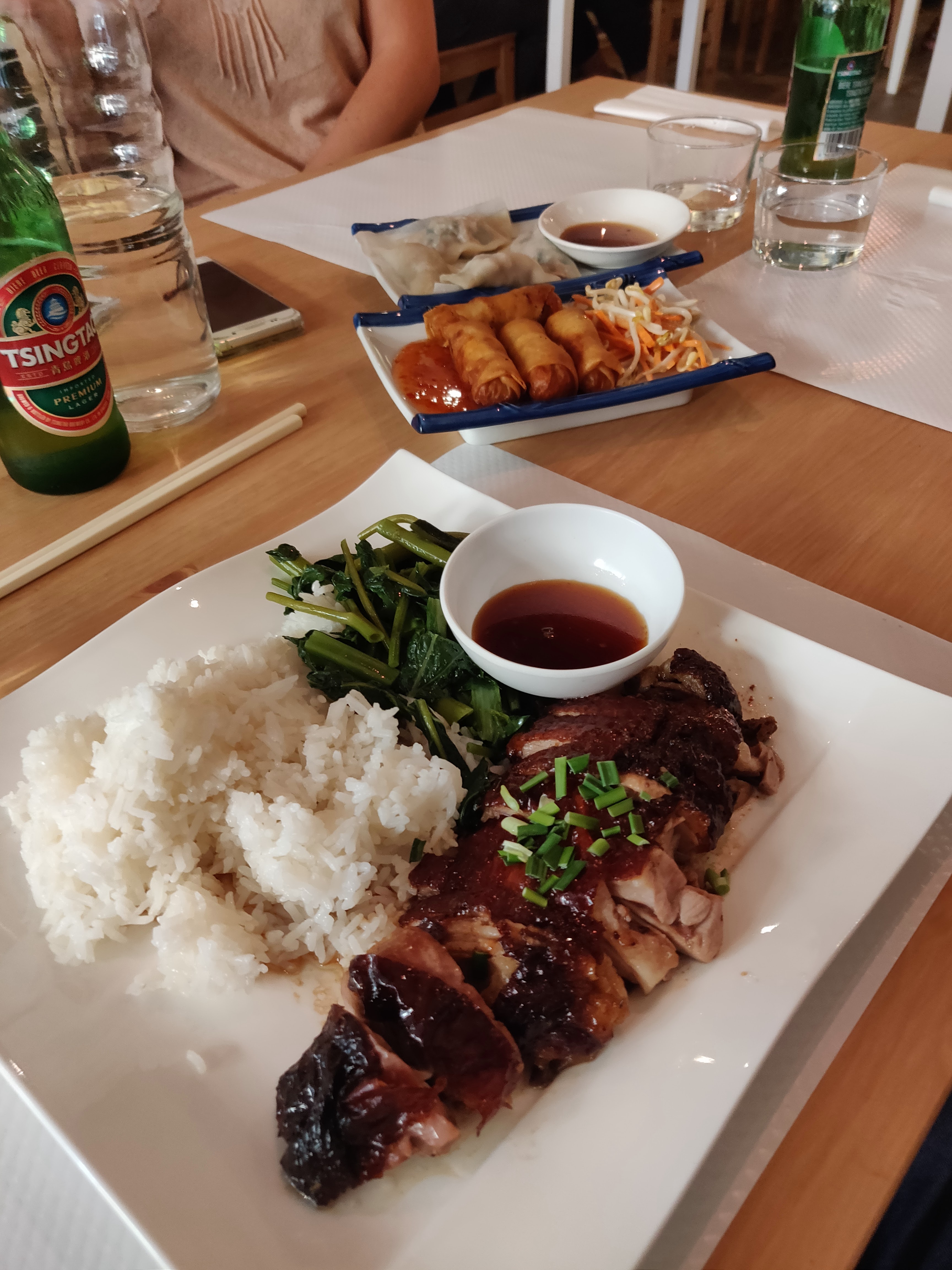 Bon restaurant chinois, lieu très agréable et service relativement rapide. Ils font les fameuses brioches baozi au poulet, mais malheureusement ils n'en faisaient pas quand nous sommes venues... On a donc goûté la salade de nems, sorte de bo bun assez frais avec de très bons nems, le riz gluant dans sa feuille au porc (assez peu de viande... Mais plat original !), des raviolis 5 saveurs vapeur, et des samossa très bons. Le restaurant sert effectivement des spécialités chinoises mais malheureusement également des spécialités non chinoises (vietnamiennes etc) ce qui est dommage ! On a du mal à savoir quel plat prendre pour être bluffé ! Finalement, bon resto au cadre agréable mais pas transcendant.