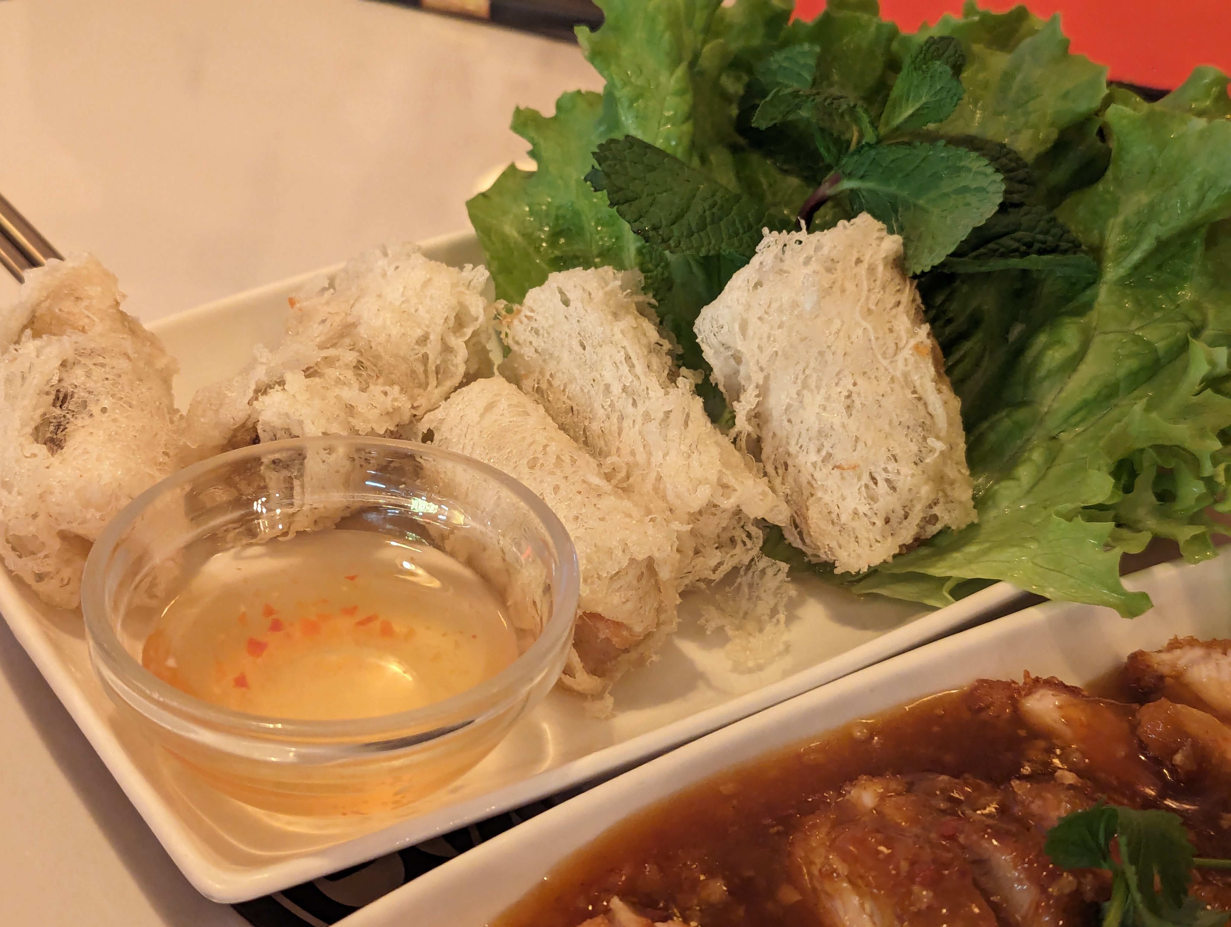 Le service et la nourriture étaient excellents. Le menu a une description en anglais, donc c'était très facile à commander. Personnel sympathique et rapide Nous avons aimé les rouleaux de printemps aux légumes avec de la laitue et de la menthe et une belle trempette De plus, le poulet au basilic était très savoureux. Bière et Kir pour nos boissons