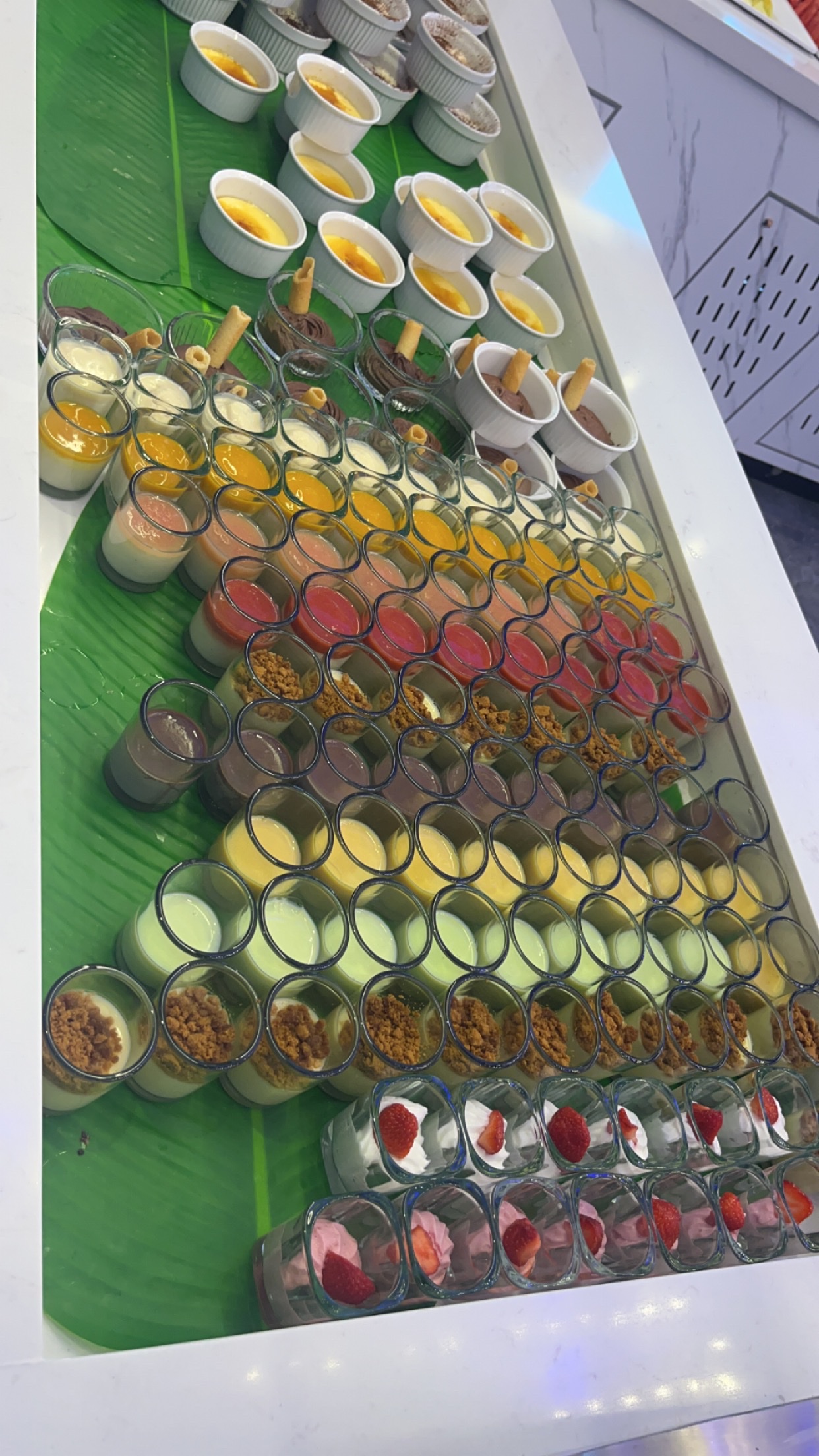 Restaurant asiatique à volonté Un serveur prend votre commande de boissons puis c’est un robot qui les amène. Le buffet est vraiment très grand et très bien garnie, il y en a vraiment pour tous les goûts. Le soir, il y a une grande variété de fruits de mer. Pour le buffet des desserts: beaucoup de fruits, des verrines, de la glace en vrac et même de la glace italienne. Une bonne expérience !