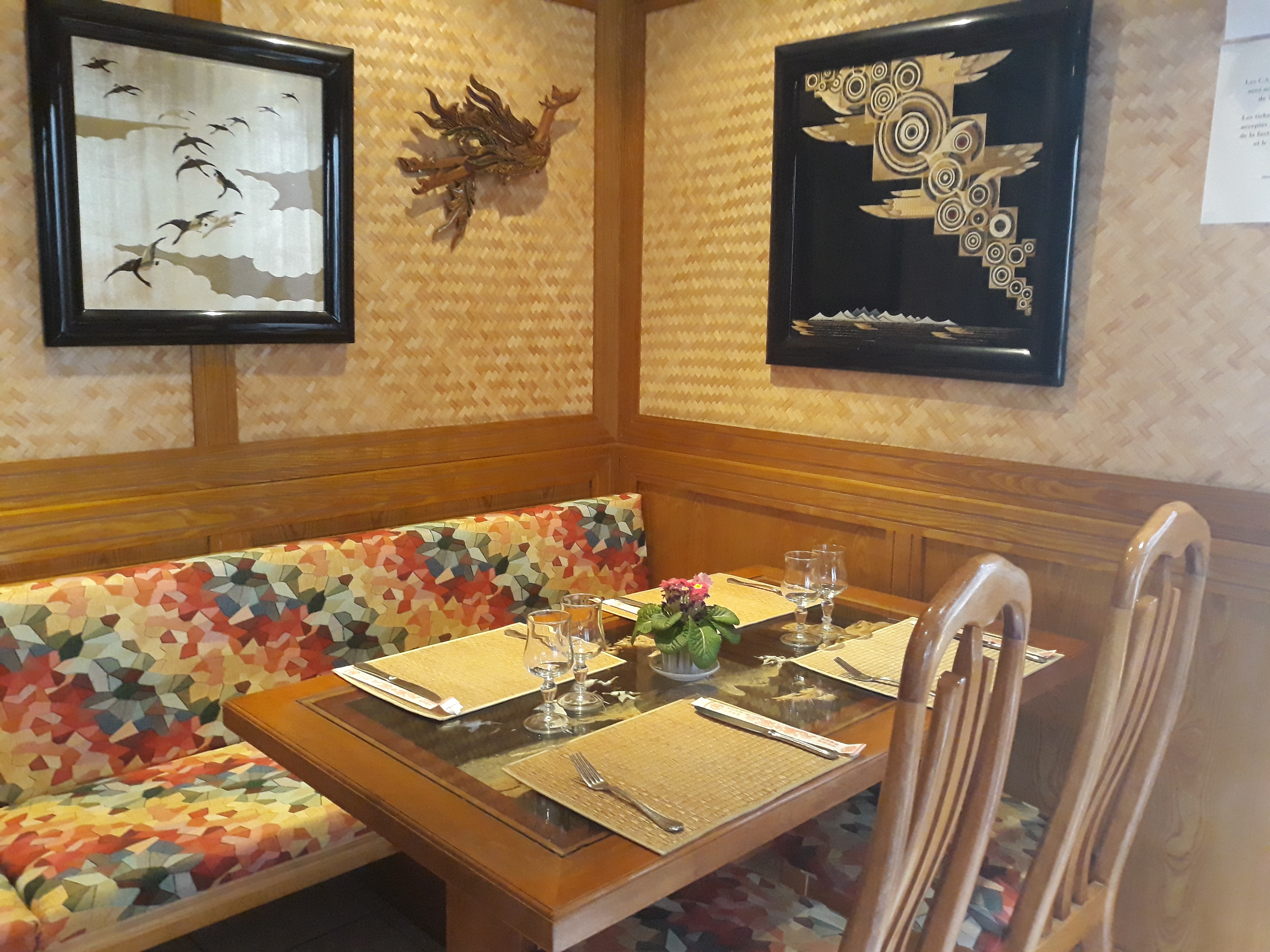 Endroit chaleureux petite dame très gentille et souriante et surtout très courageuse de gérer la salle et les commandes je recommande le canard croustillant à la thaïlandaise excellent je me suis régaler mon compagnon a adoré le boeuf a la thaïlandaise