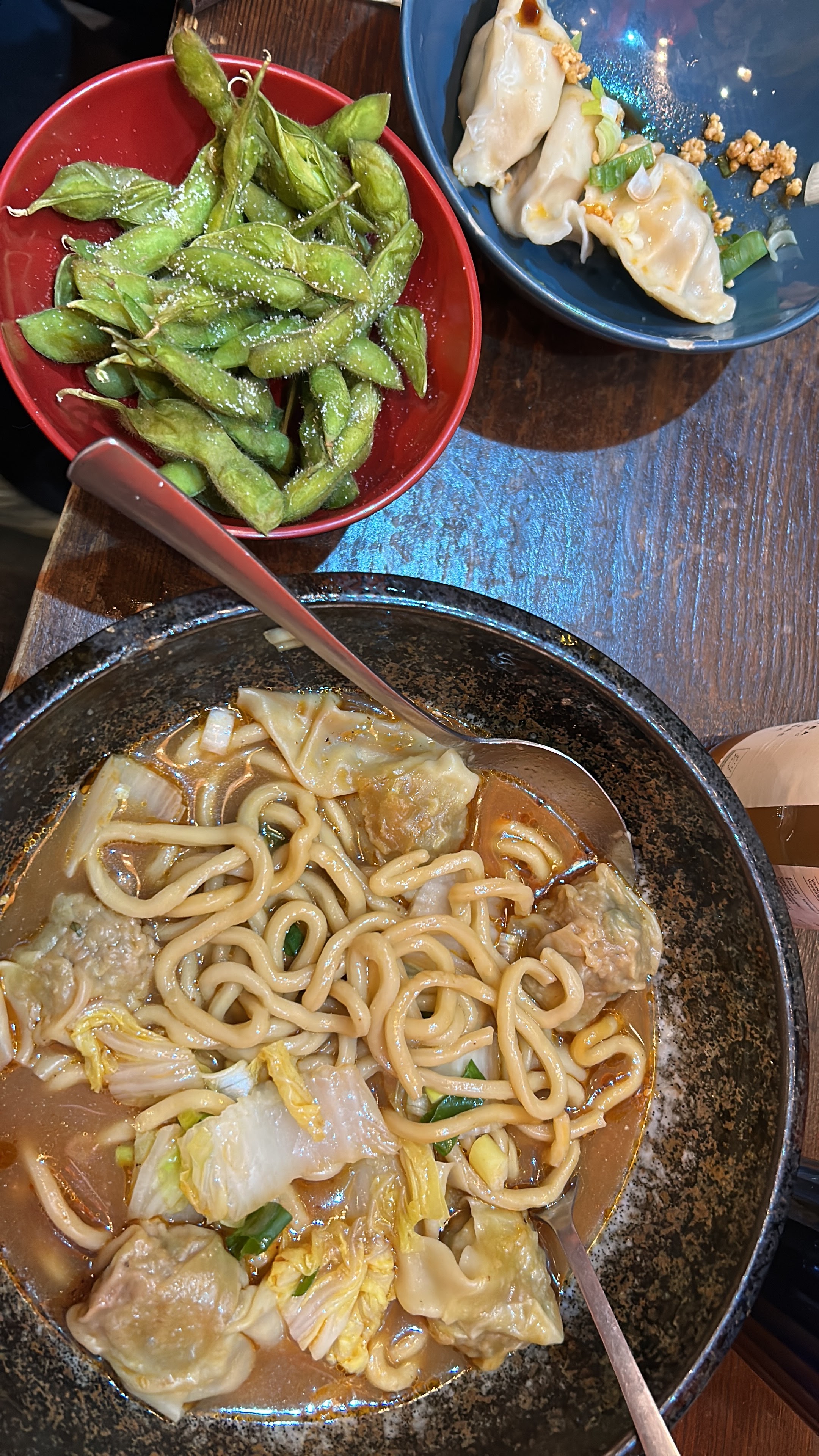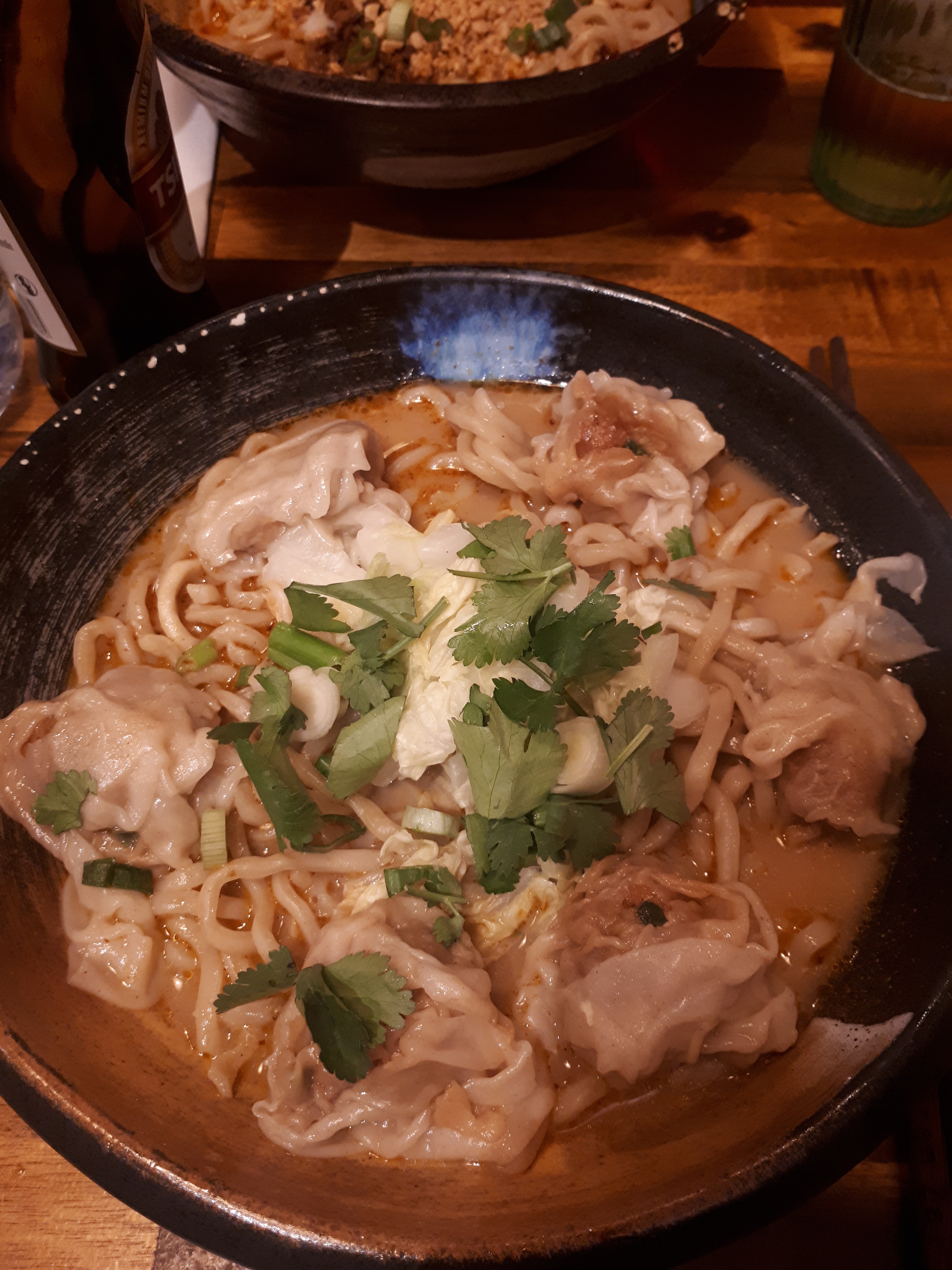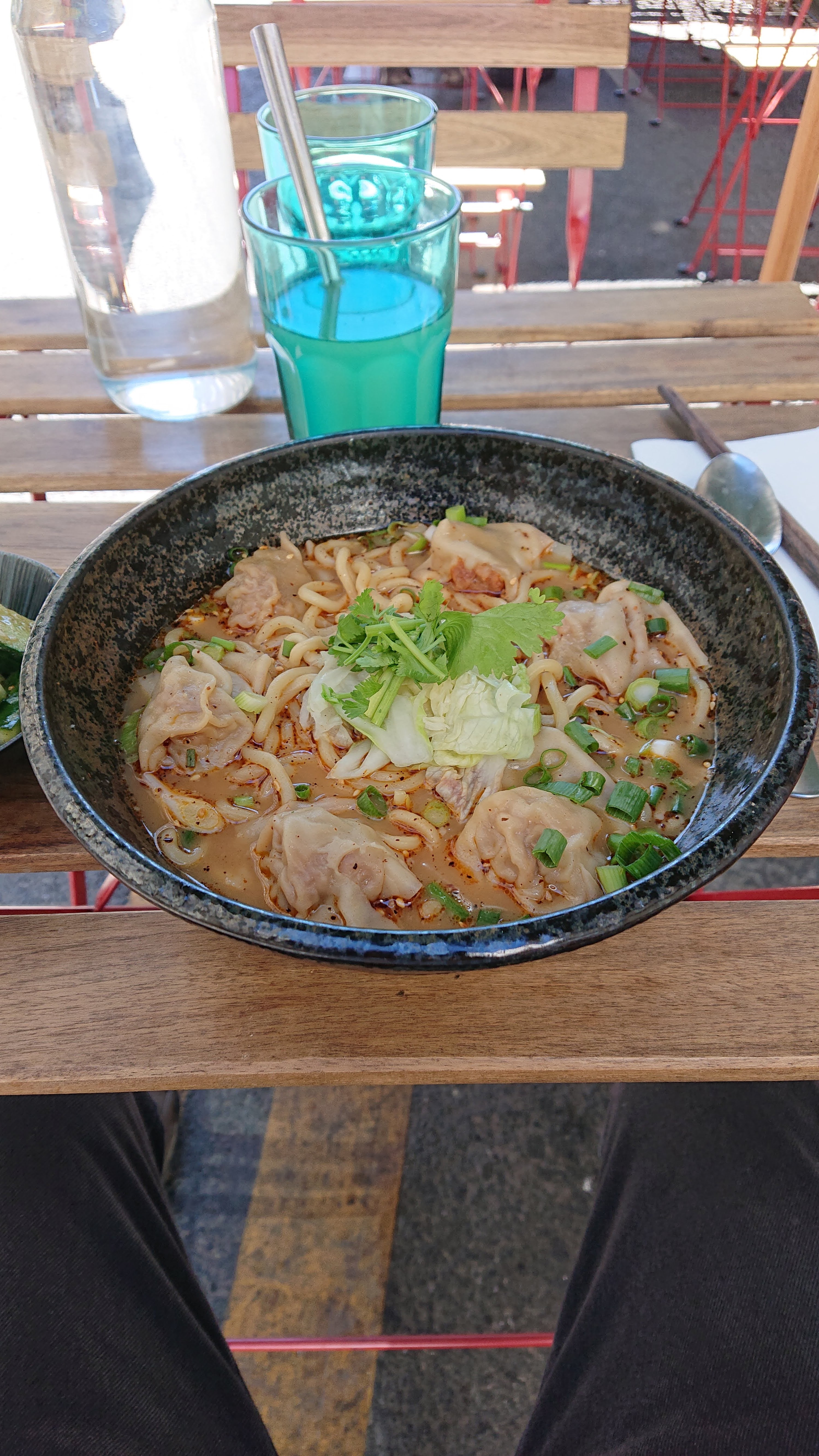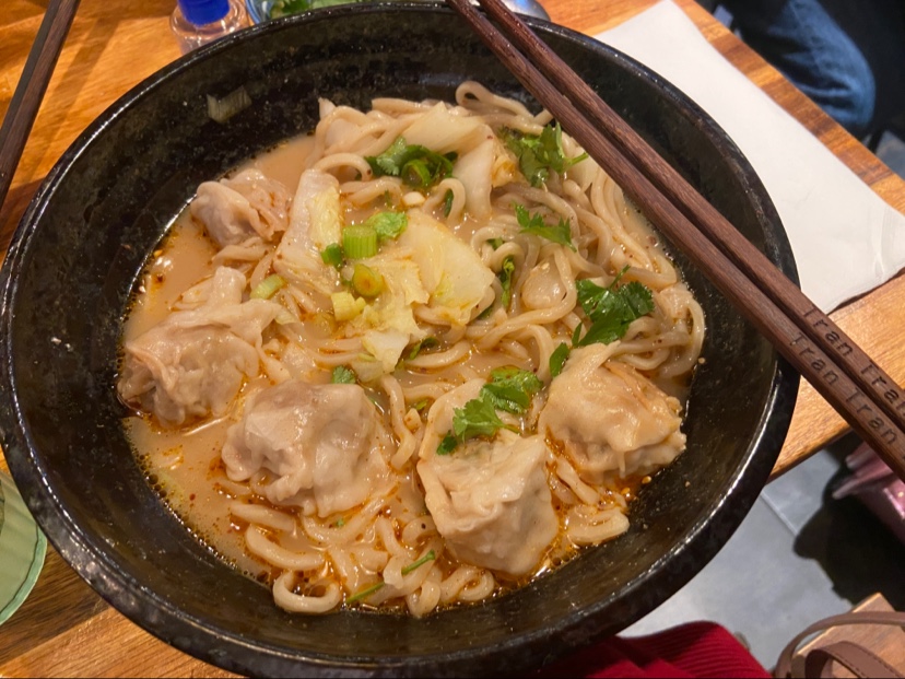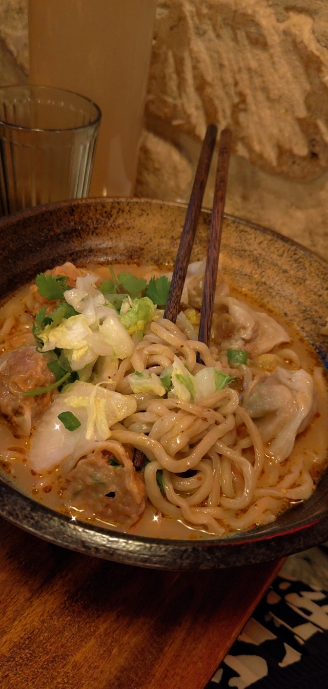 Je mange toujours trop bien la bas. Les soupes aux raviolis de porc ma pépite. Sébastien m’a très bien accueillie. Je mangeais seule et je l’entendais à voir un mot pour chaque personne qu’il installait. Une personne super agréable
