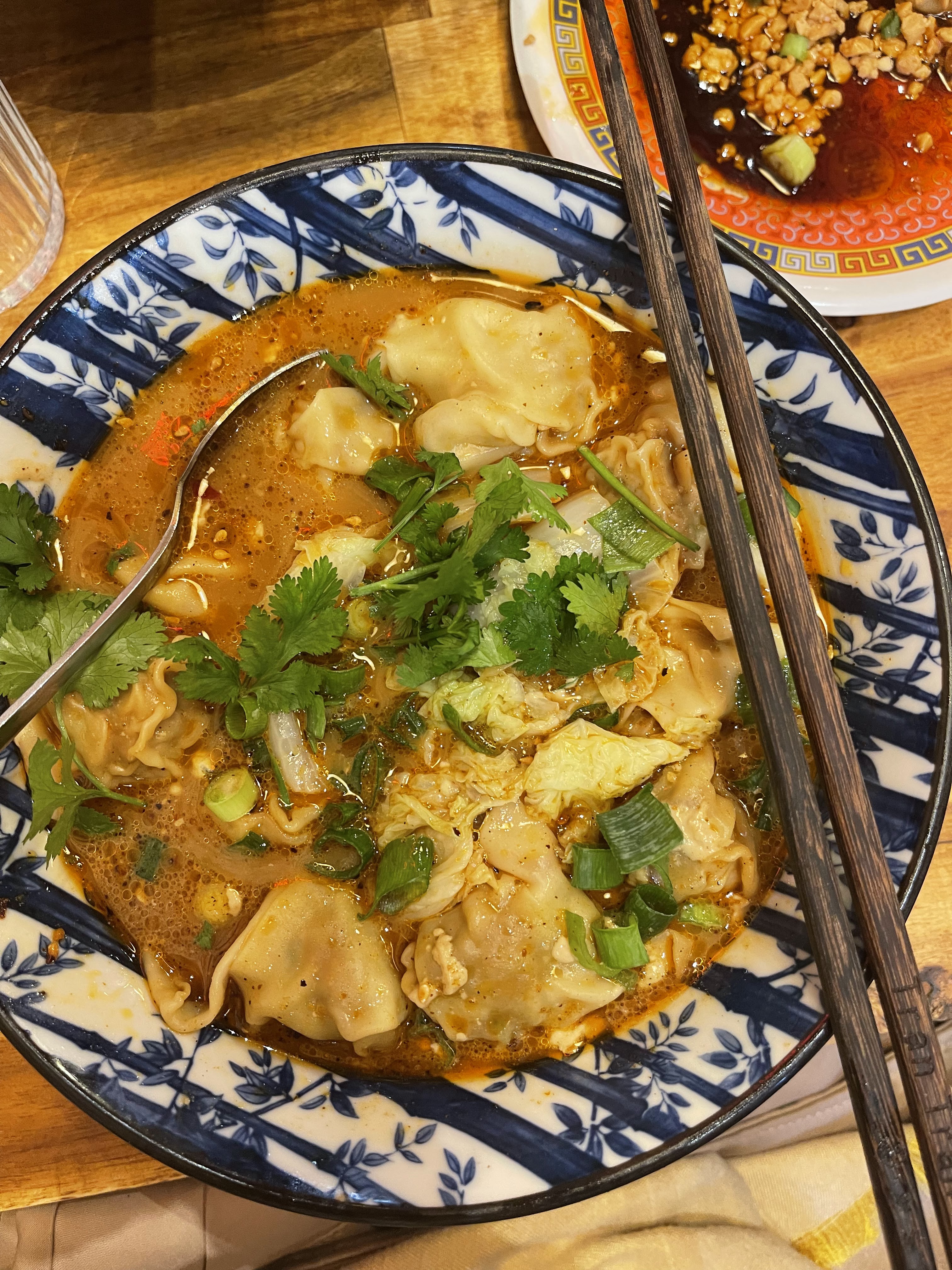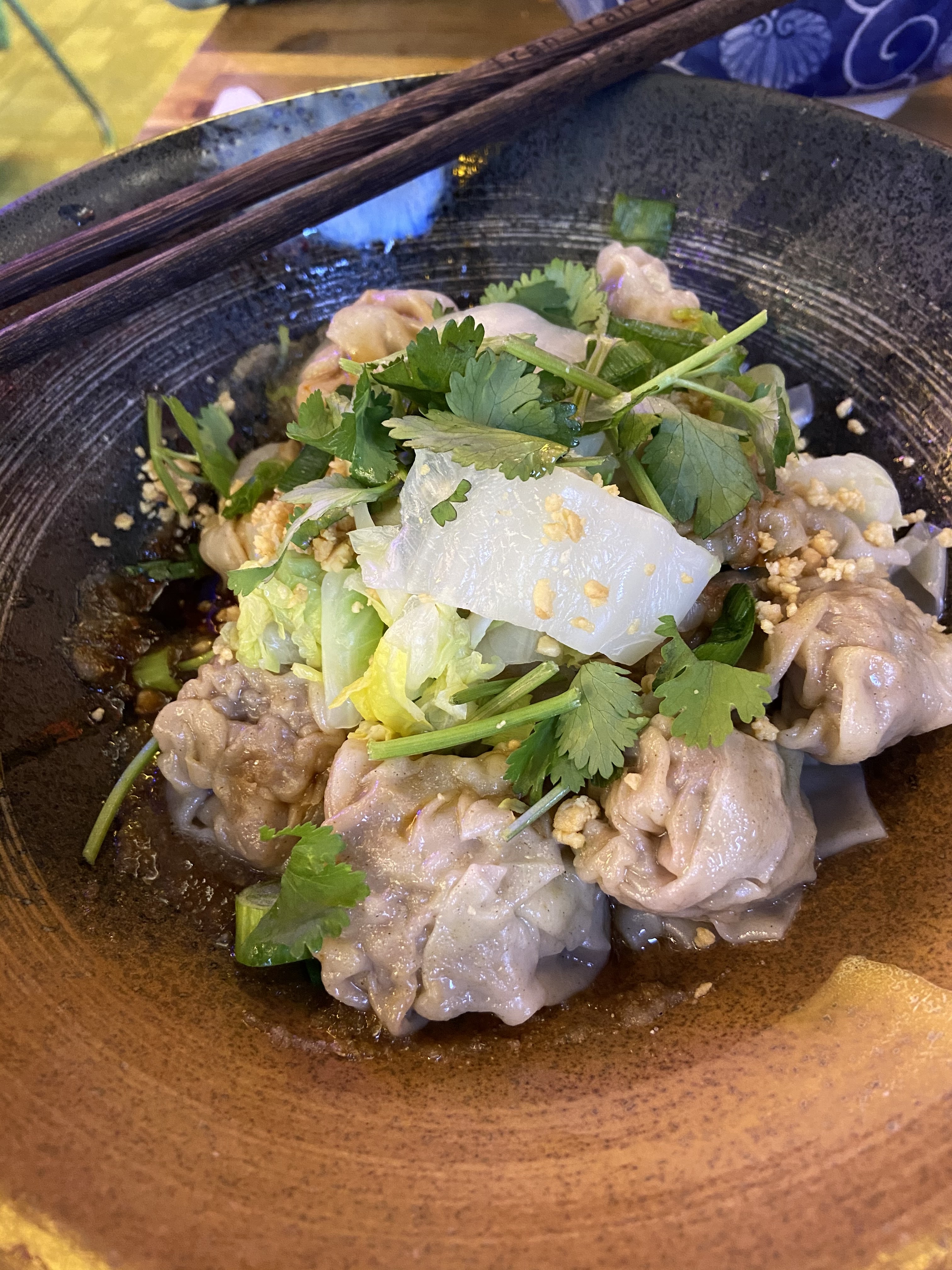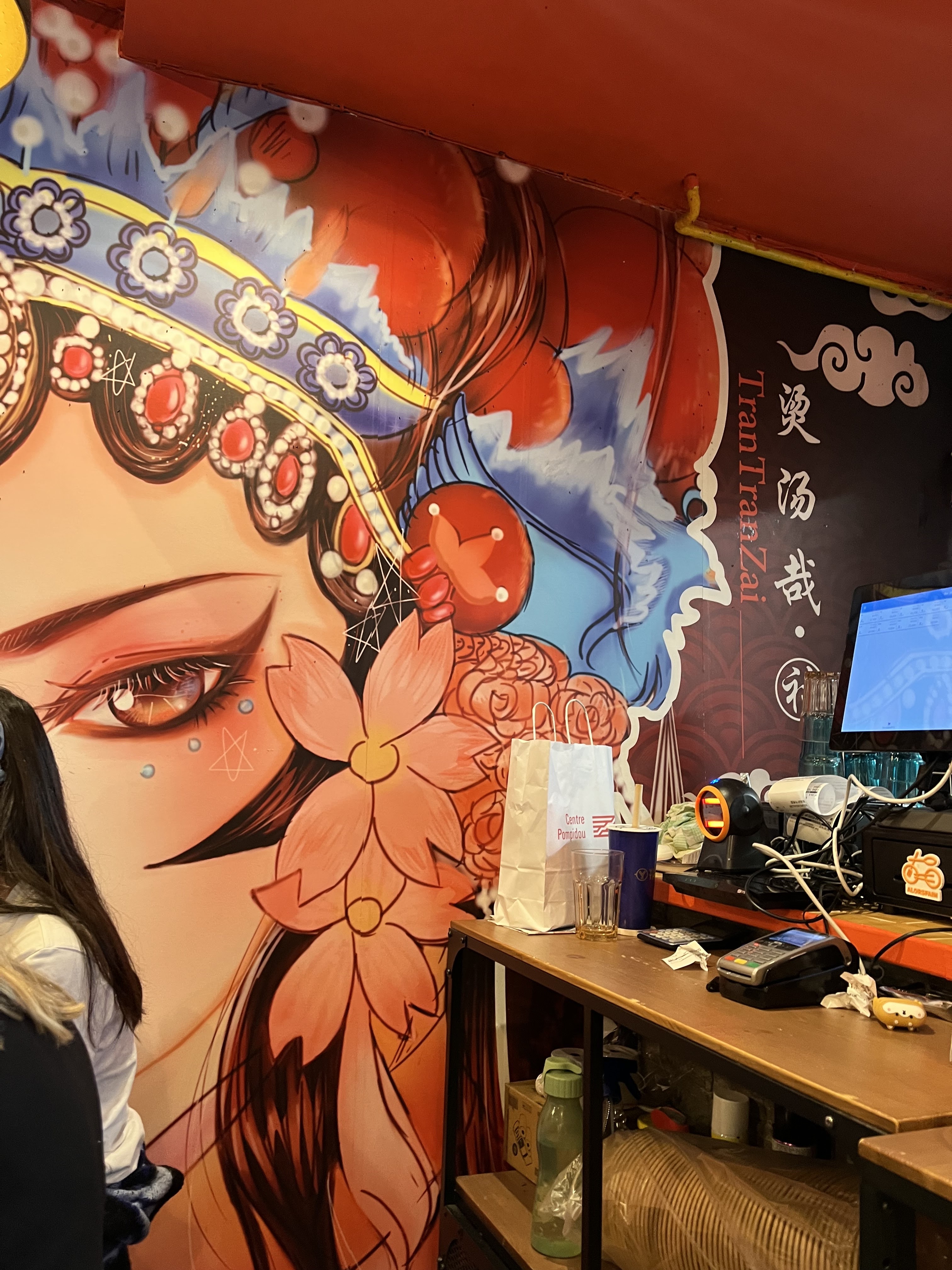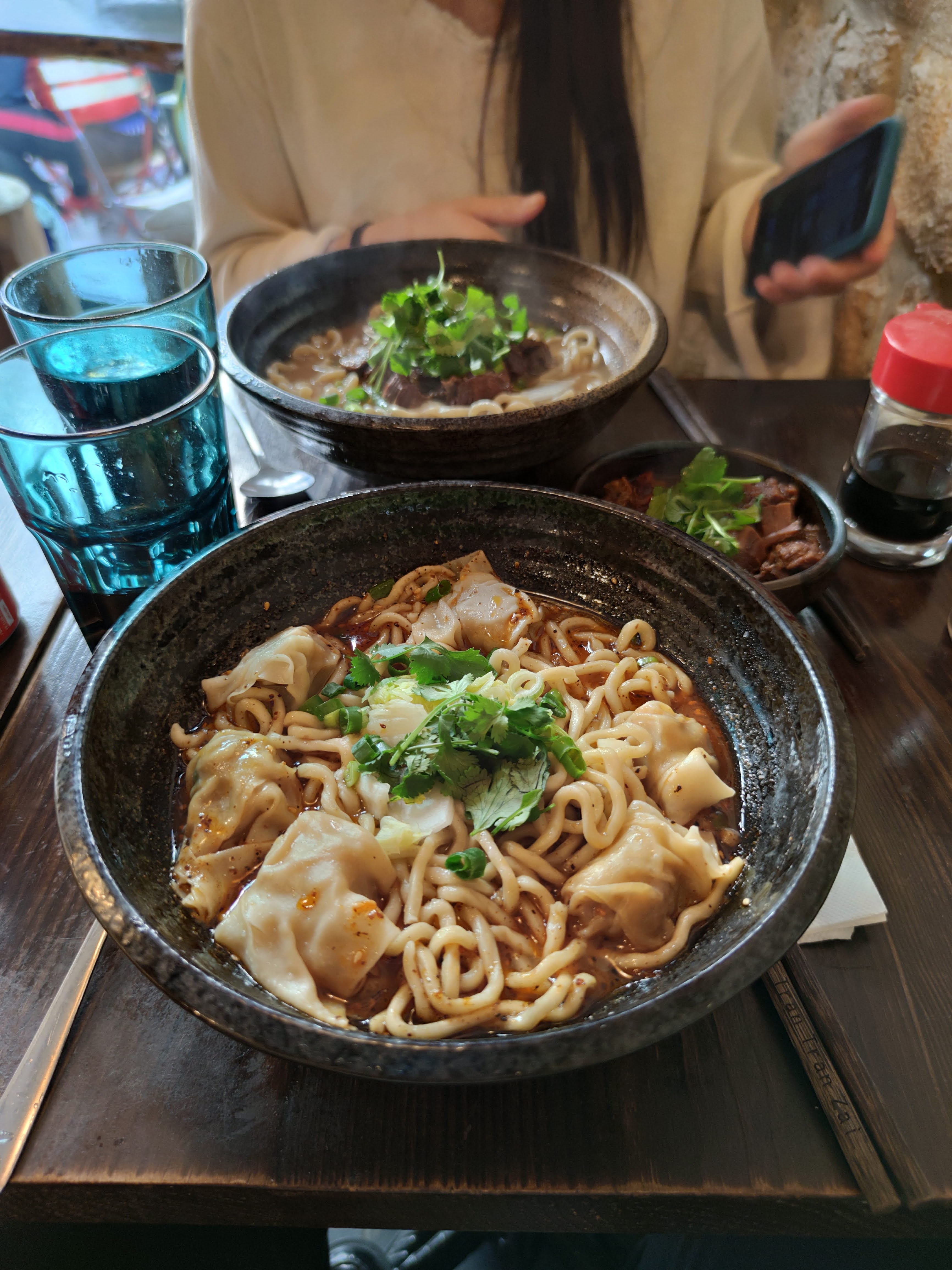 Je mange toujours trop bien la bas. Les soupes aux raviolis de porc ma pépite. Sébastien m’a très bien accueillie. Je mangeais seule et je l’entendais à voir un mot pour chaque personne qu’il installait. Une personne super agréable
