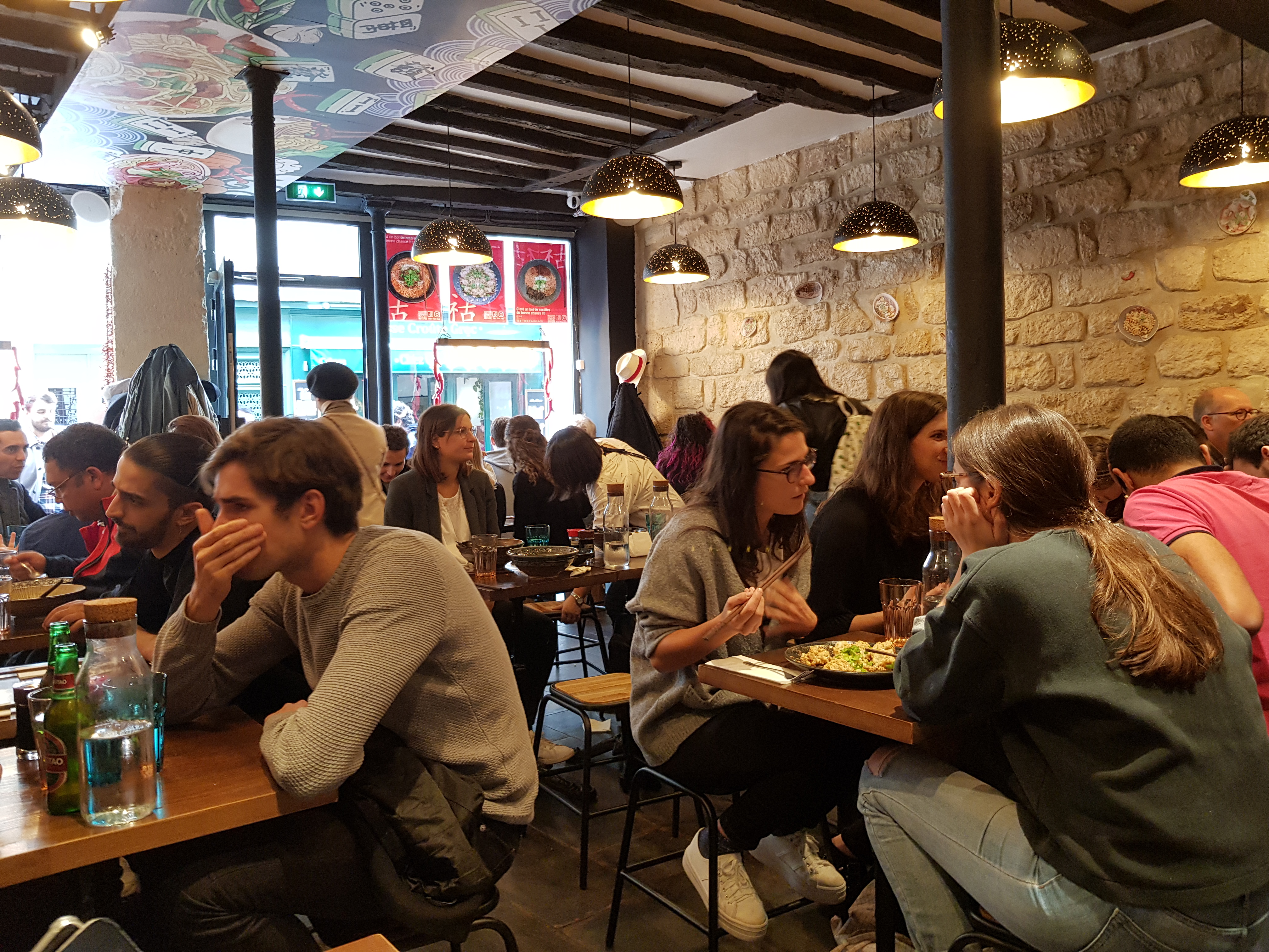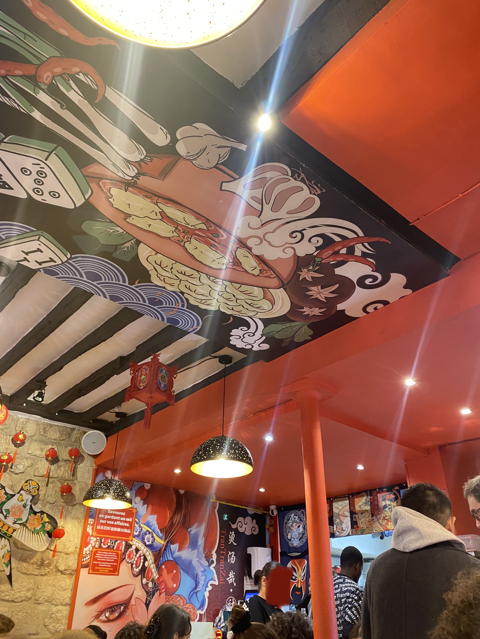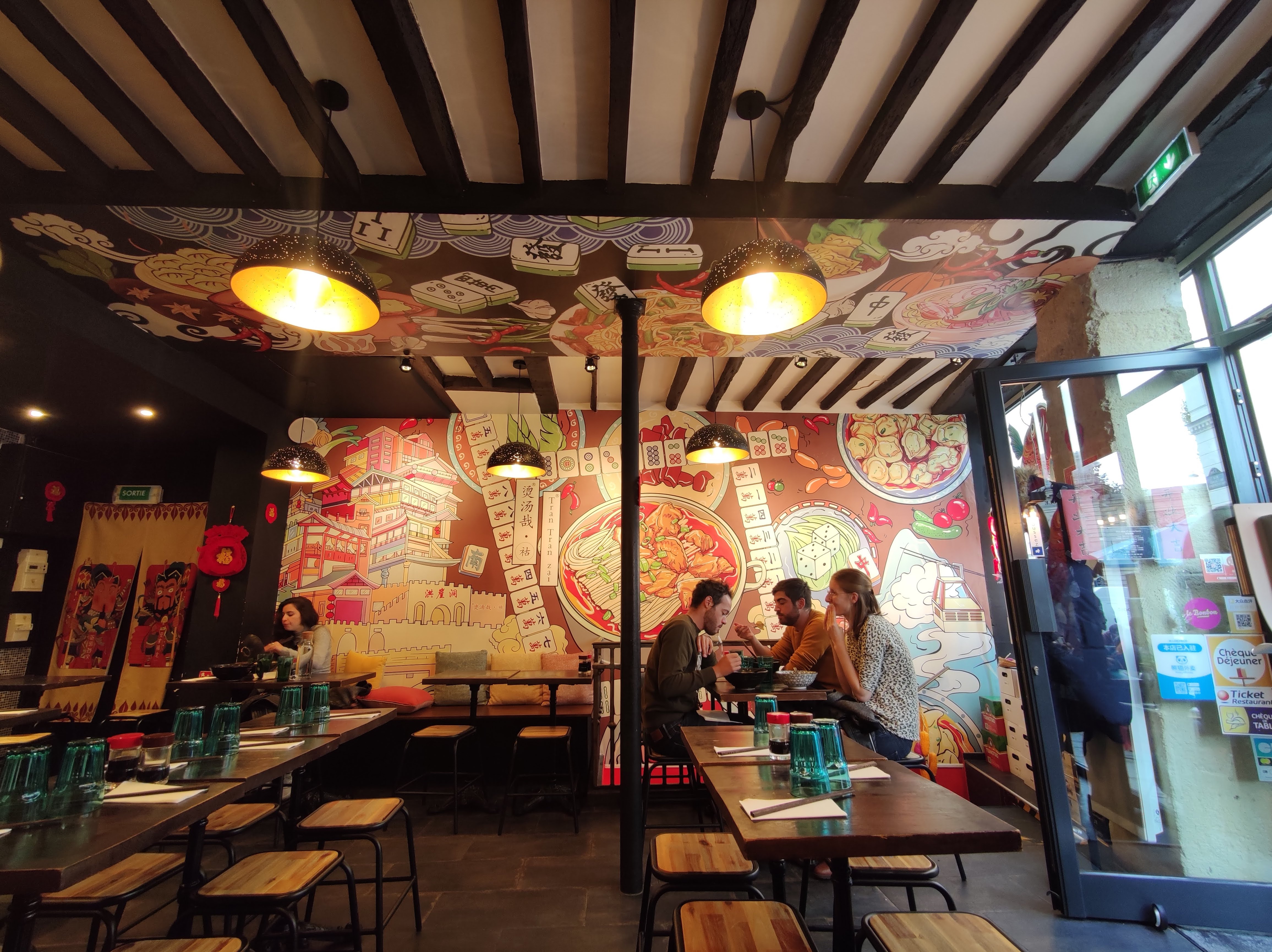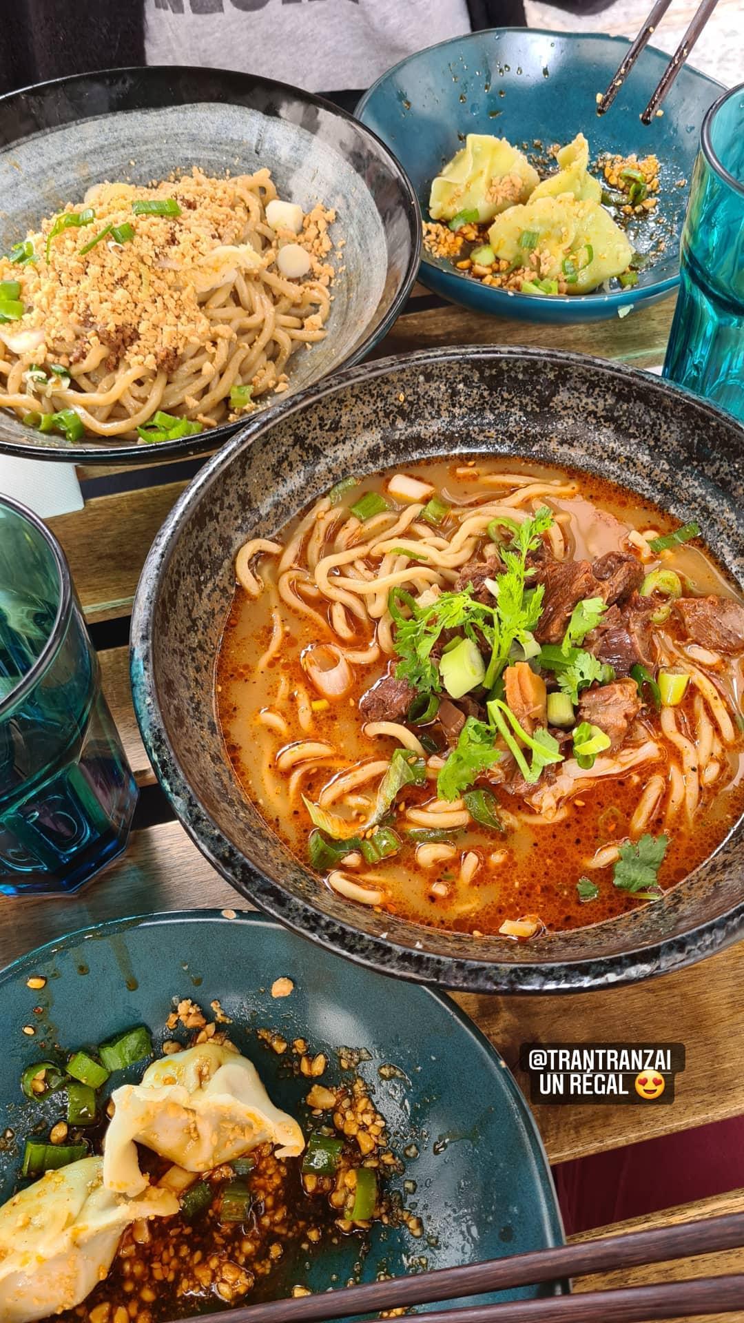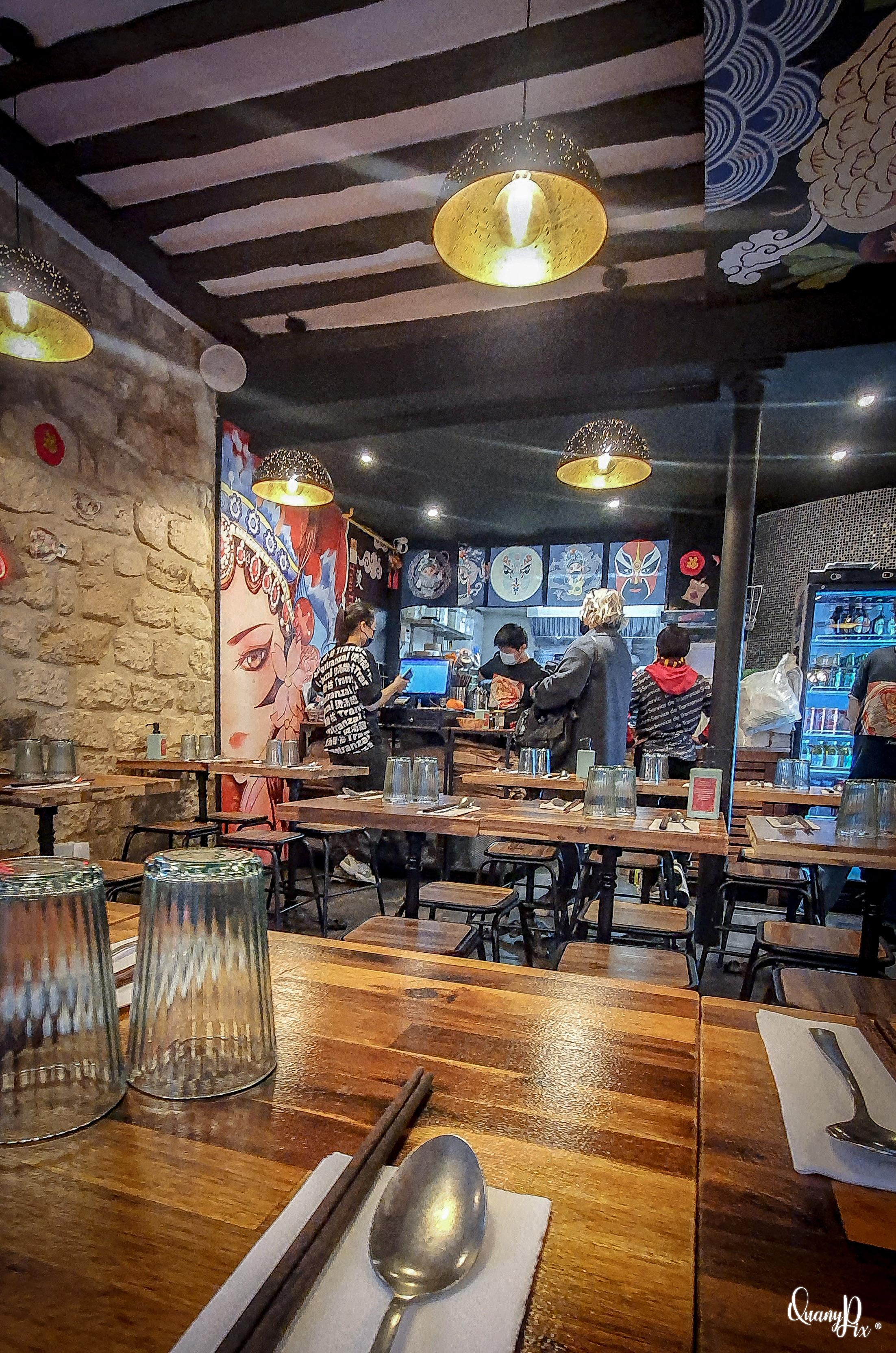 Les plats sont très bons que ce soit la soupe de nouilles au bœuf, les raviolis au porc, les nouilles DanDan ou les nouilles végétariennes ! Si vous aimez le piment, je vous conseille de prendre au moins le niveau 3, en dessous on ne sent pas trop. Concernant les bémols : la salle est vraiment petite, on se sent à l'étroit, c'est assez bruyant. Étant allée à leur restaurant à Montparnasse quelques mois auparavant je vous conseillerai plutôt de vous rendre là-bas. Le service était aussi désorganisé, sûrement dû à la forte affluence.