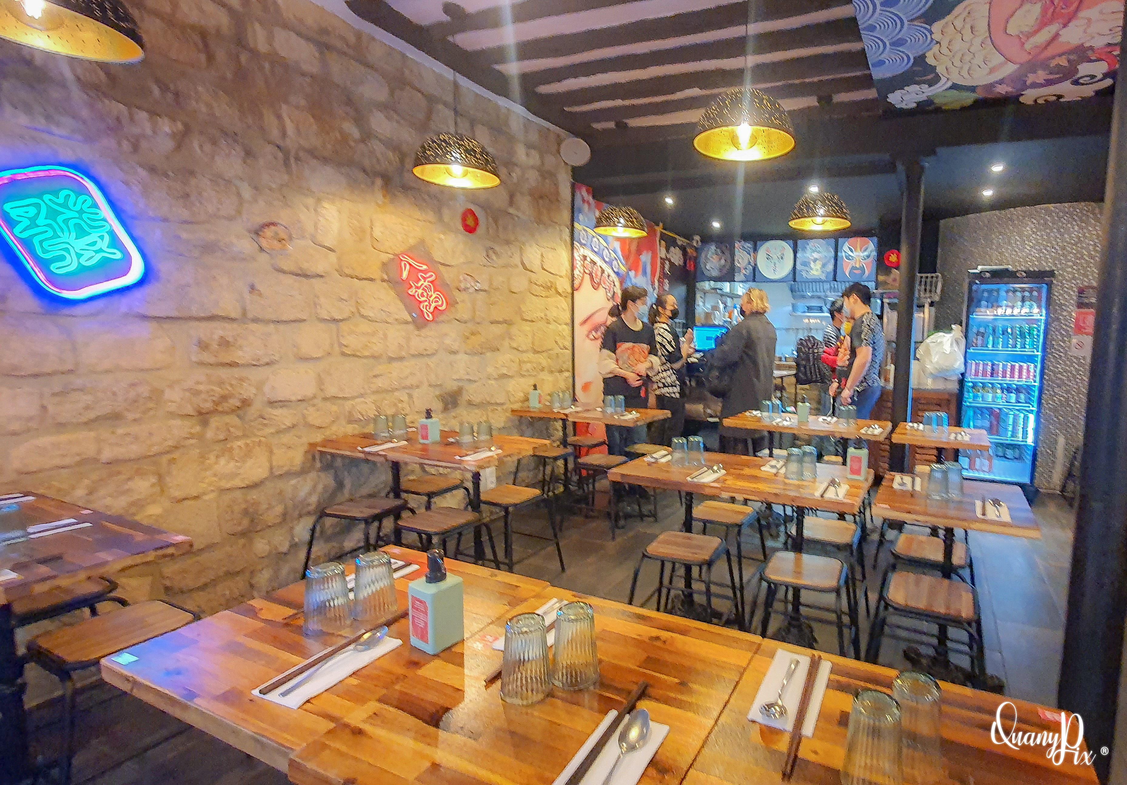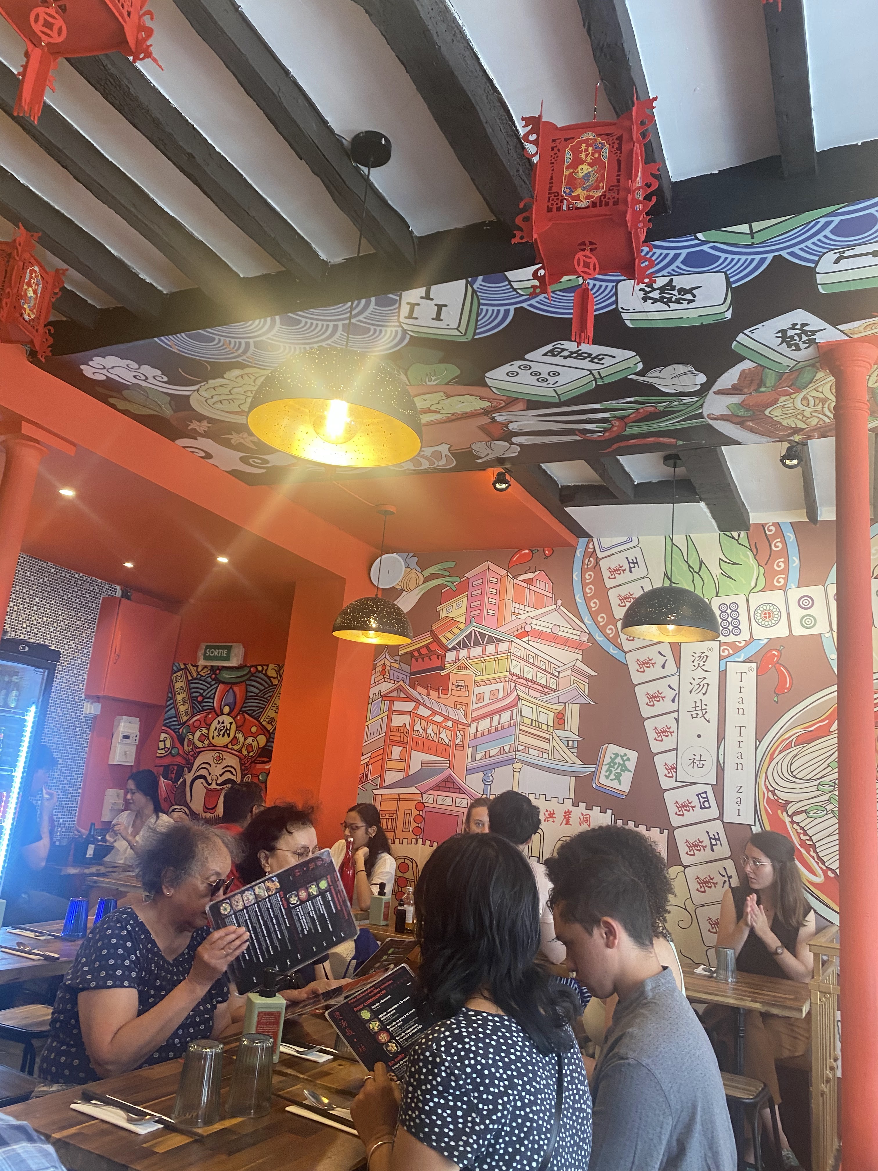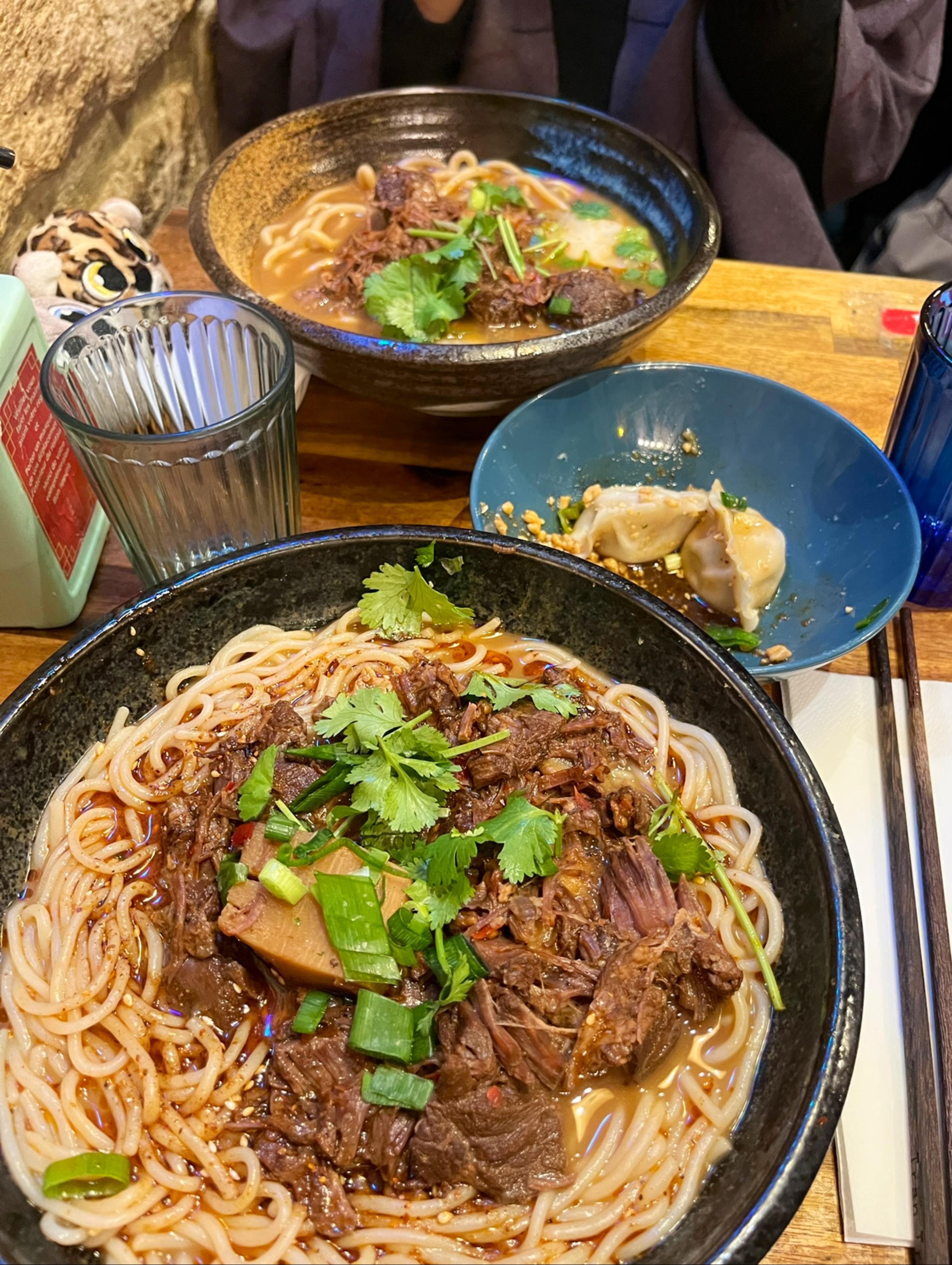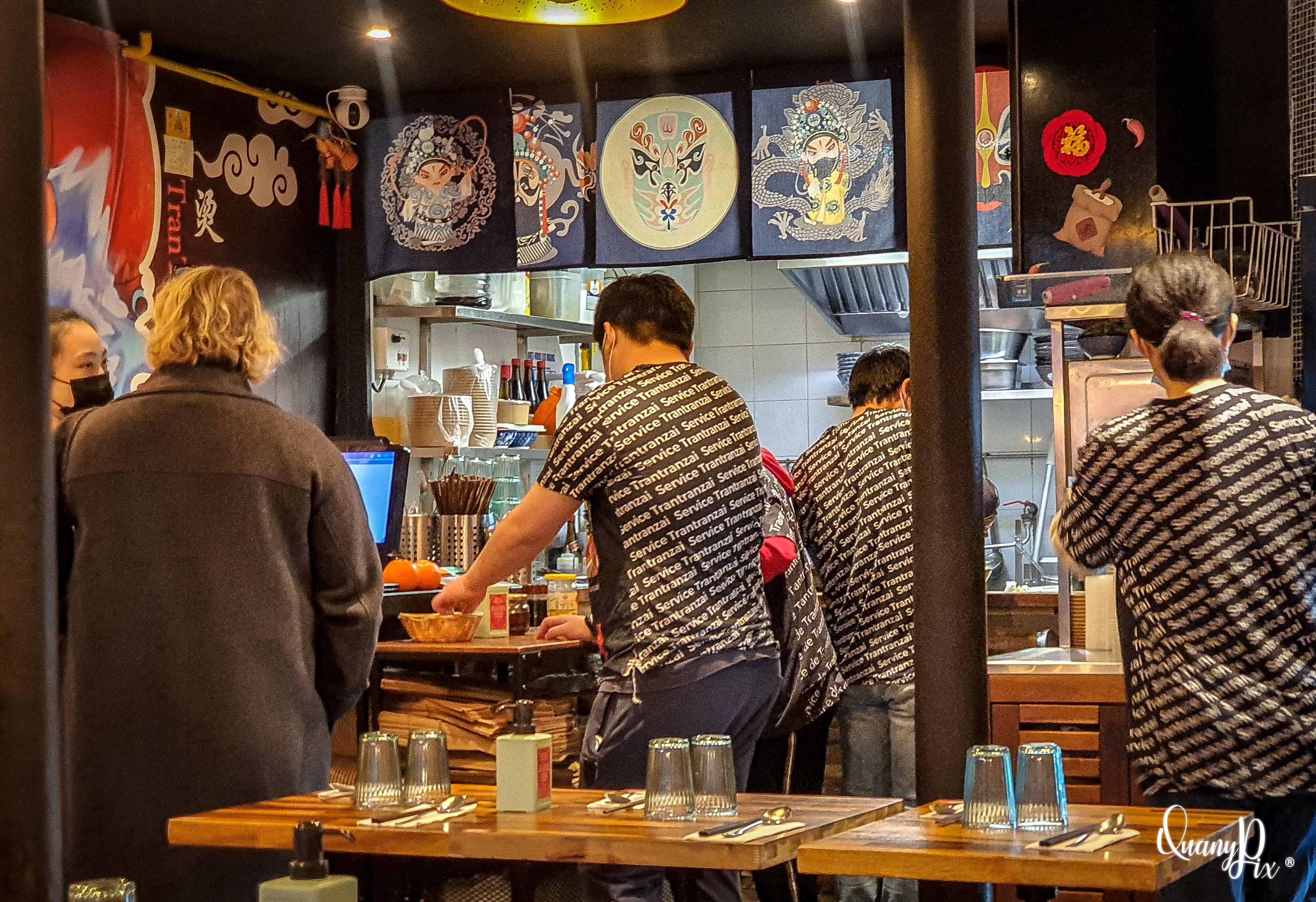 Les plats sont très bons que ce soit la soupe de nouilles au bœuf, les raviolis au porc, les nouilles DanDan ou les nouilles végétariennes ! Si vous aimez le piment, je vous conseille de prendre au moins le niveau 3, en dessous on ne sent pas trop. Concernant les bémols : la salle est vraiment petite, on se sent à l'étroit, c'est assez bruyant. Étant allée à leur restaurant à Montparnasse quelques mois auparavant je vous conseillerai plutôt de vous rendre là-bas. Le service était aussi désorganisé, sûrement dû à la forte affluence.