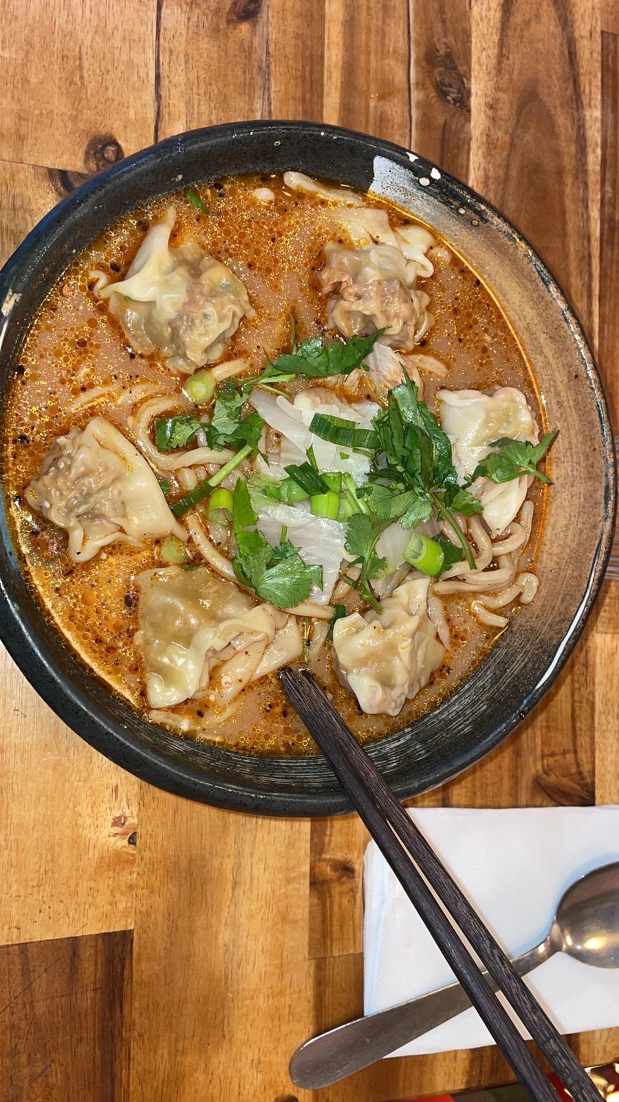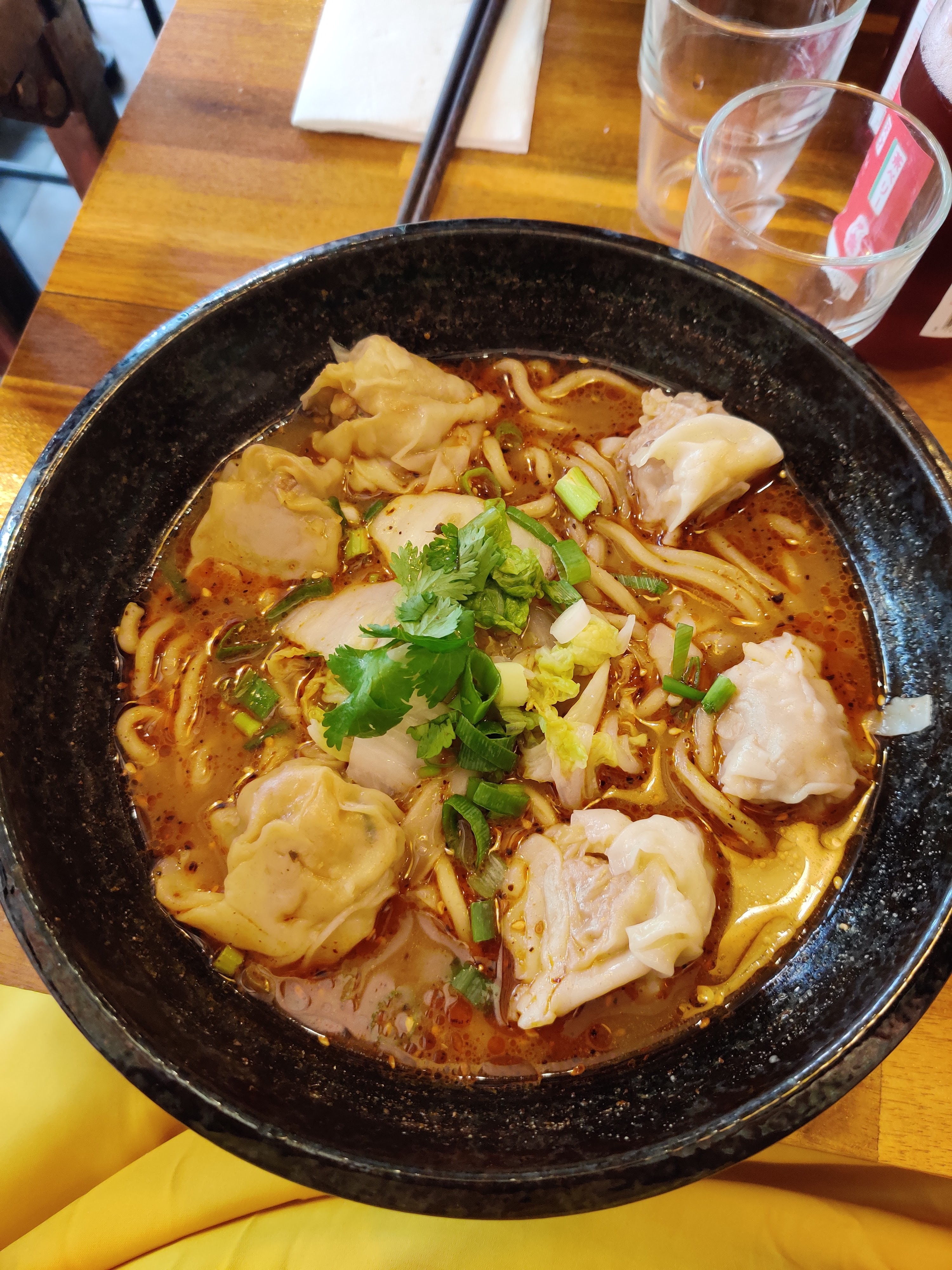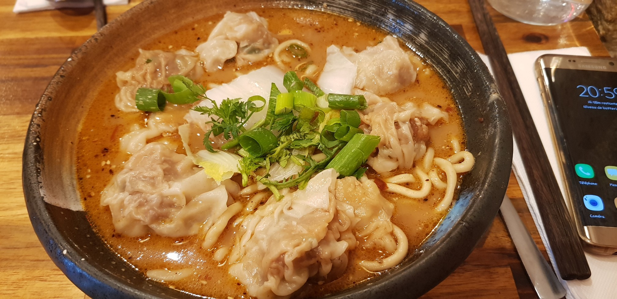Très dépaysant ! Les nouilles aux raviolis étaient succulentes 🍜, d'ailleurs vous pouvez choisir votre niveau de piment (0->6); il y a également deux niveaux supplémentaires pour les plus téméraires et les amateurs de plats pimentés ! 🔥