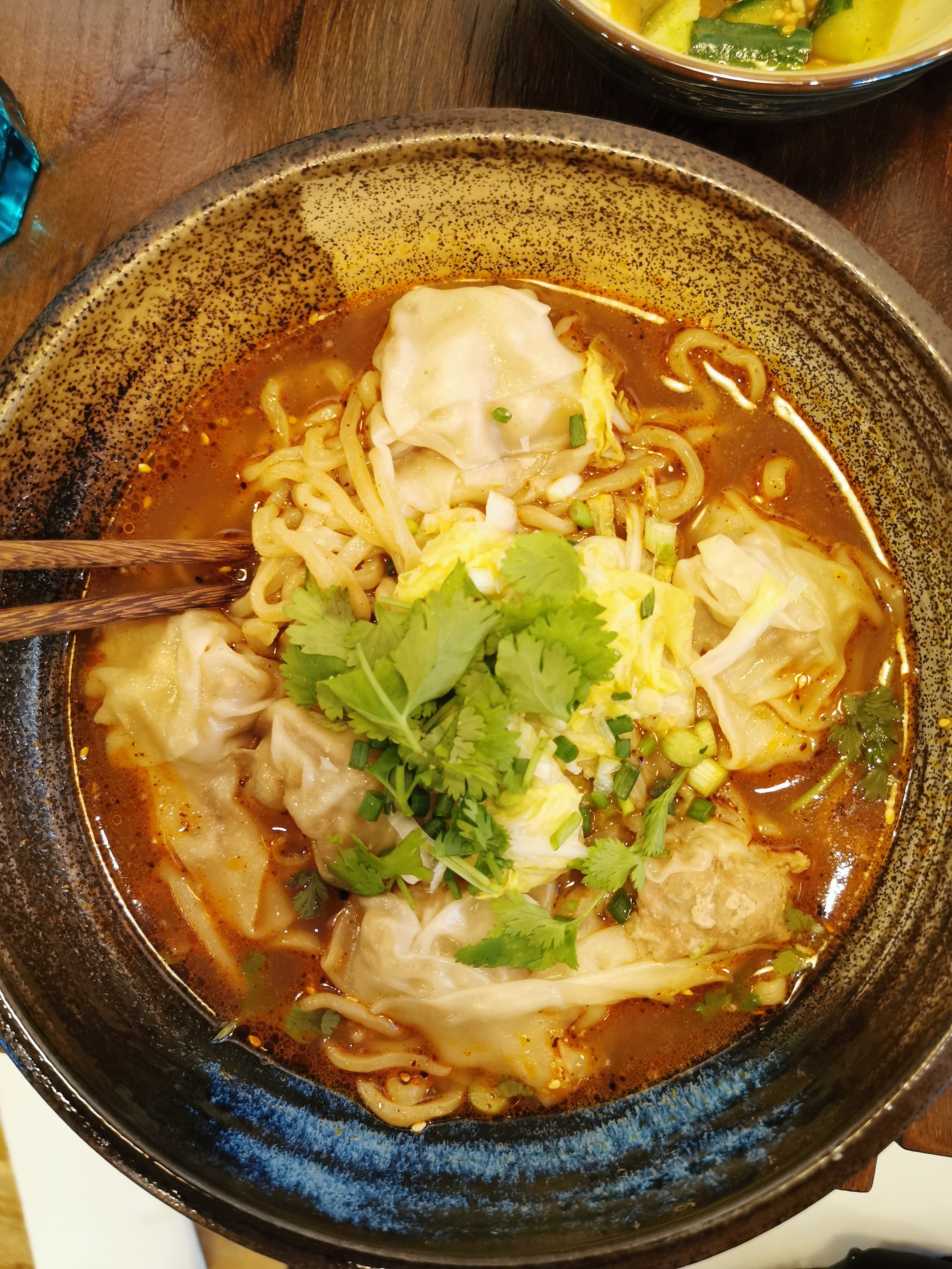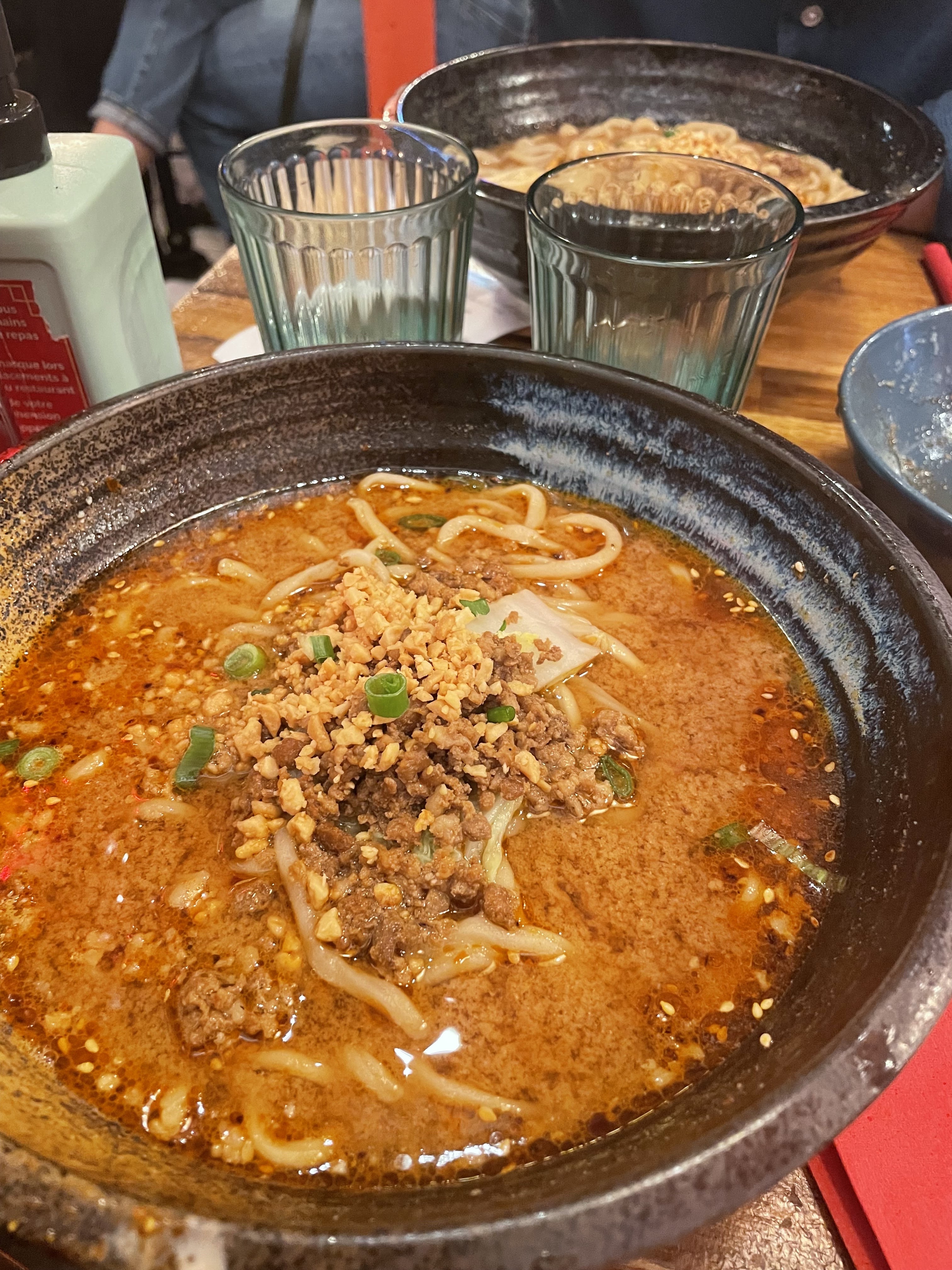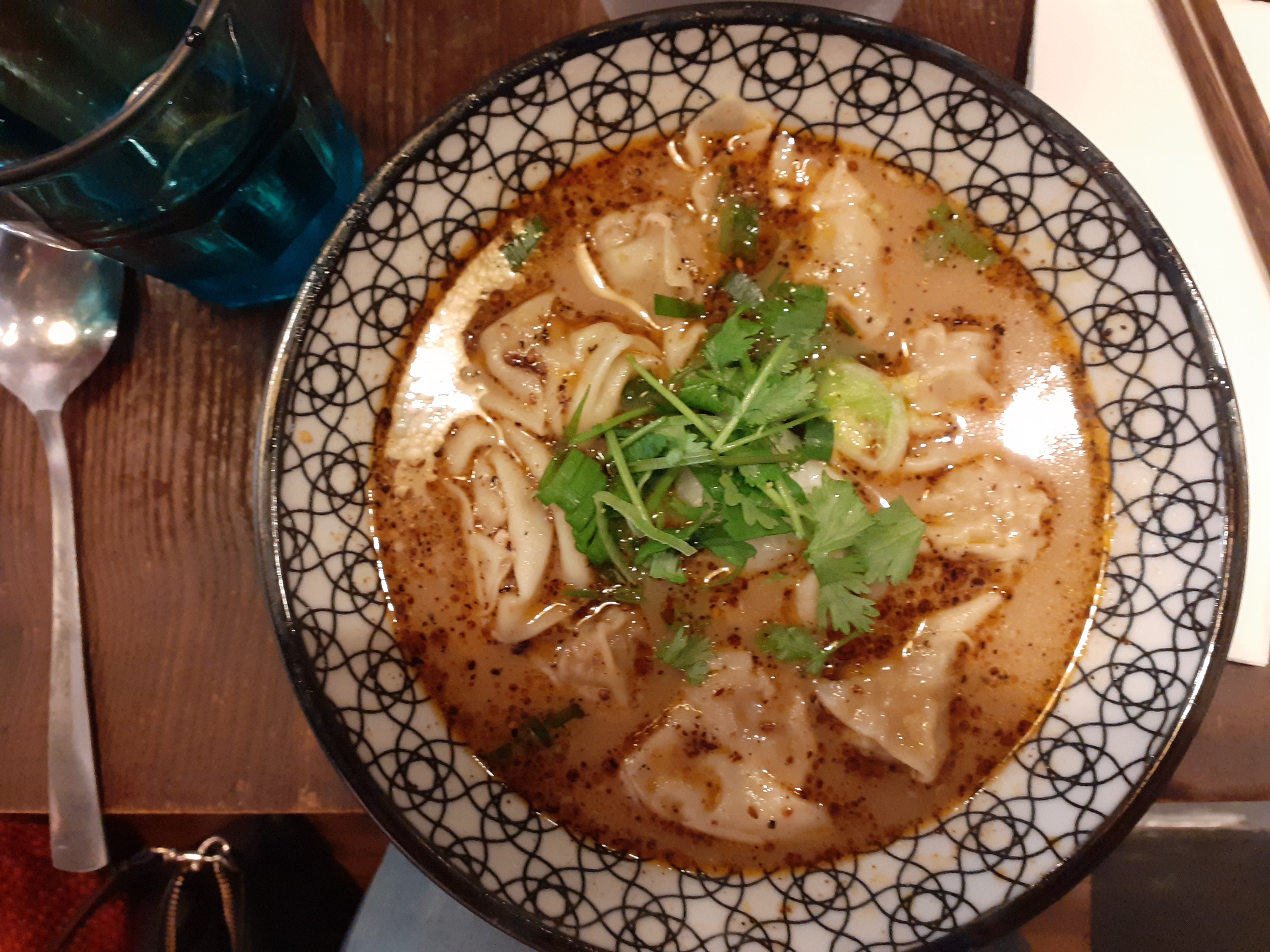 Très dépaysant ! Les nouilles aux raviolis étaient succulentes 🍜, d'ailleurs vous pouvez choisir votre niveau de piment (0->6); il y a également deux niveaux supplémentaires pour les plus téméraires et les amateurs de plats pimentés ! 🔥