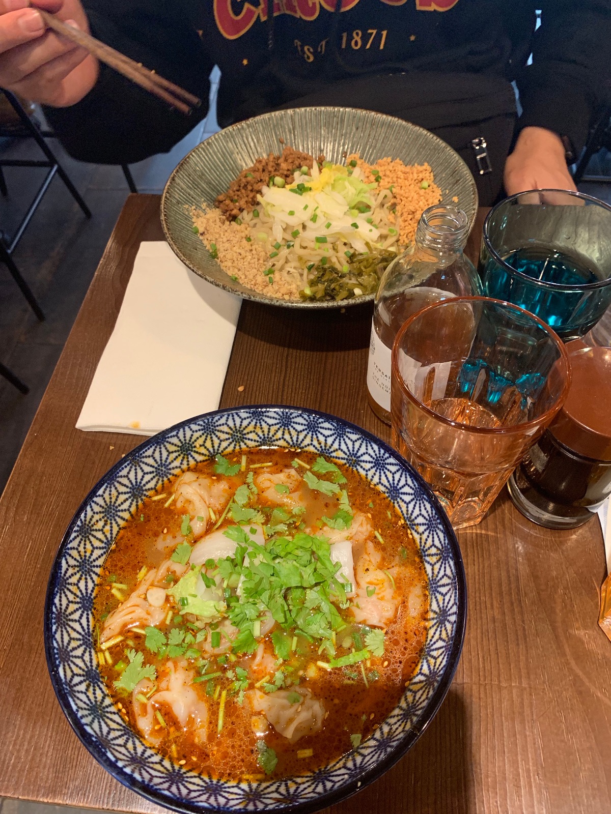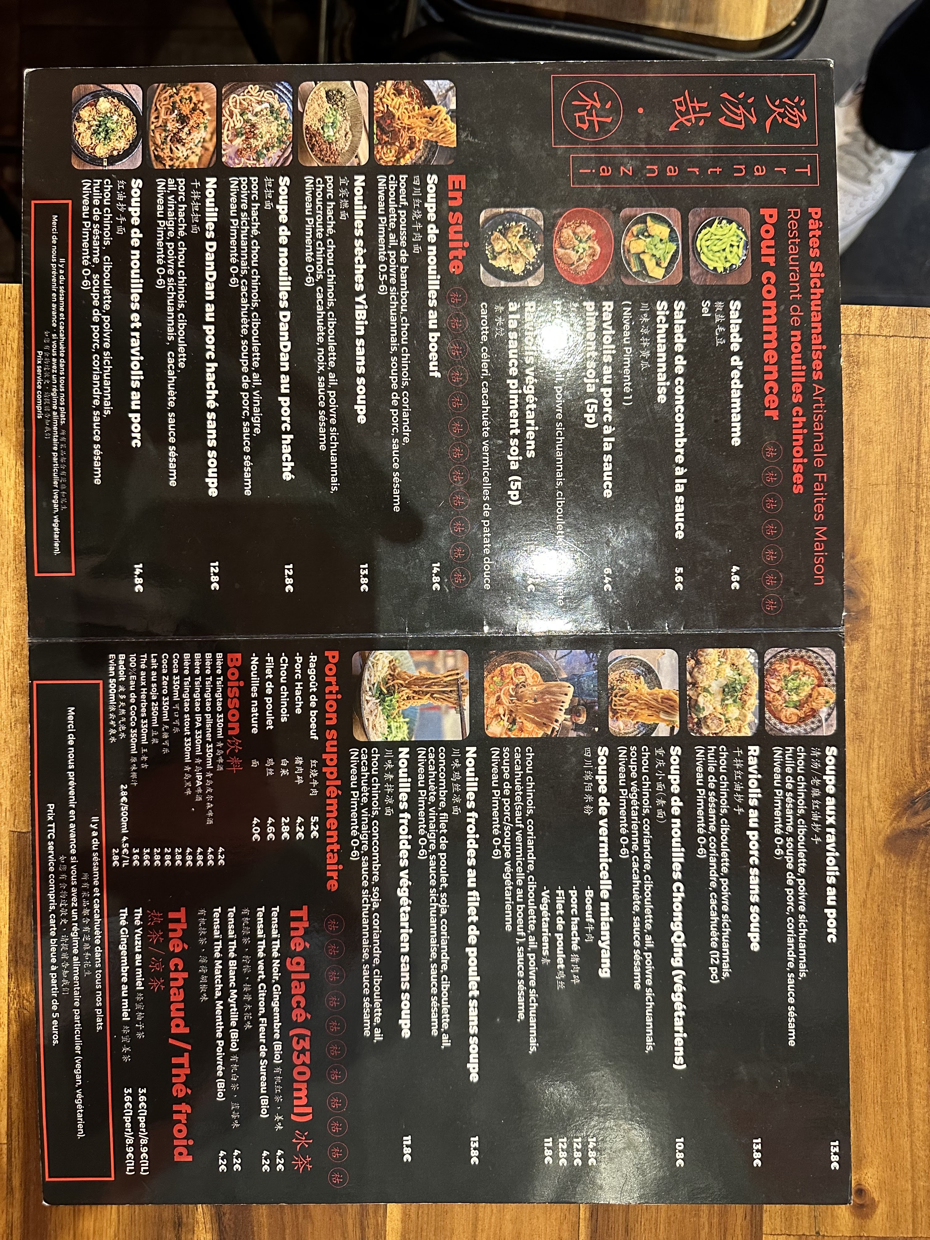 Les bonnes nouilles et ravioli bien épicés comme on les aime (ou pas, vous pouvez adapter le niveau de 0 à 6, attention il y a une vraie marche entre le niveau 3 et 4), le service rapide et sympathique, plein d'options végétariennes, bref un très bon petit restaurant ! Cet emplacement est beaucoup plus petit que celui près des Halles, la déco reste sympa et chaleureuse mais le peu de tables fait qu'il peut y avoir pas mal d'attente le soir si vous ne venez pas dîner tôt, et c'est assez bruyant. Mais la nourriture est vraiment bonne et le rapport qualité prix est très bon donc ça vaut le coup !