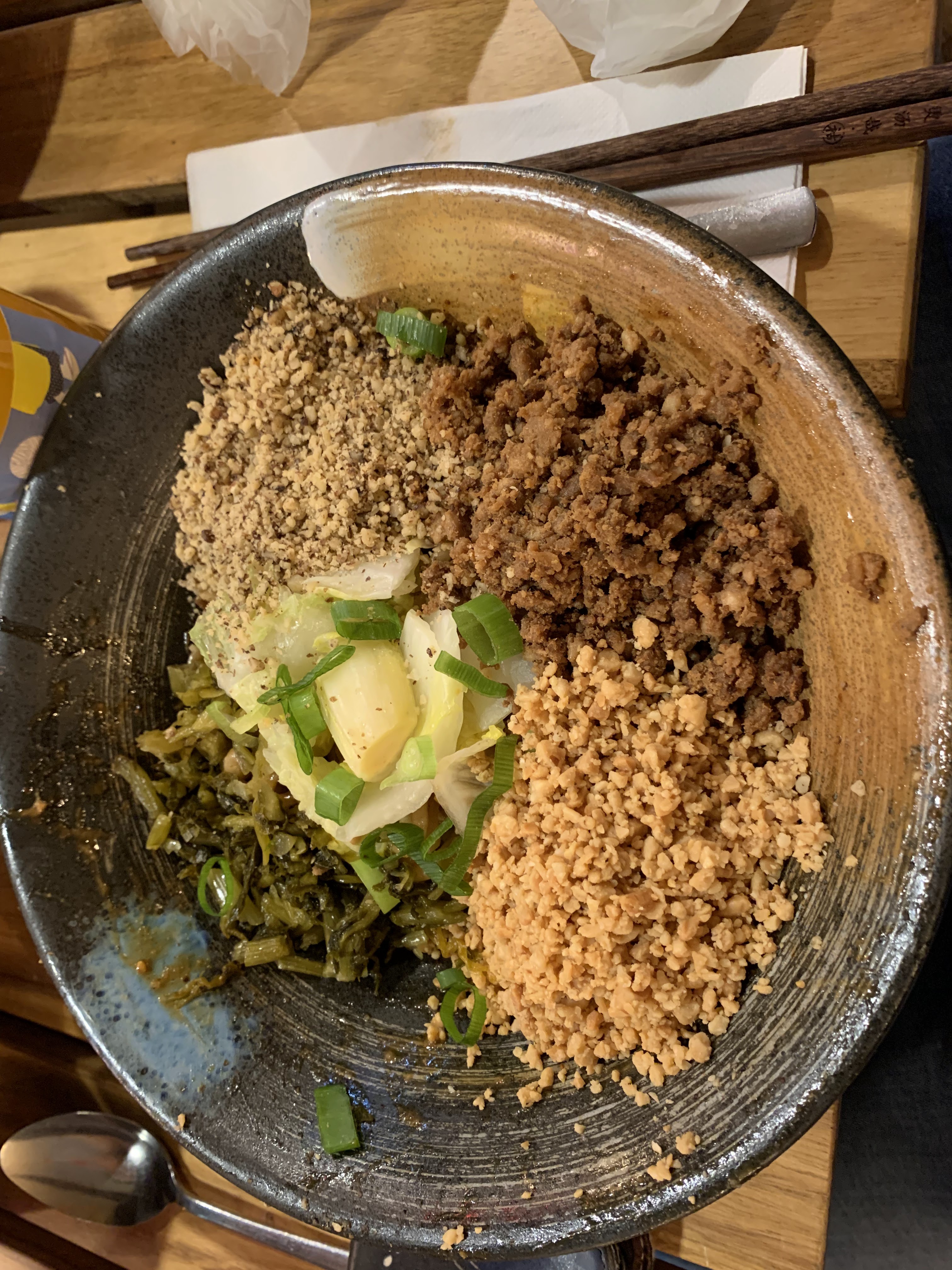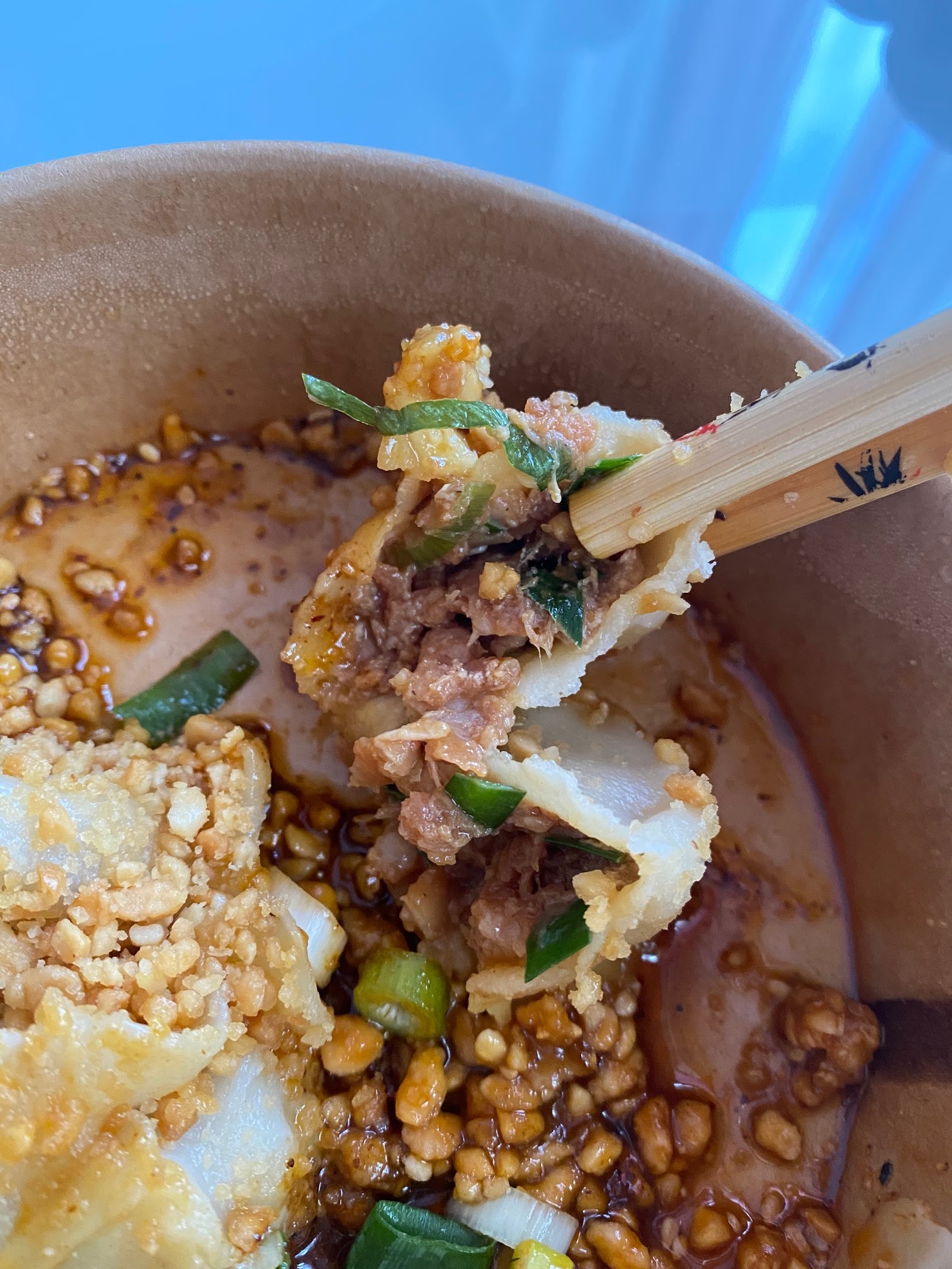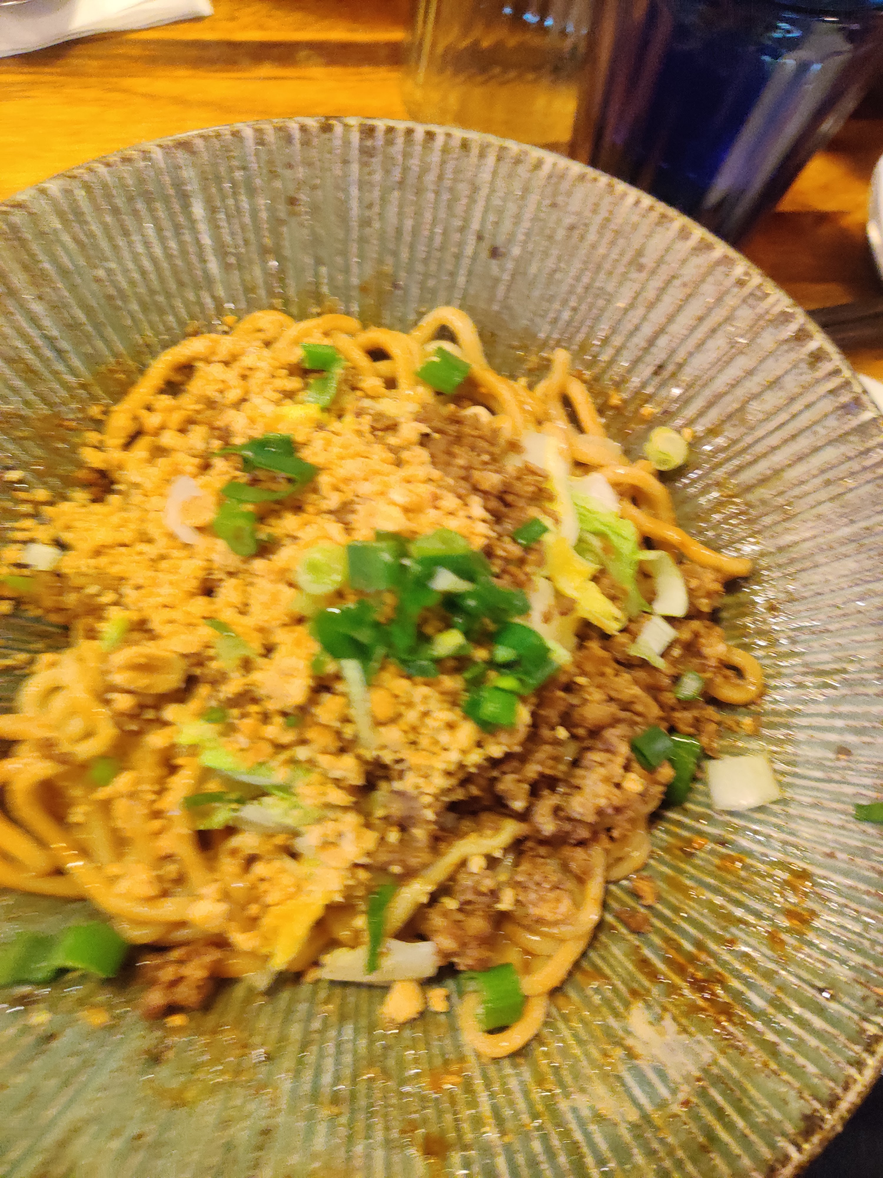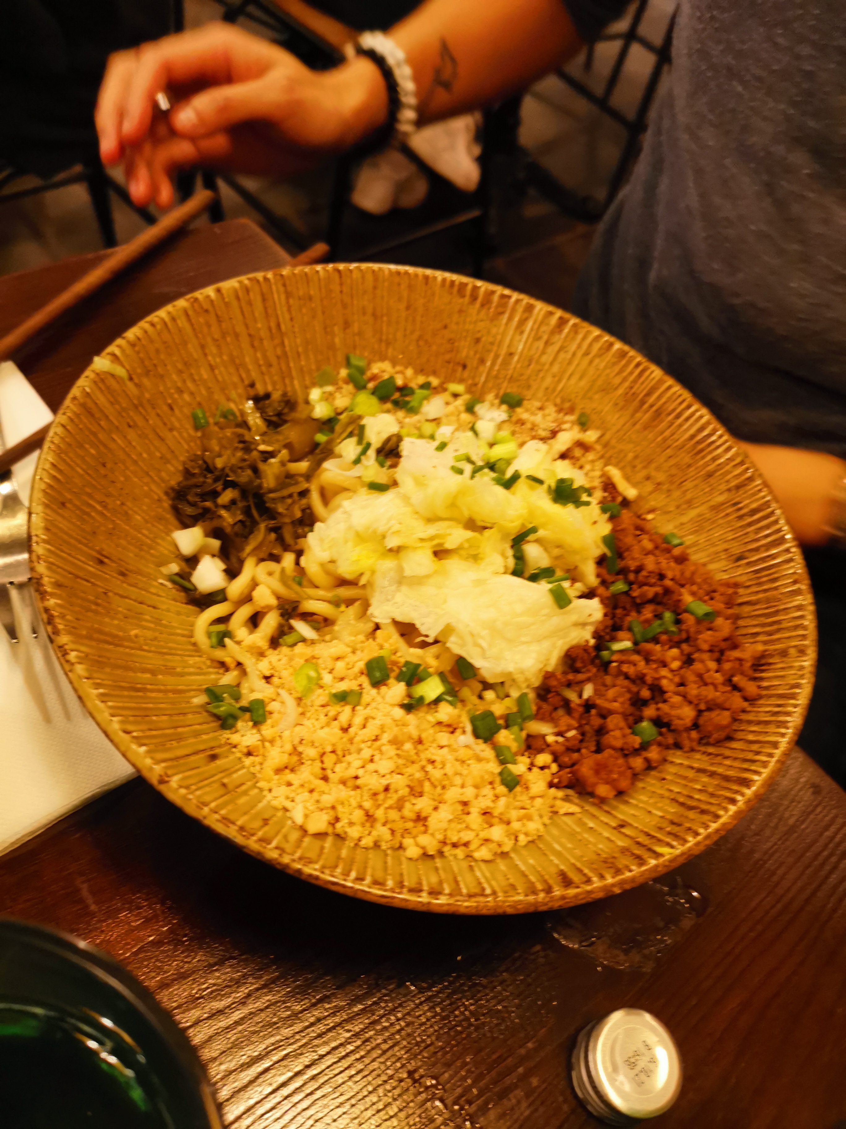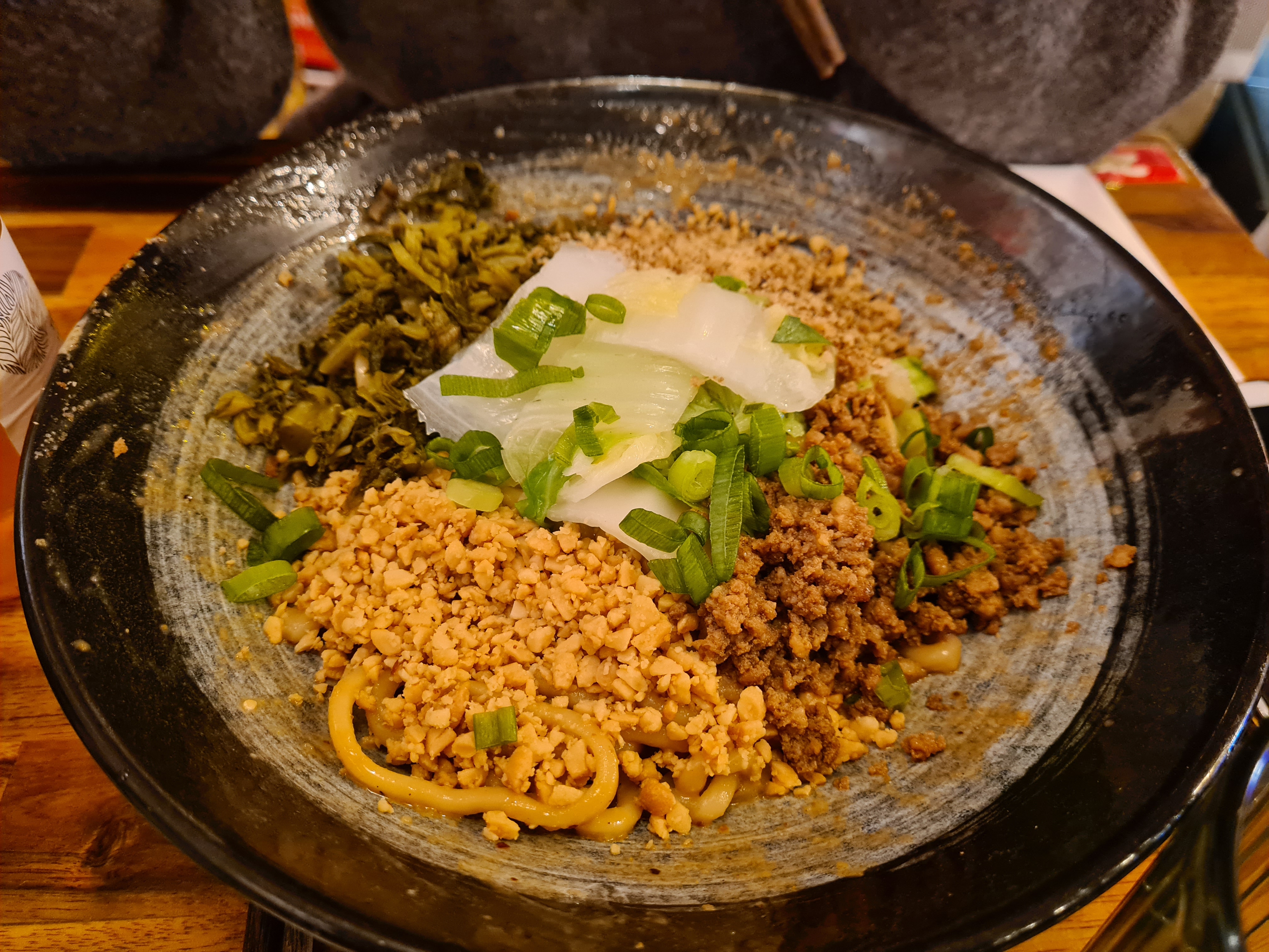 Les nouilles au porc haché sans soupe sont absolument excellentes ! N’étant pas très habituée à manger pimenté j’ai choisi le niveau de piment 1 (qui peut aller jusqu’à 6 pour les plus courageux) et c’était vraiment parfait ! Je n’ai jamais goûté des nouilles aussi savoureuses et j’y retournerai c’est certain !