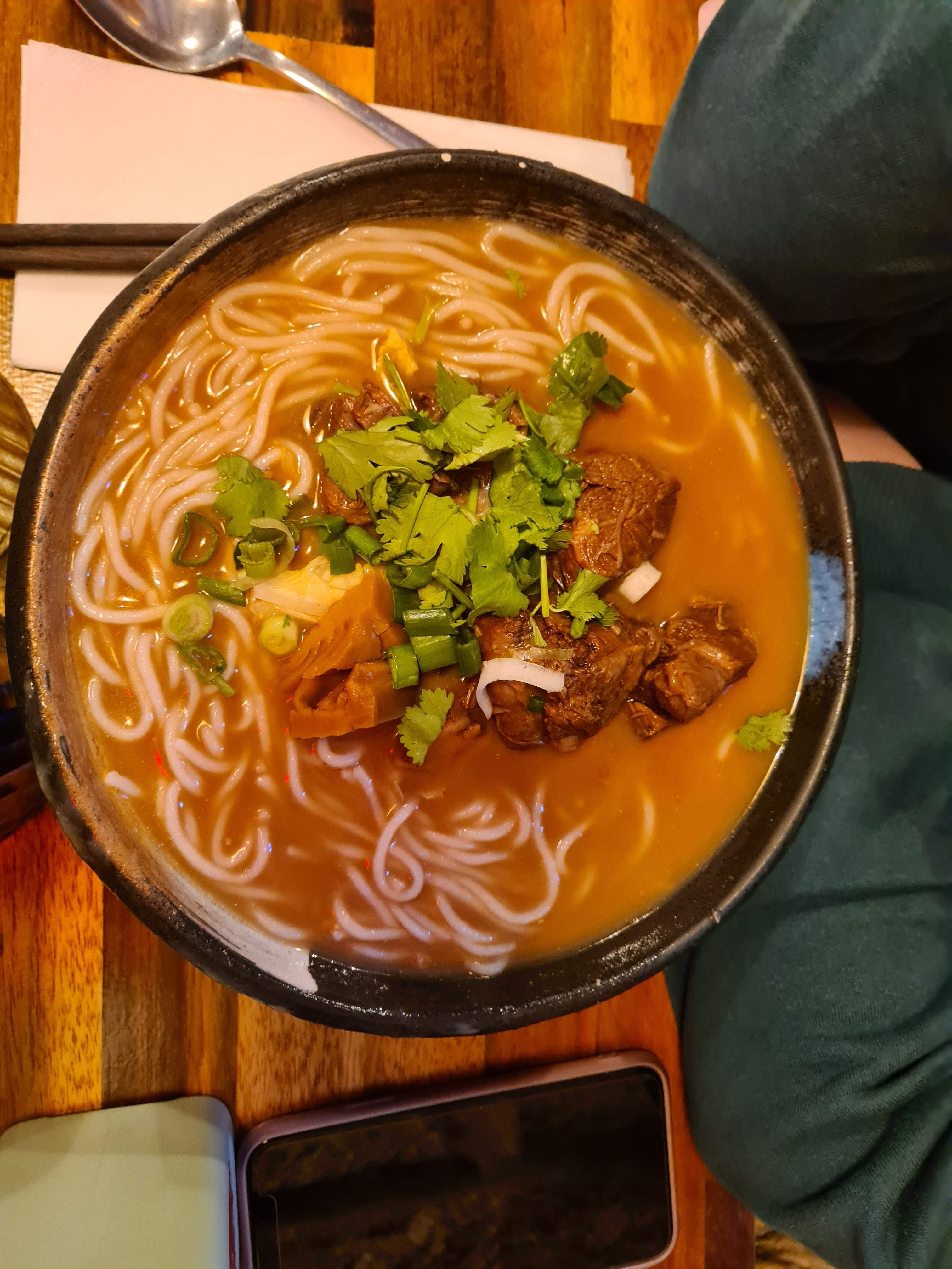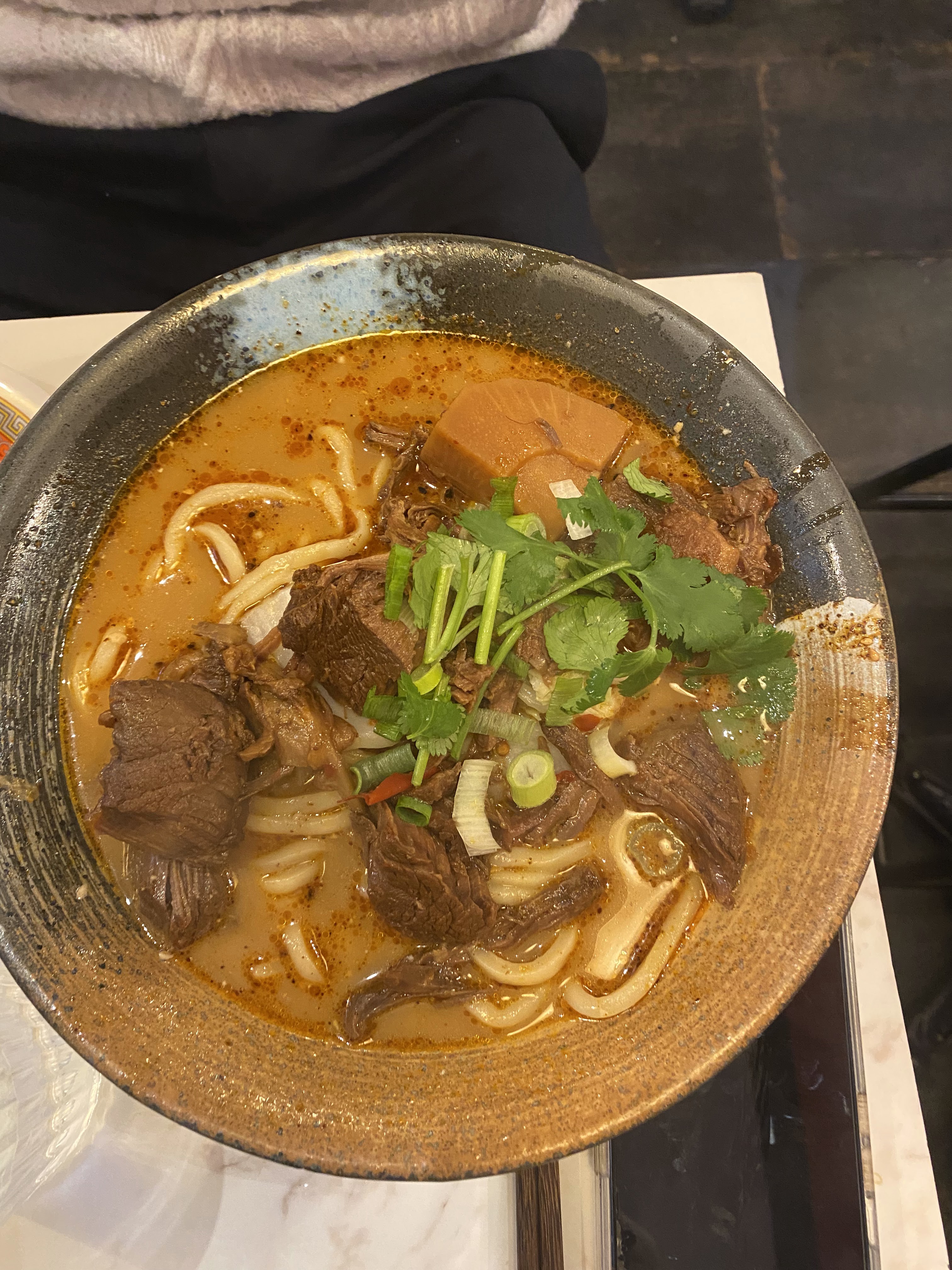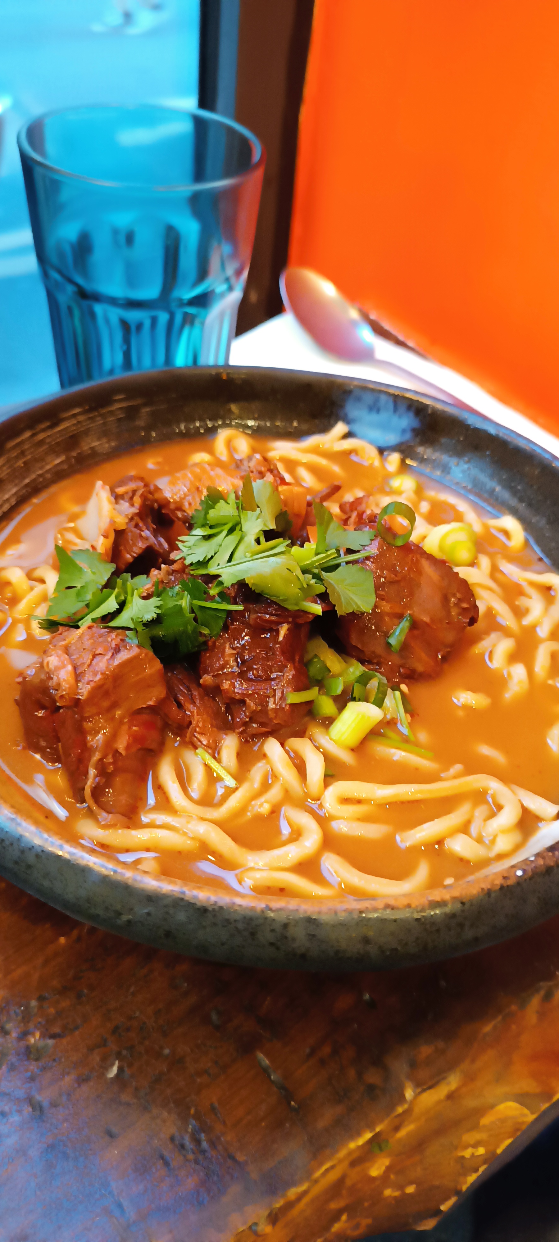 Très belle découverte !! On voit que ce sont des nouilles faites maison et elle sont excellentes ! Le bouillon est plein de saveurs et la viande est vraiment bonne. Voyage gustatif garantie !