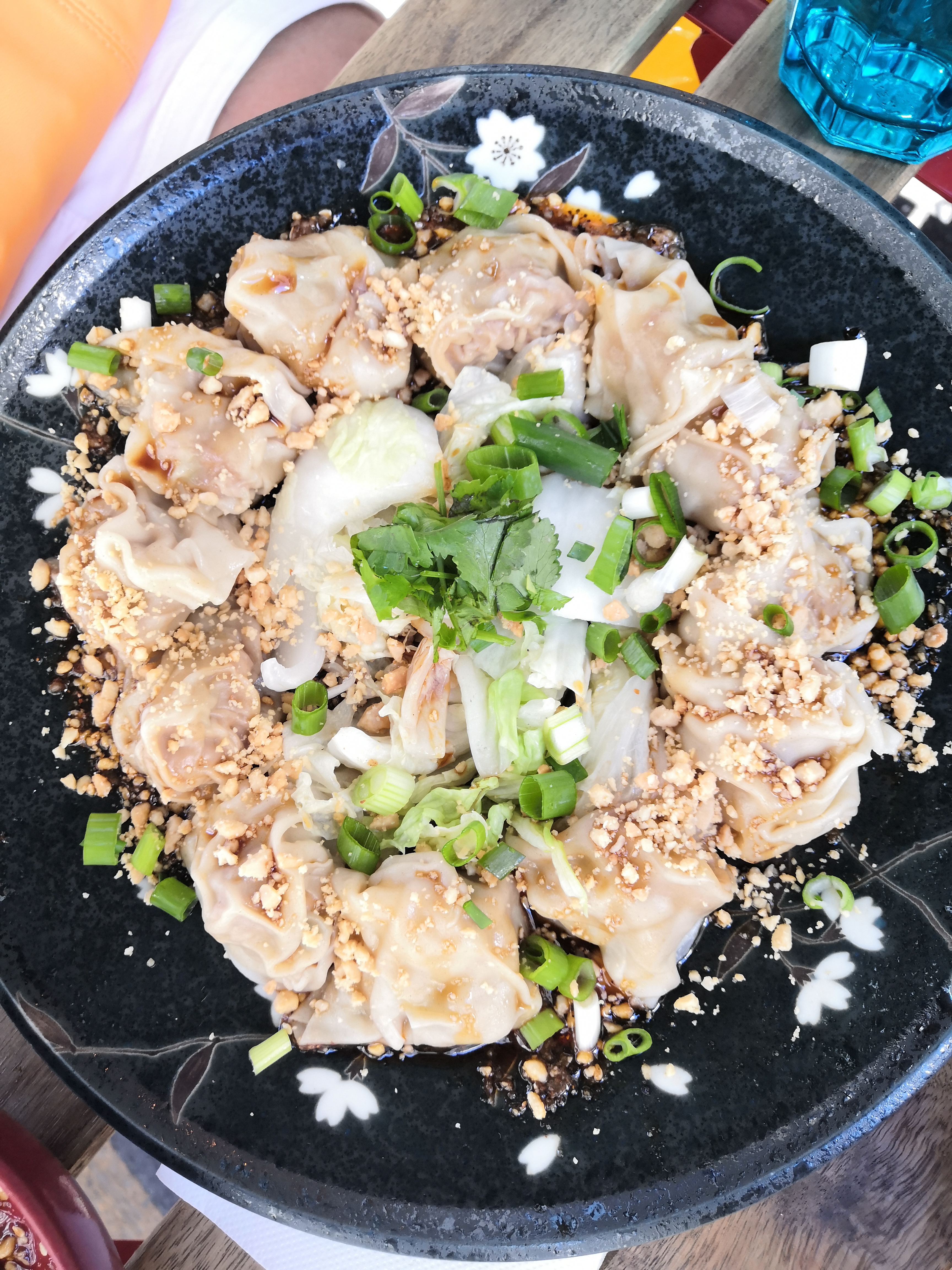Très bonne soupe de vermicelles mianyang mais moins fan des nouilles dandan sans soupe que j'ai trouvé très pâteuses et sucrées, vous me direz que c'est normal car c'est à base de sauce sésame et de cacahuètes. Les raviolis au porc étaient sans plus, je trouvais qu'ils manquaient de saveur, beaucoup de cacahuètes mais pas assez de sauce. Le personnel a offert un zongzi au datte rouge à chaque table pour la fête des bateaux-dragons, nous avons donc fini le repas sur cette bonne petite touche sucrée.