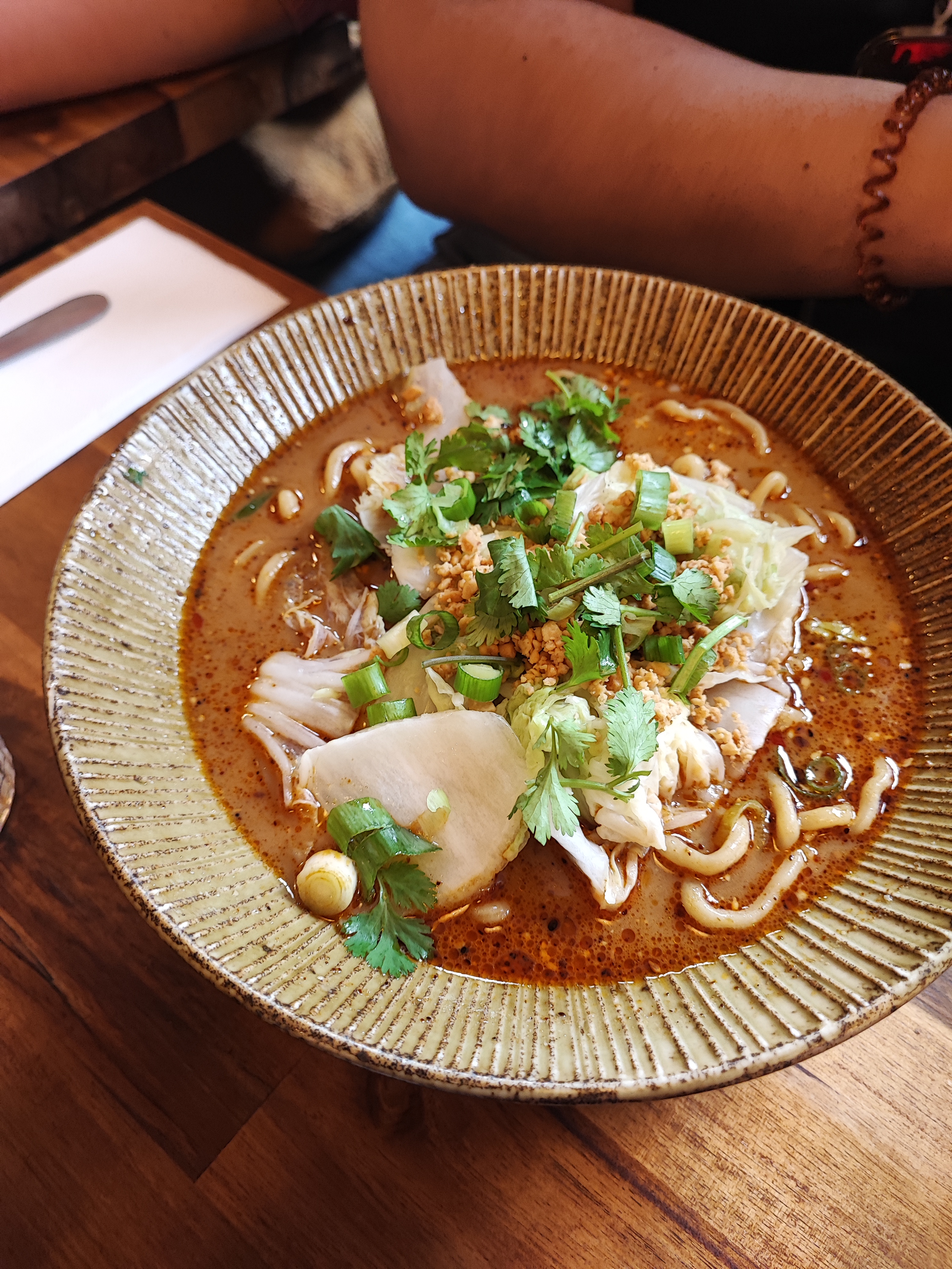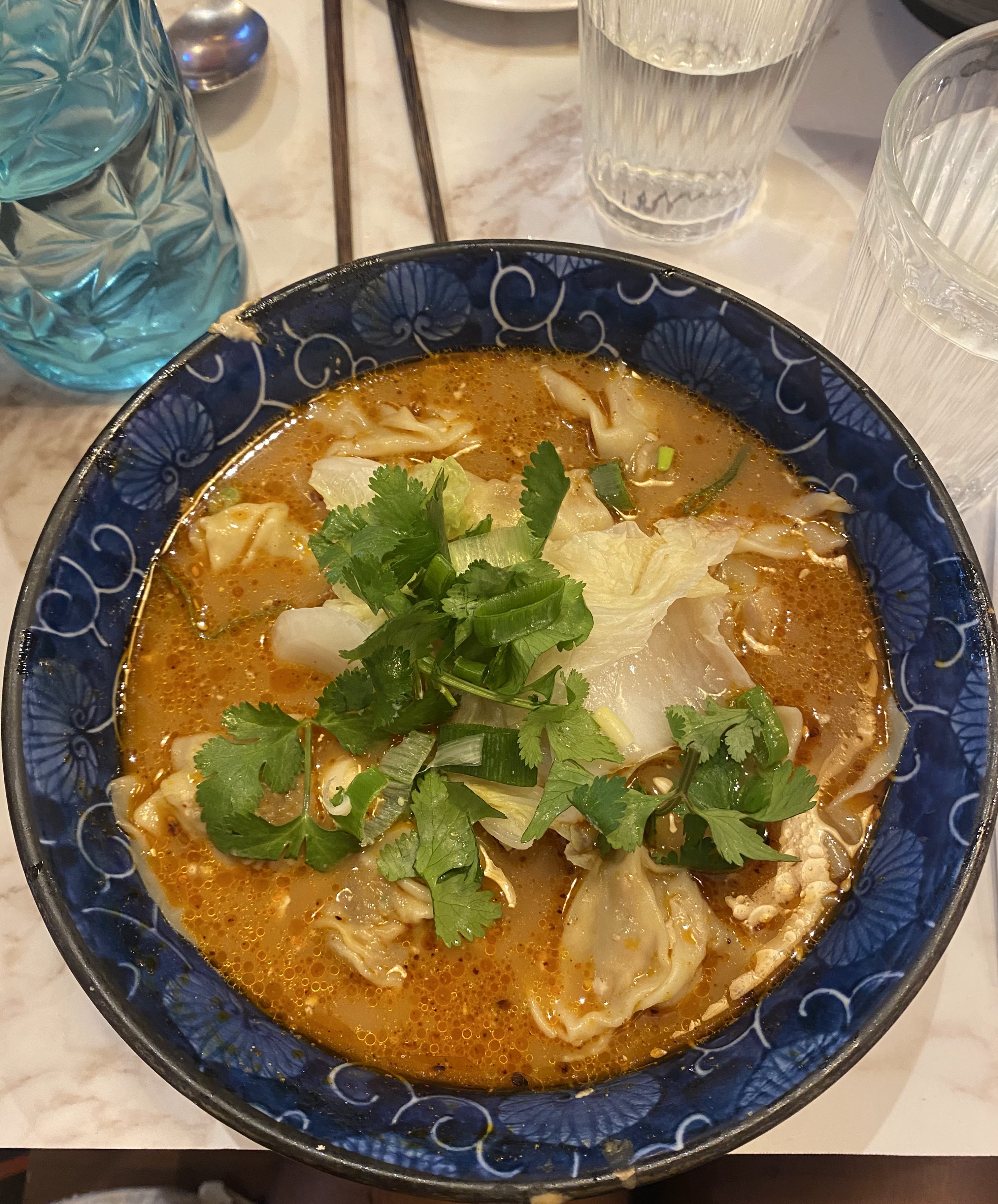 Restaurant asiatique proposant des plats à base de nouilles ou raviolis épicés. J’ai été un peu déçue par la carte qui propose beaucoup de plats au porc ou bœuf et très peu de poulet ou de version veggie (Il n’y a rien avec du tofu). Mais je me suis régalée avec la soupe de nouilles végétariennes. Les quantités sont généreuses et il ressort un côté familial très authentique.