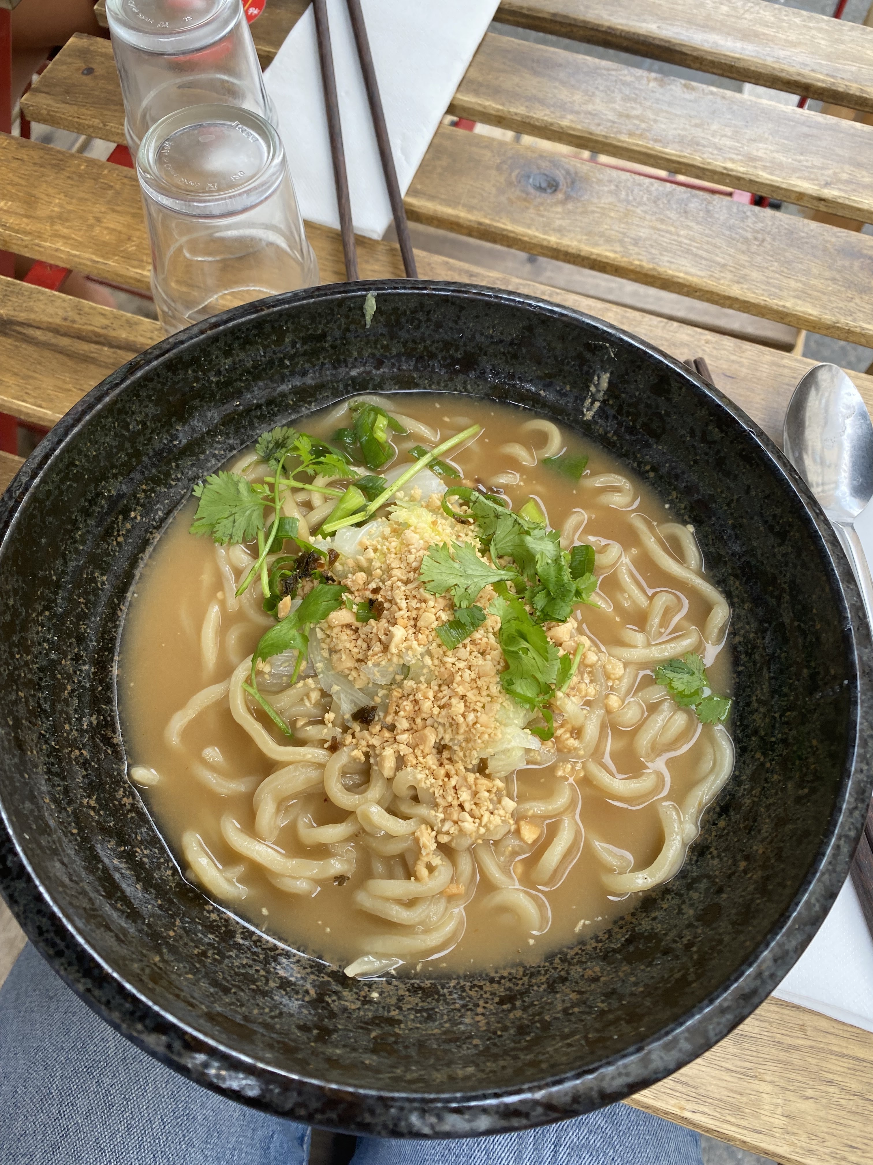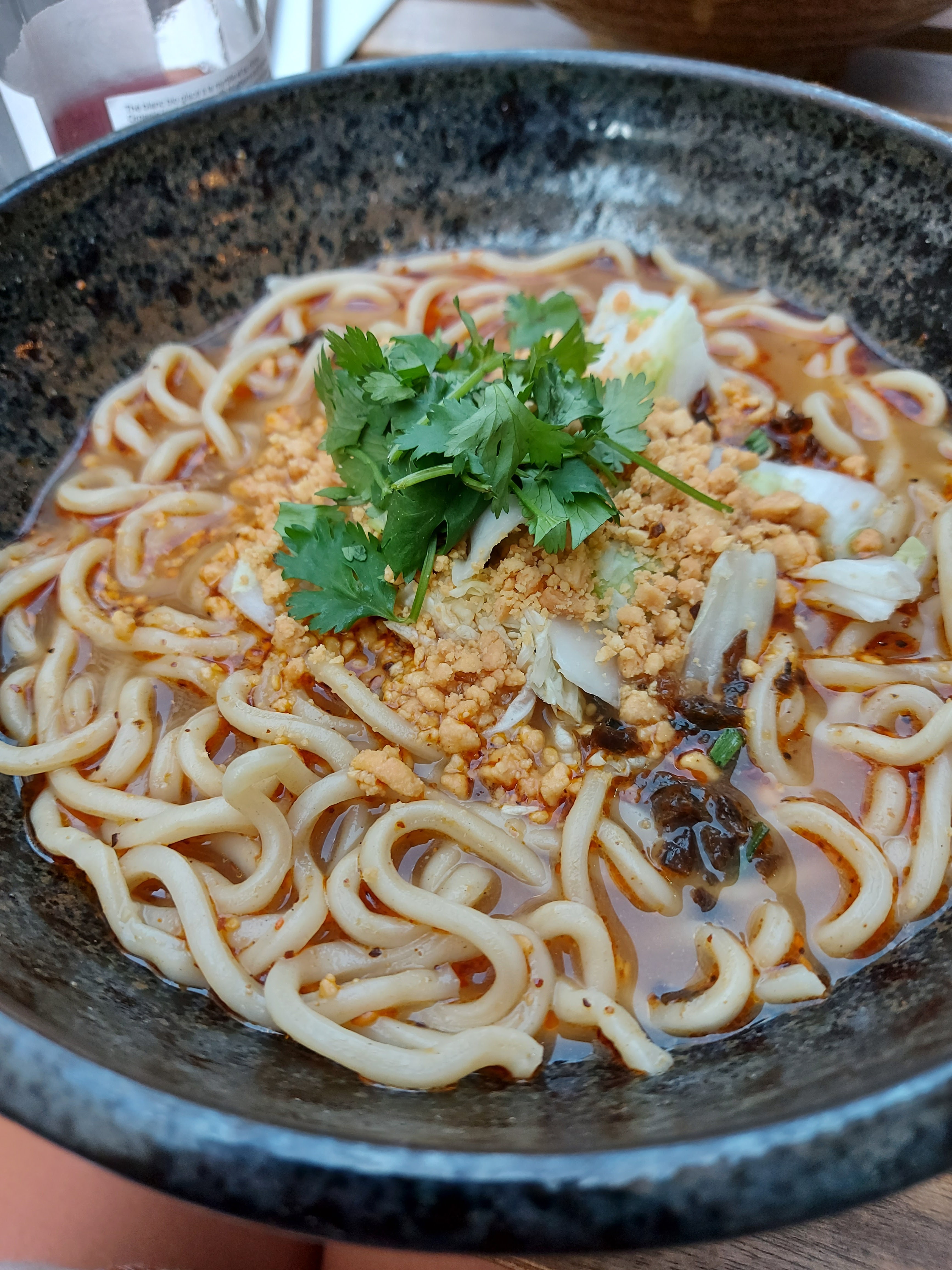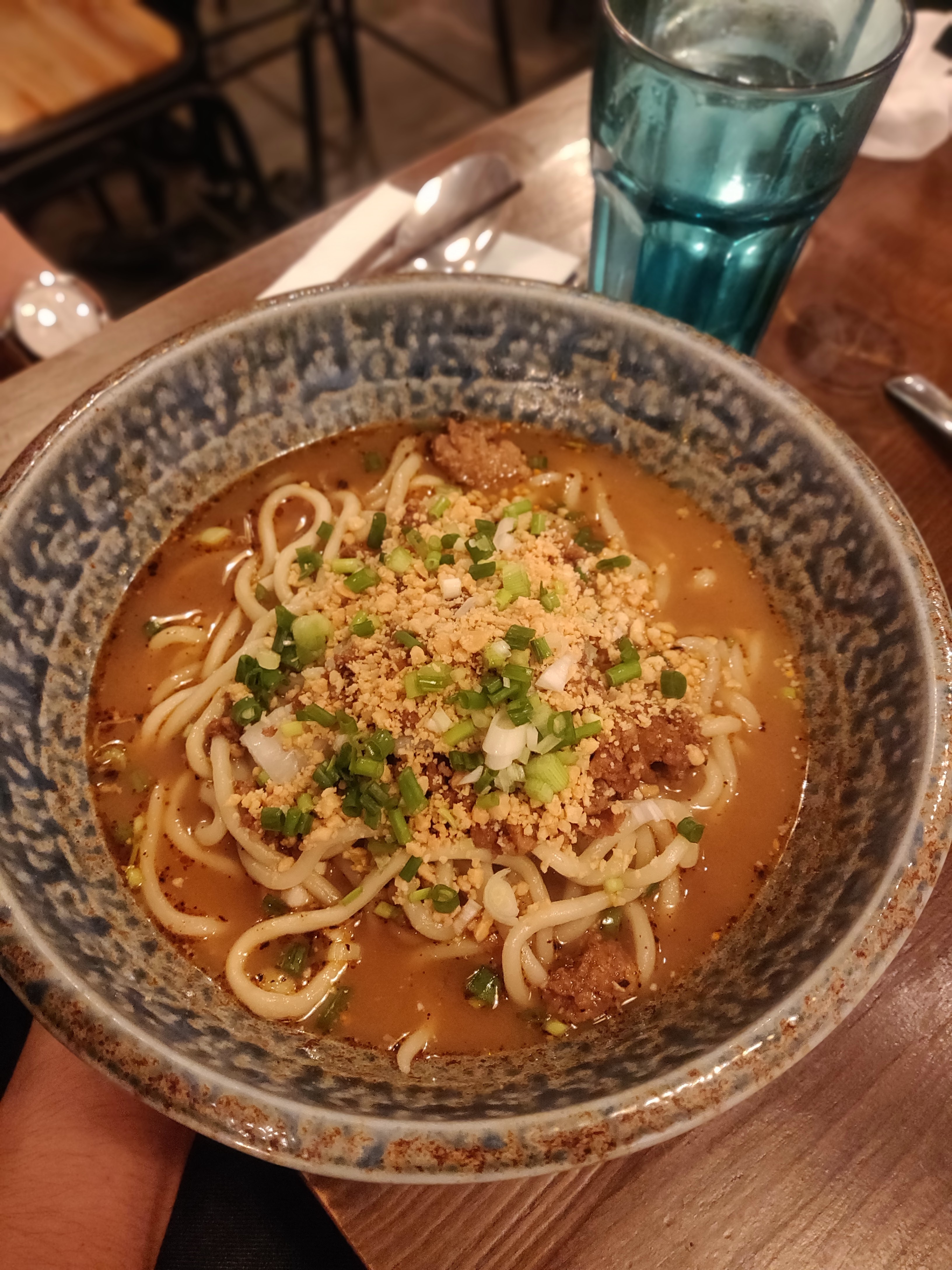 Super bon, avec terrasse agréable (rue très peu passante) et très bon rapport qualité/prix ! J’ai pris les nouilles Dan Dan au porc sauté et c’était délicieux 😋