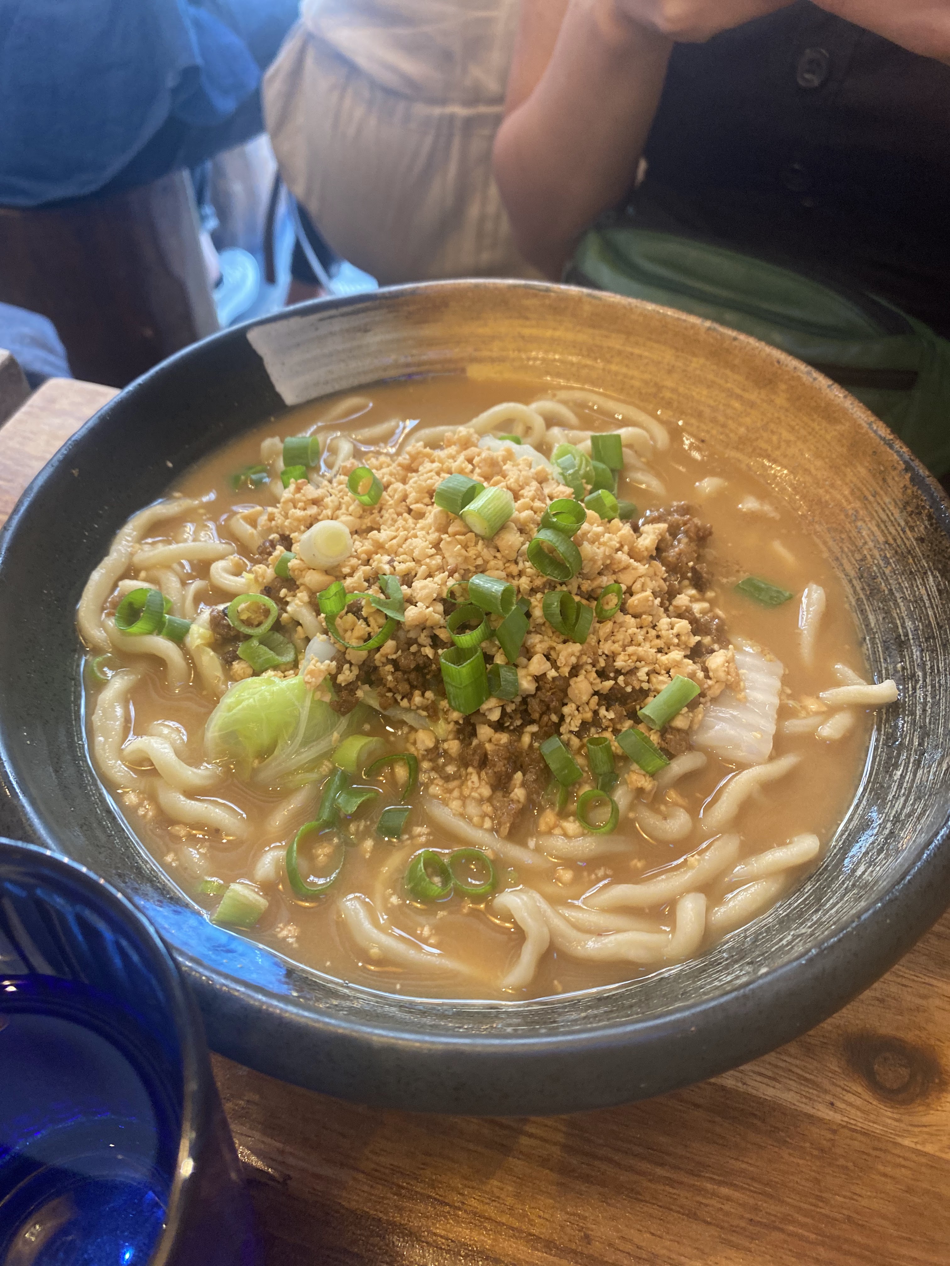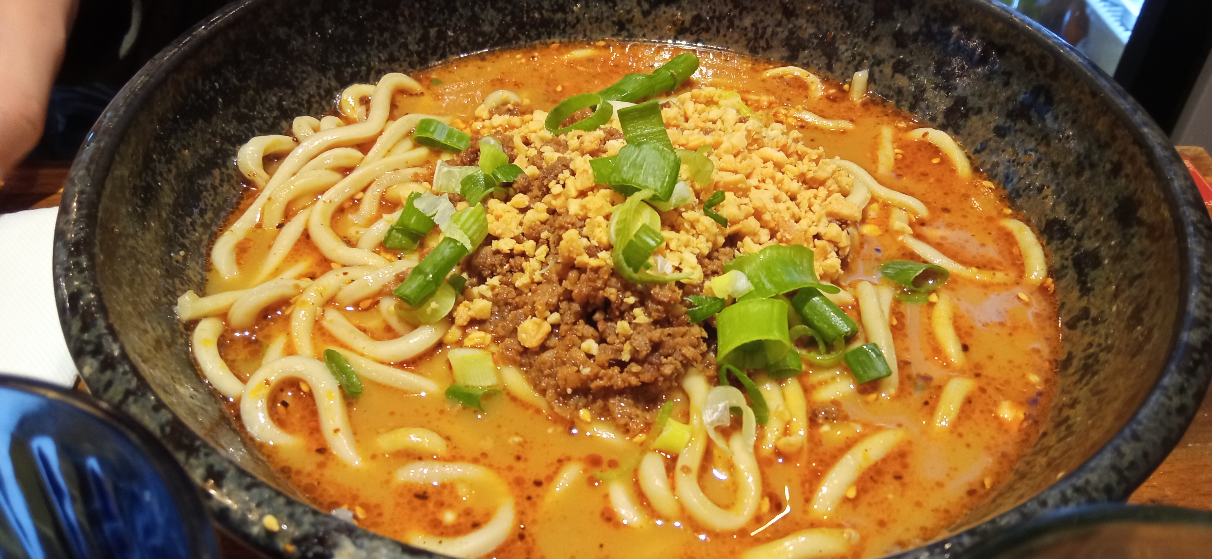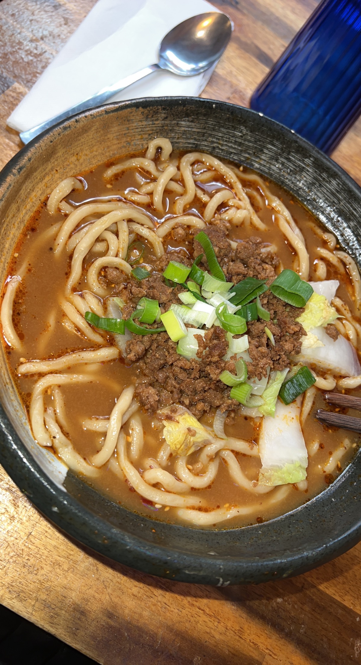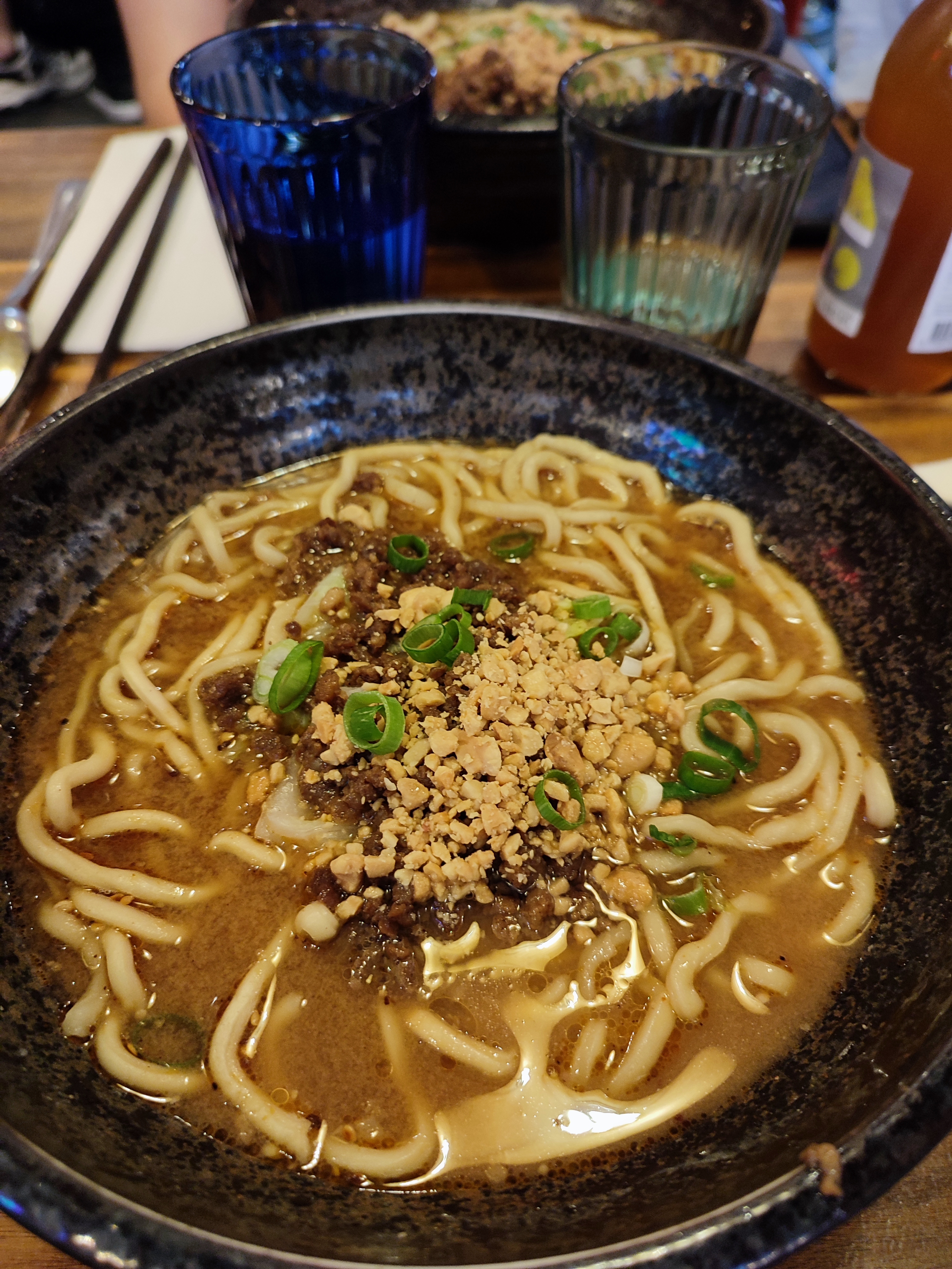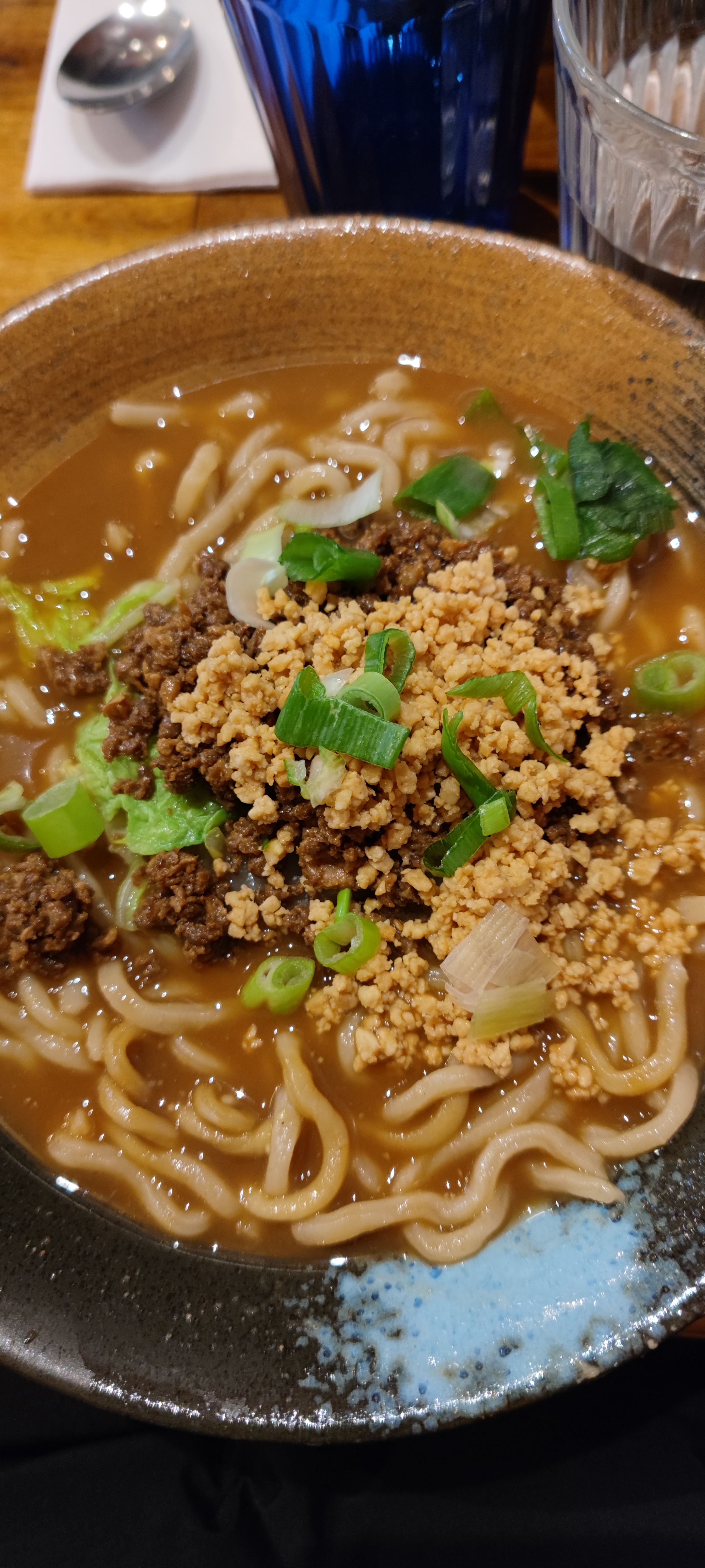Très bon dandan au porc et raviolis !! Une très bonne adresse dans le quartier ! Nous y sommes allés un samedi midi, c’était bondé mais nous n’avons pas attendu trop longtemps pour manger. Perso j’ai choisi niveau 1 épicé et ça rajoute du goût. Je recommande 👍
