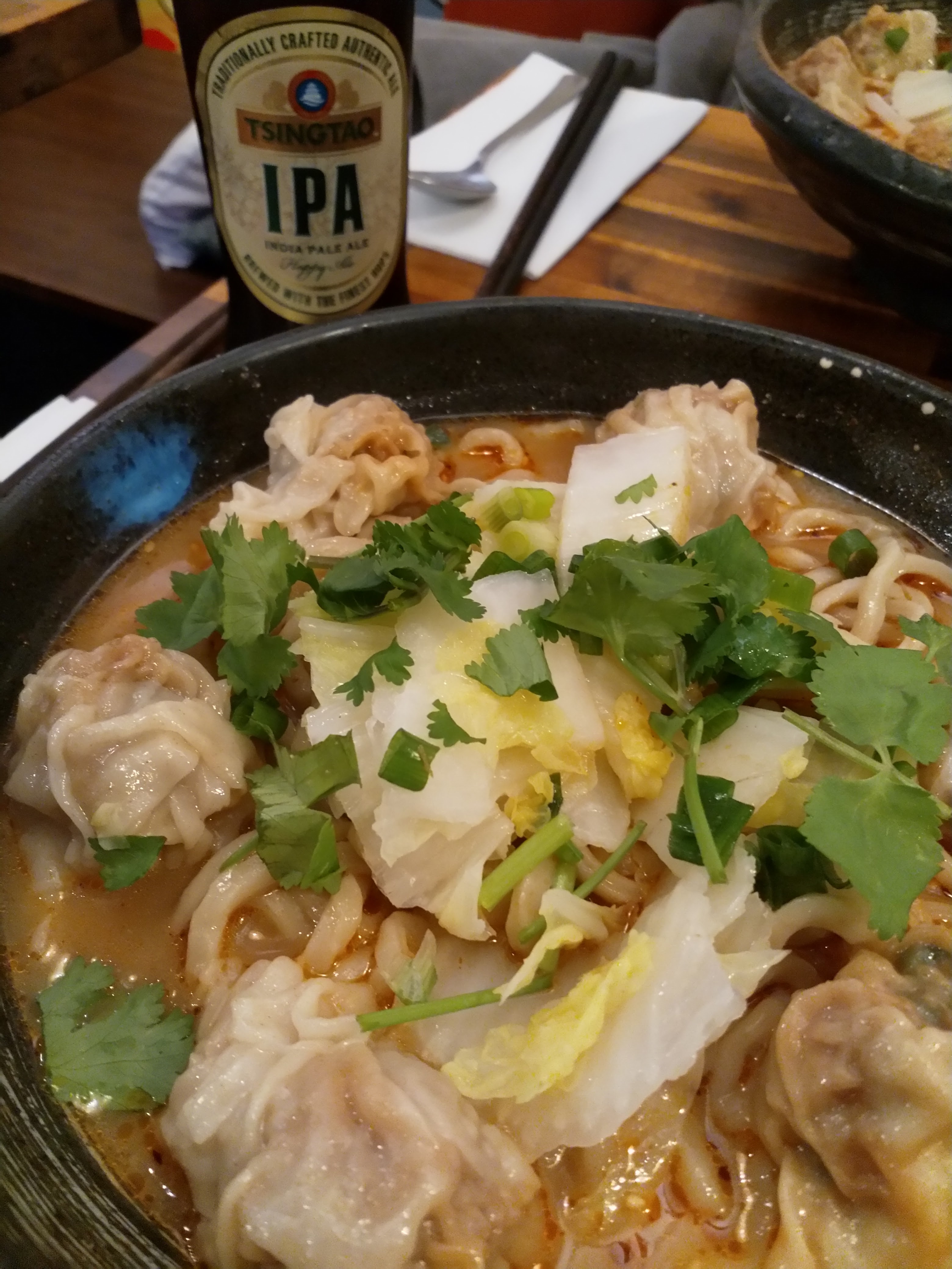 Les serveurs sont très agréables et souriants. La soupe de nouilles aux ravioli au porc, le tout fait maison, est excellente. Quand il fait froid, c’est un pur plaisir. J’aime quand c’est relevé sans être trop piquant, je choisis donc piment 2/6, au top.