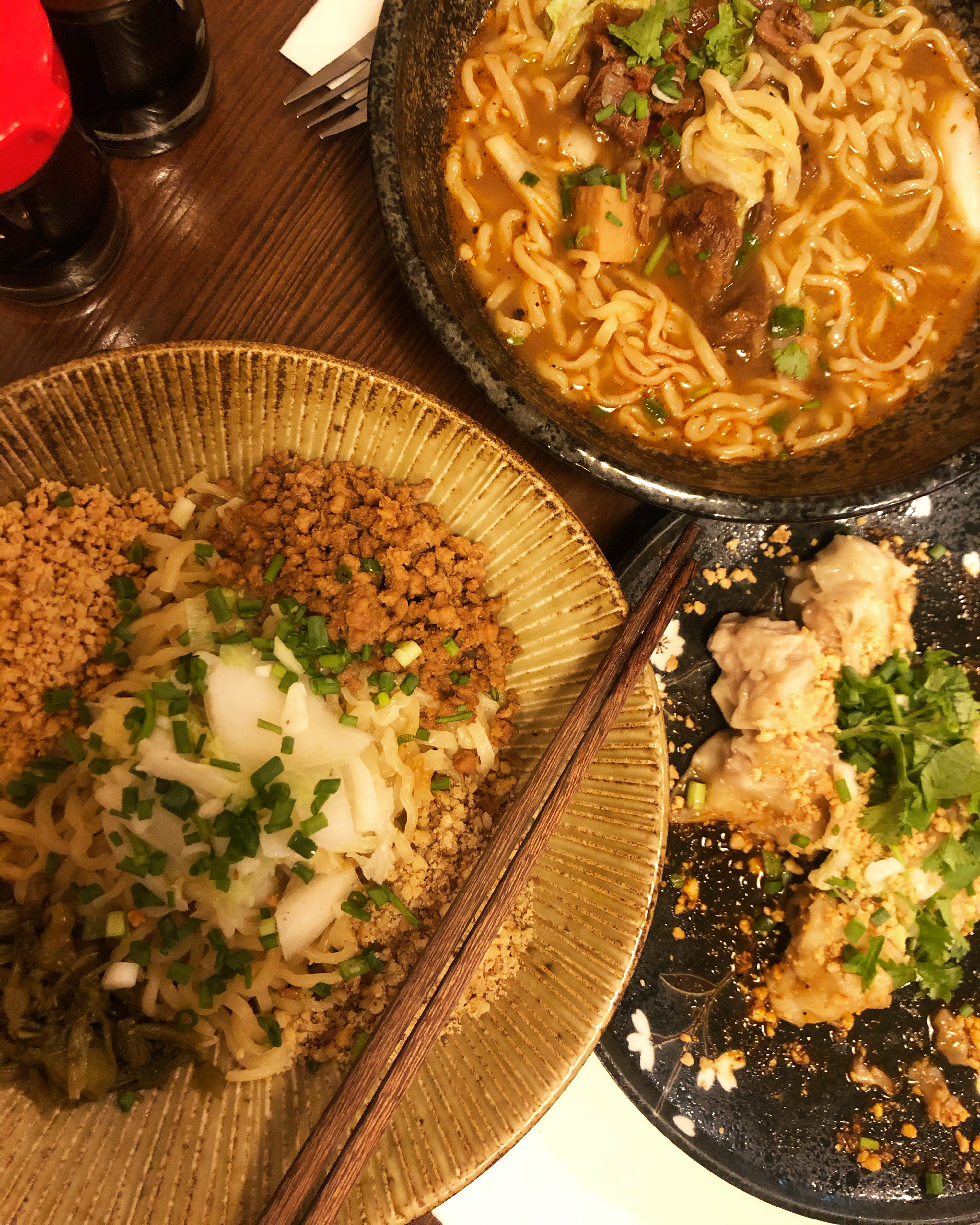Neverrrrr disappoints. Le bouillon des soupes aux nouilles est incroyable (saveur introuvable autre part). Les raviolis crevette et boeuf sont succulentes (j’ai préféré celles à la vapeur que grillées) ainsi que la salade de concombre qui est bizarrement délicieuse.