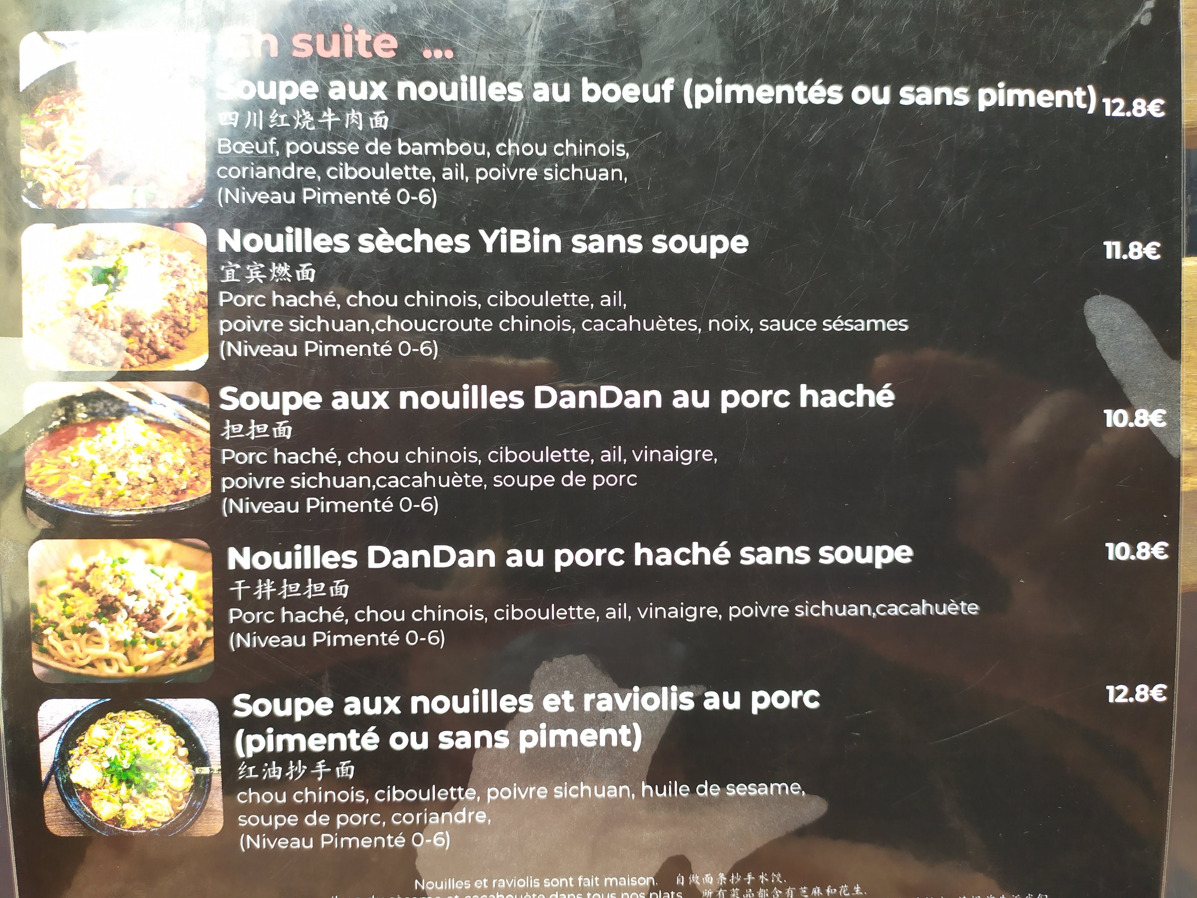 Super bon restaurant ! J'ai pris les nouilles Yibin, level 6. Excellent ! (Dommage pas assez piquant pour moi, à quand des level supérieurs ? 😏). Je reviendrai !