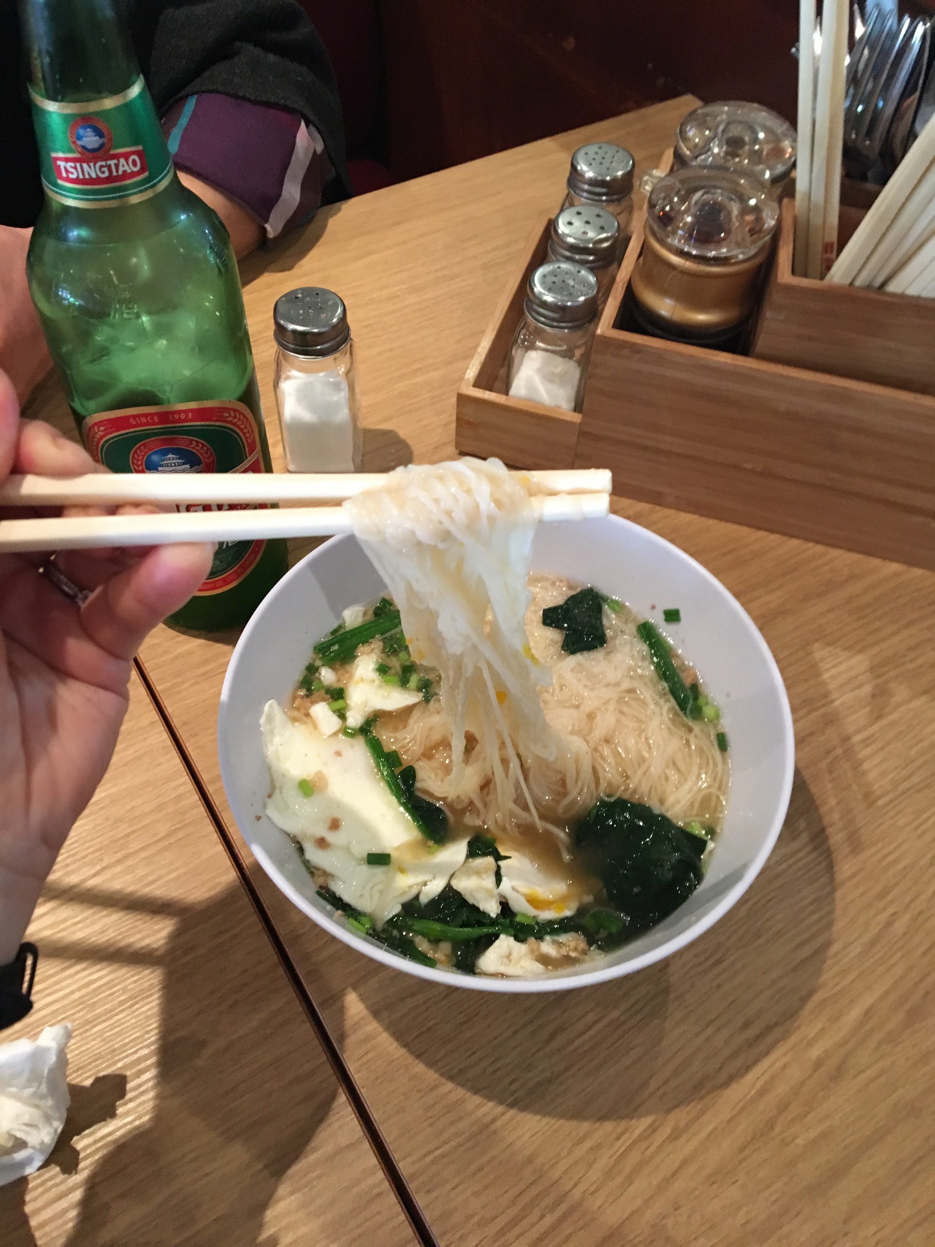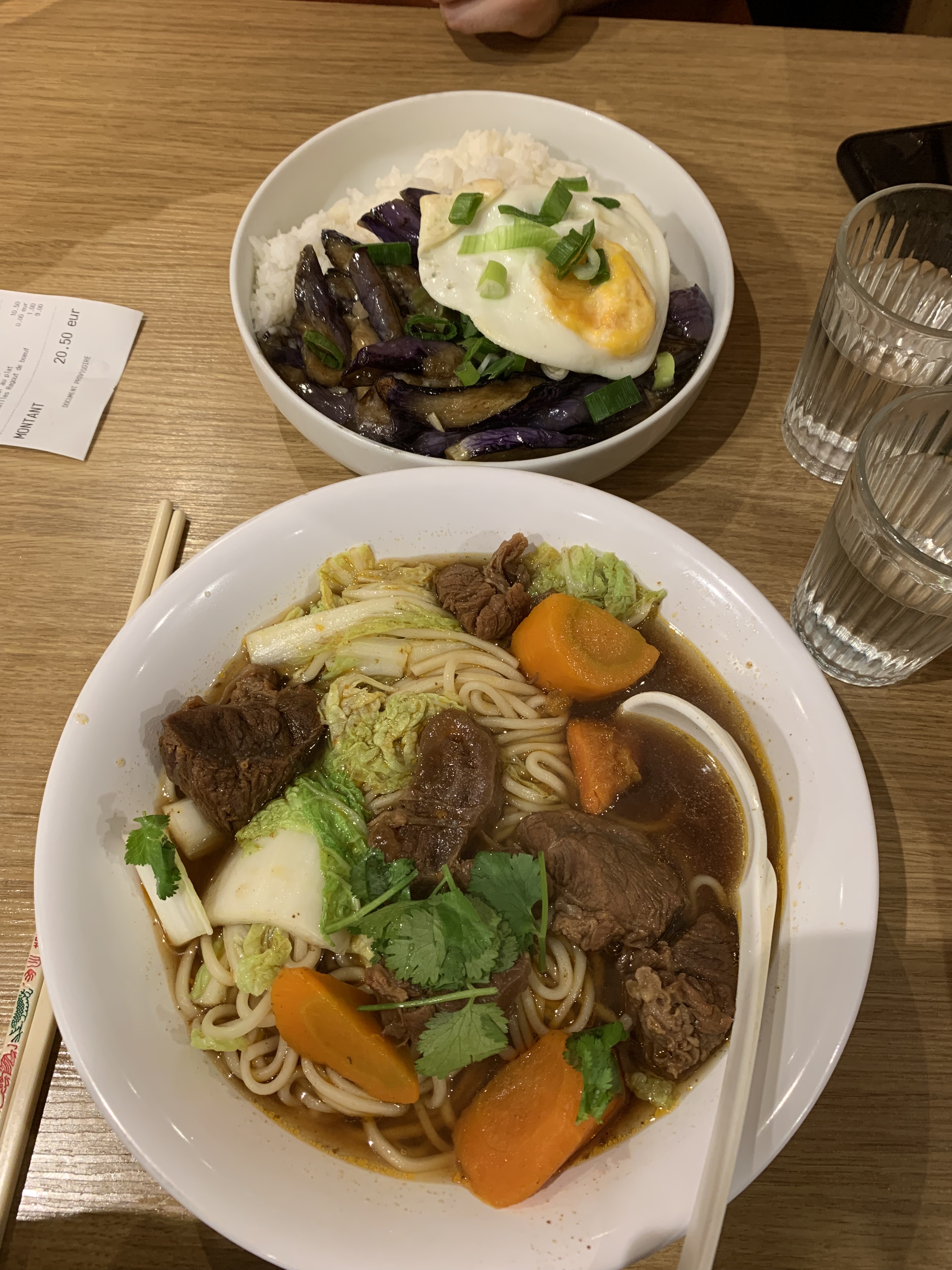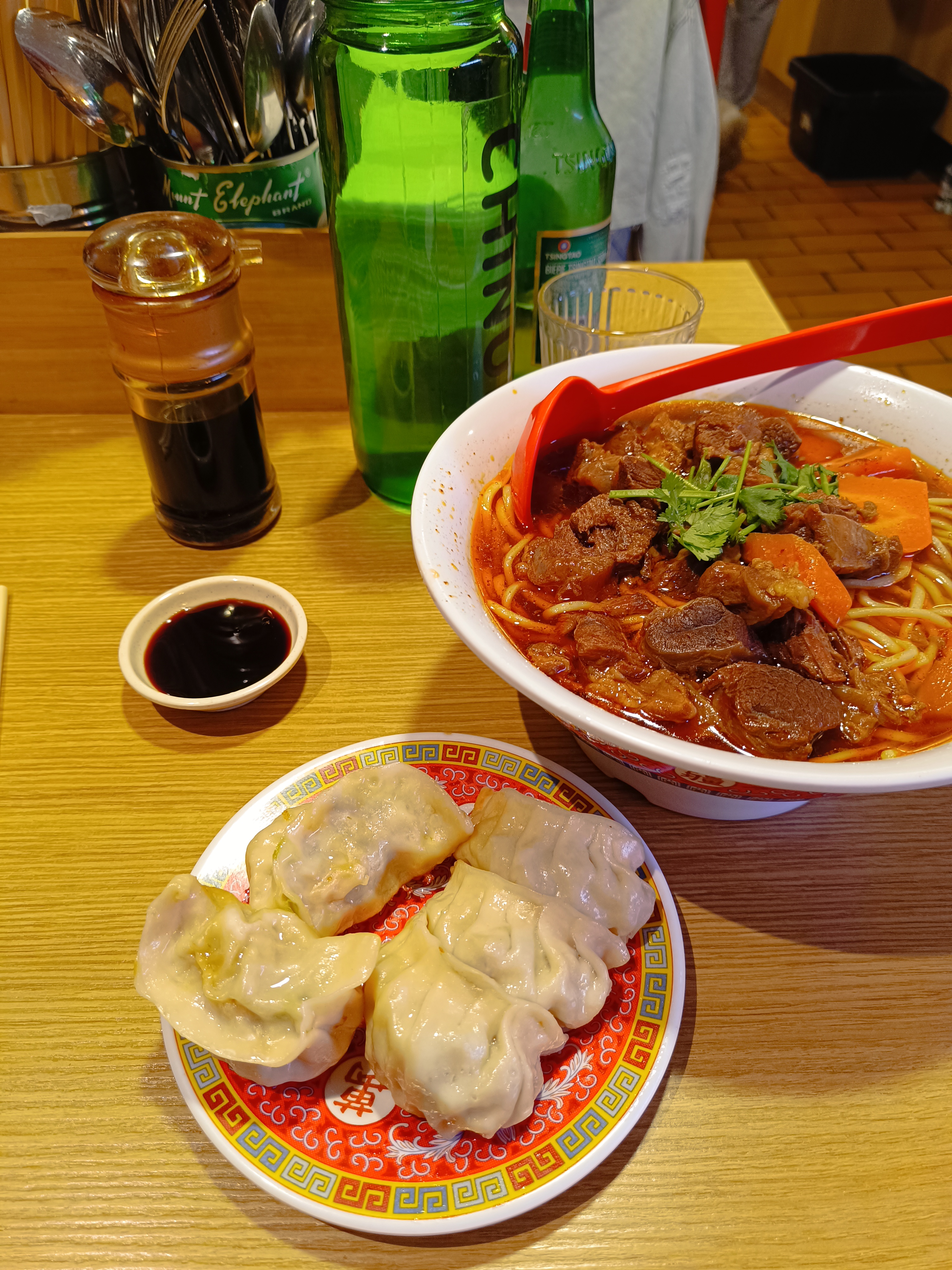Il y a toujours du monde qui attend mais en réalité c’est vraiment pas terrible. On passe un bon moment mais tout manque d’assaisonnement et de saveur, les nouilles sont servies en morceaux…