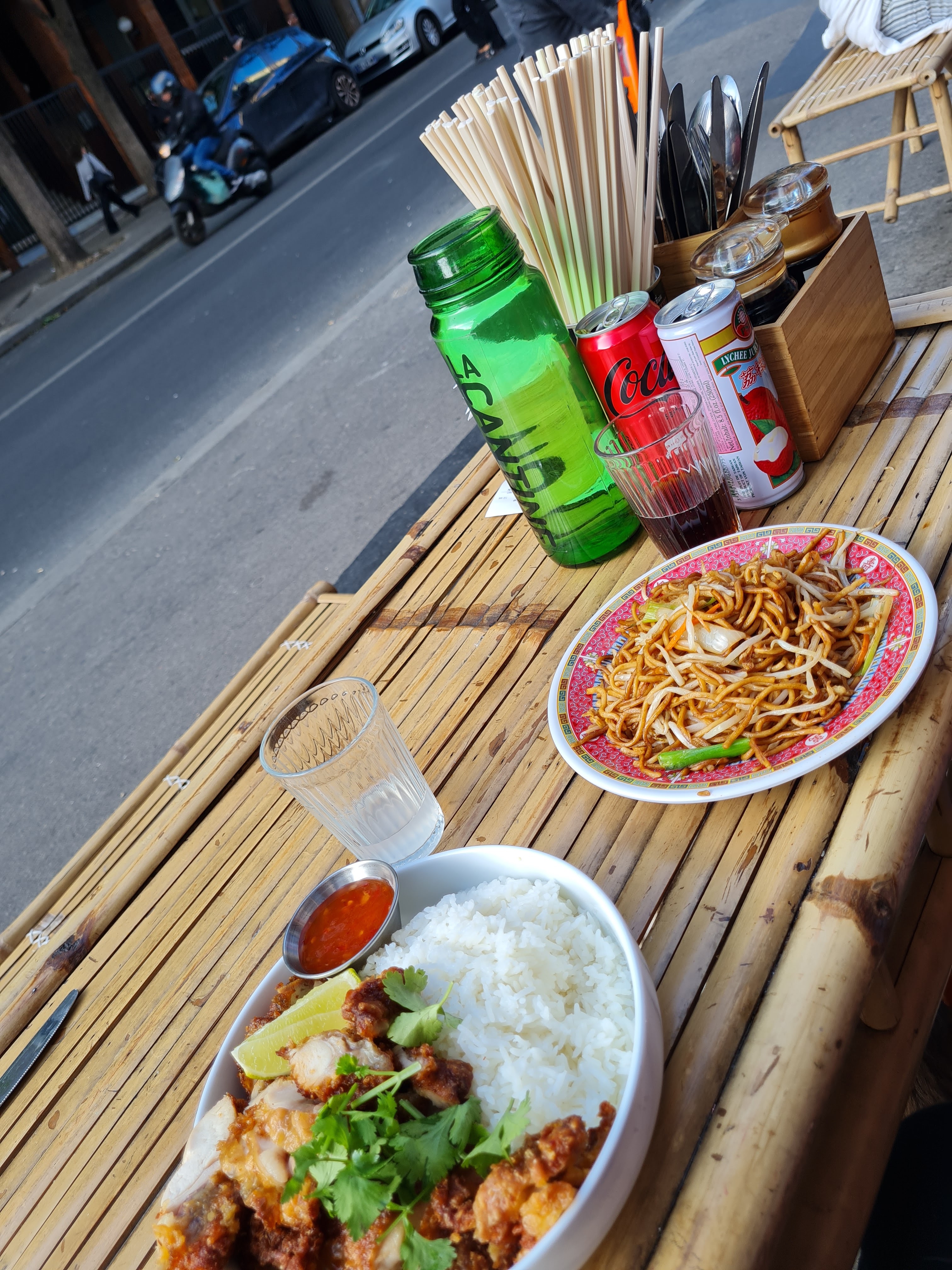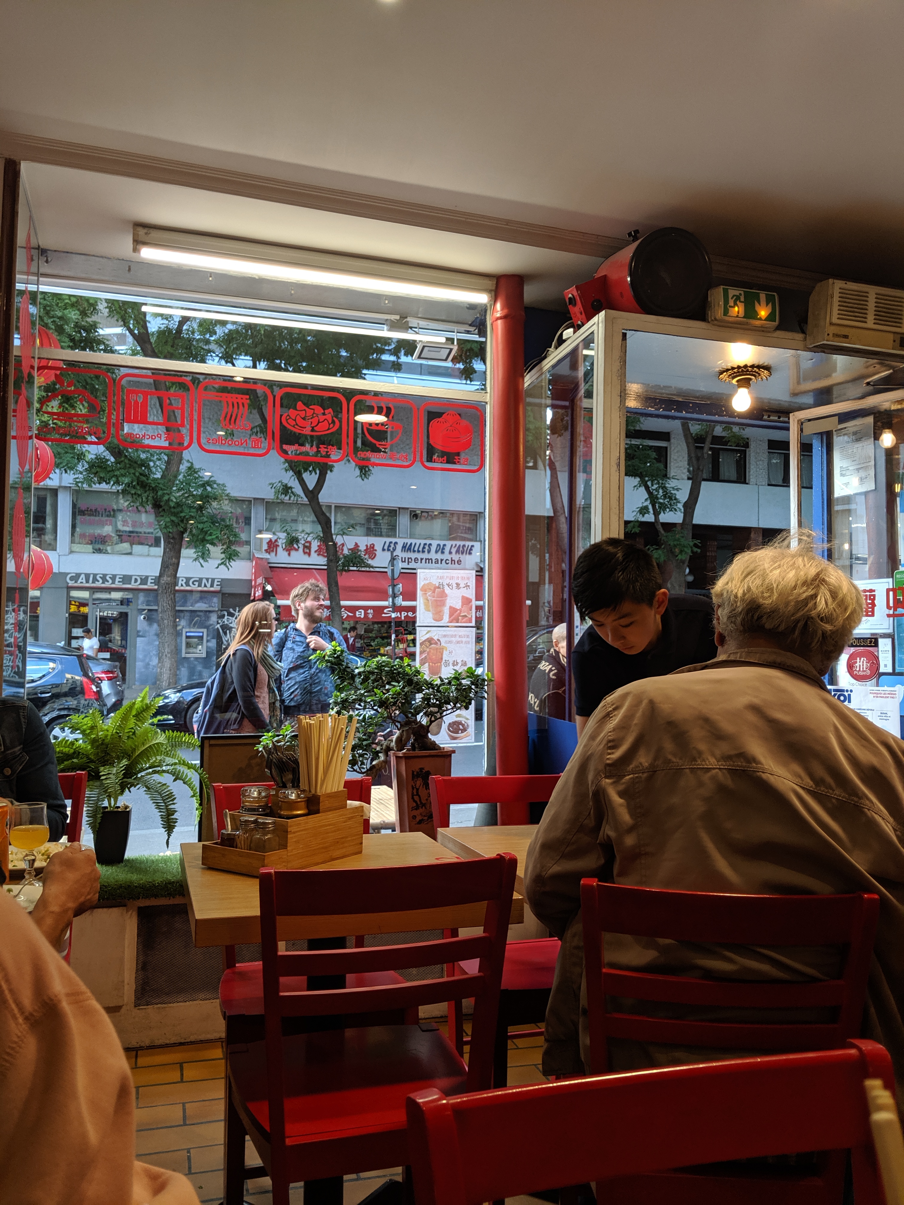 Les plats sont frais .leur sauce au boeuf pimenté sur leur pâtes suffiraient amplement à contenter deux personnes . Servi sur plateau ou pour les plats frits dans des plats cartonnés. La salle est petite mais c'est aussi son charme . Le service est rapide et les serveurs et serveuses souriantes et agréables . Et on y parle le français sans soucis pour expliquer le contenue des plats .