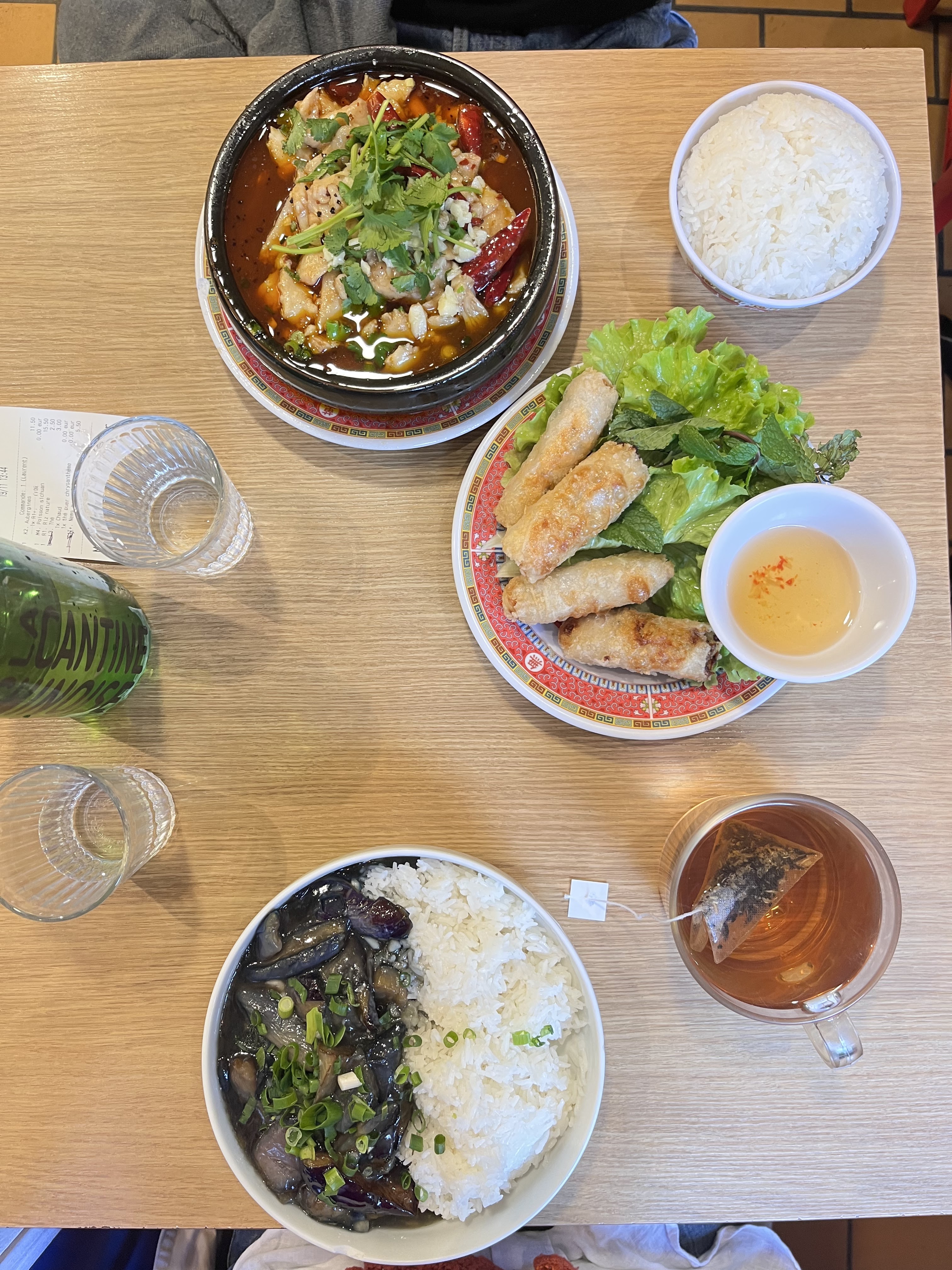 Bonsoir Emilie, pour l'huile effectivement vous devez parler de la marmite de boeuf Sichuan dans lequel on fait couler notre chili oil maison brûlante, qui macérée dans du piment, qui « brûle » les condiments du plats. Effectivement c'est très gras, mais c'est ça qui fait ressortir tout le parfum du plat! En ce qui concerne les toilettes, on a eu une période où on a eu beaucoup de mal à les entretenir avec le passage intense qu’il y avait. Bon je vous répond avec beaucoup beaucoup de retard mais depuis nous avons fait des progrès au niveau des toilettes promis ! On espère vous revoir tout de même Emilie en espérant vous faire changer d’avis ❤️